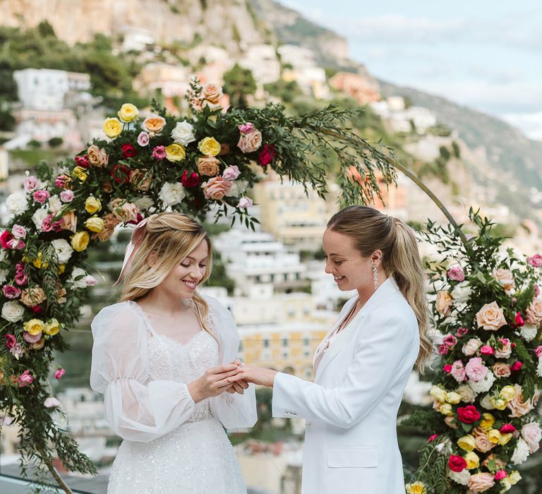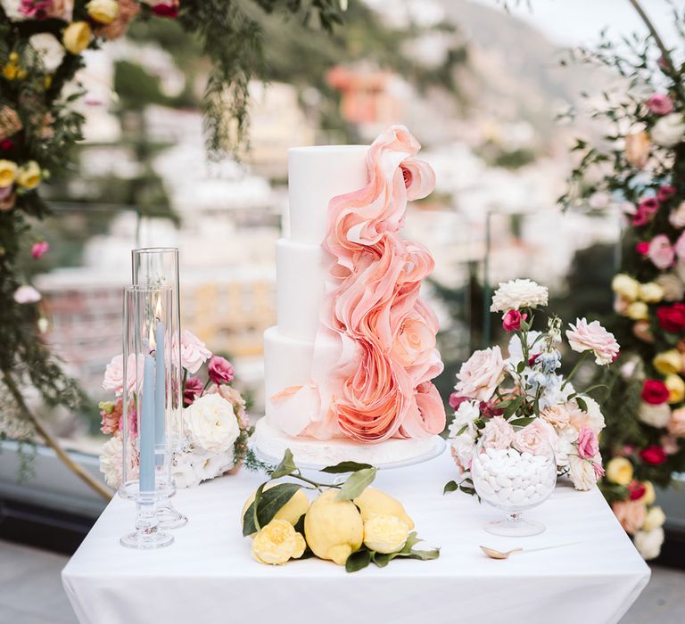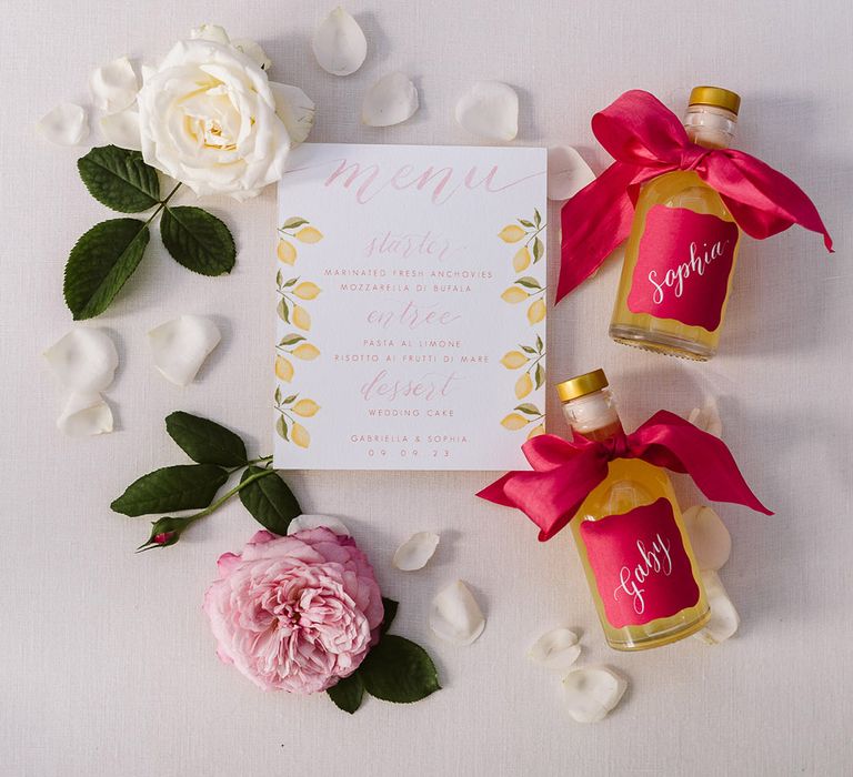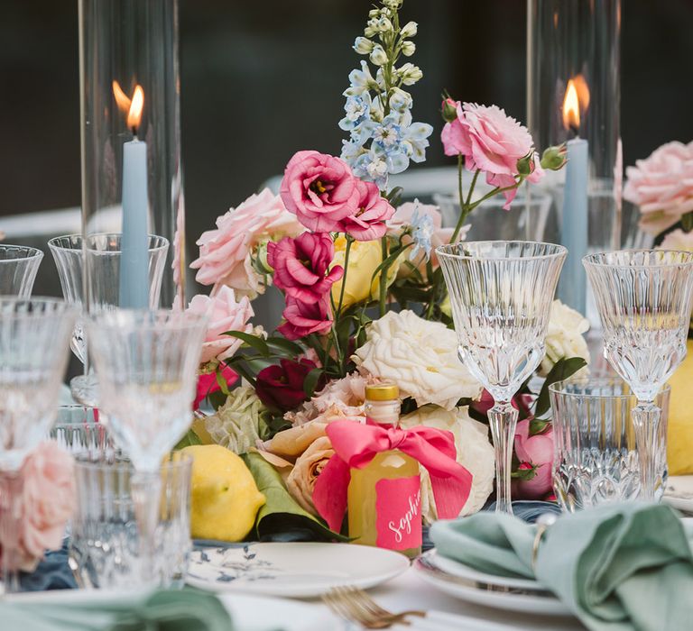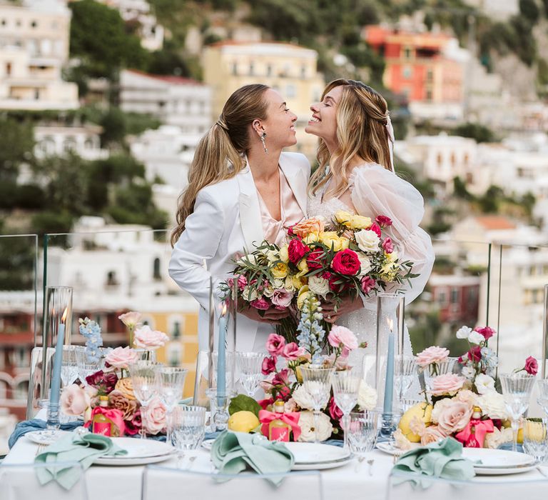 A celebration of joy, colour, playfulness, and fun, the florals touched on all of the colours in the beautiful Positano skyline and incorporated local lemons as a nod to the area and to add a bright, festive pop of colour.