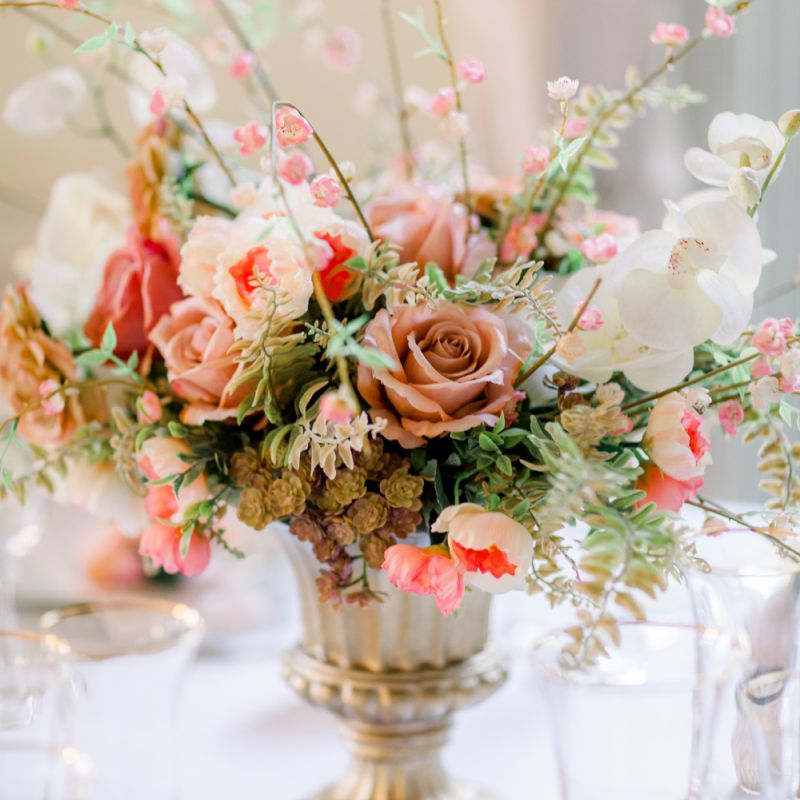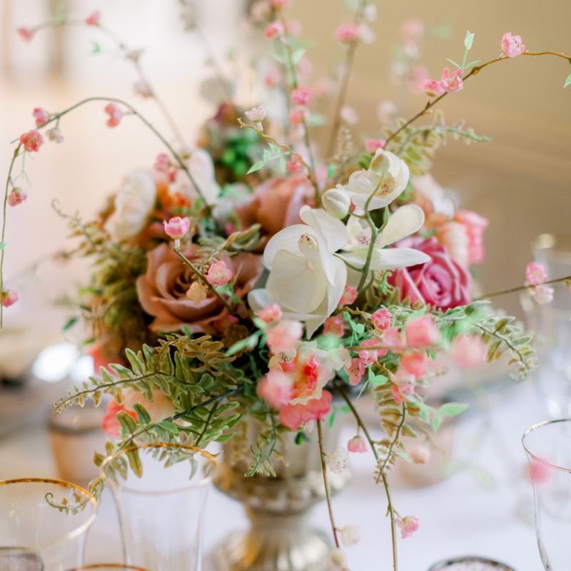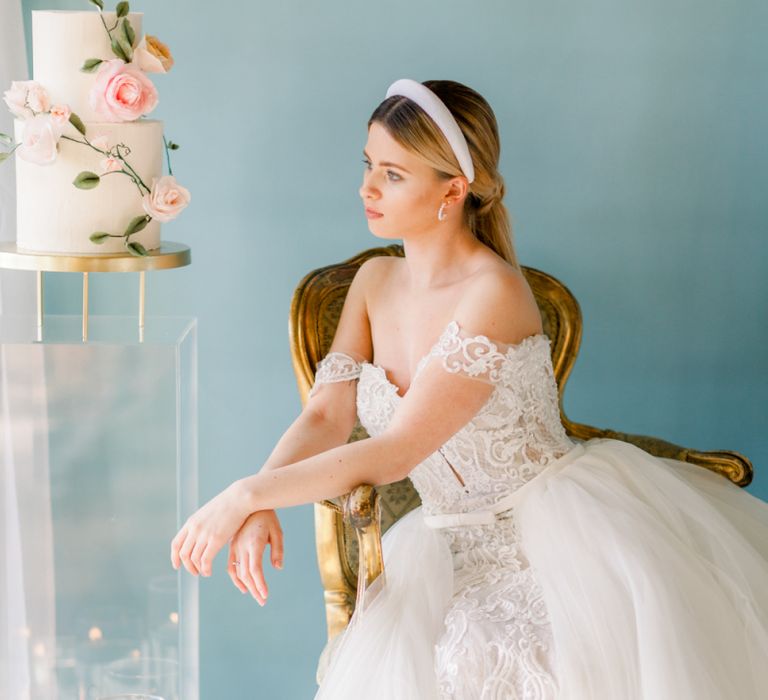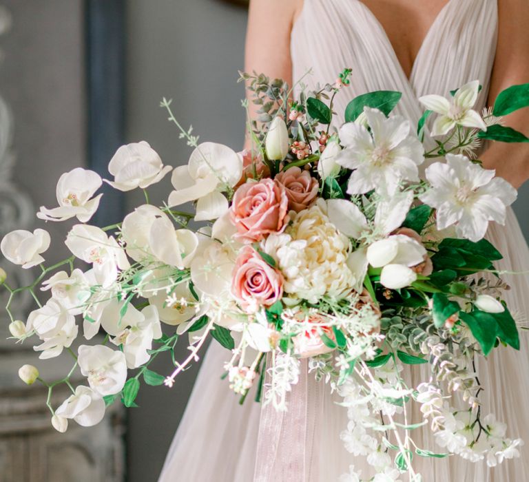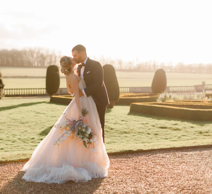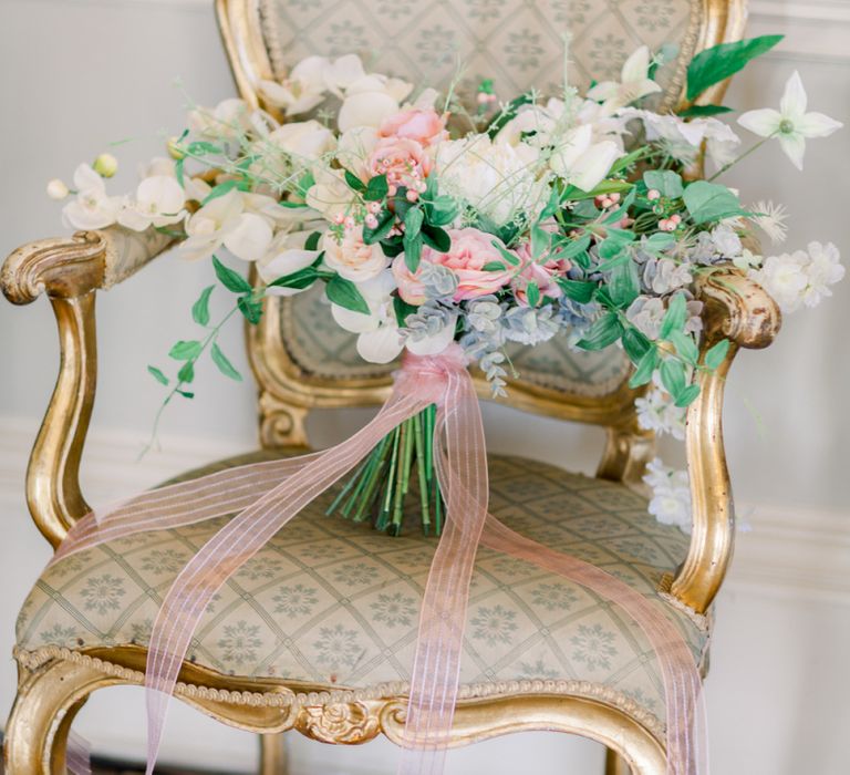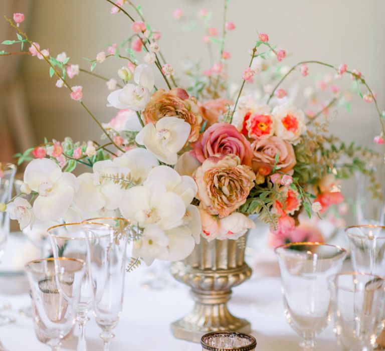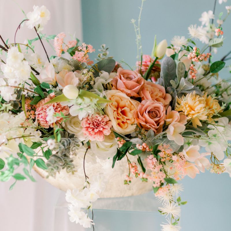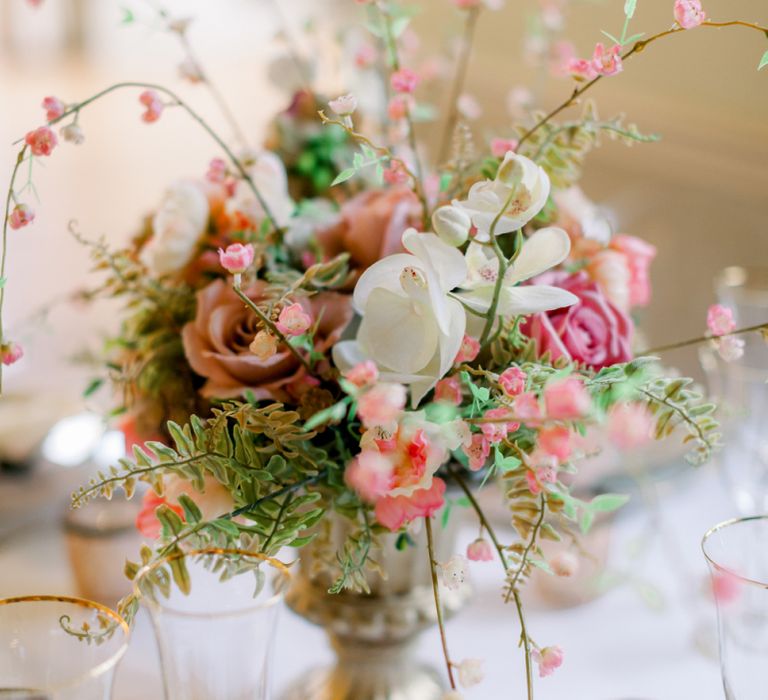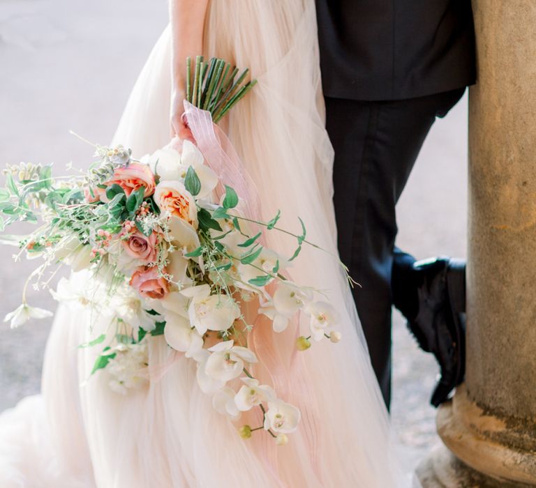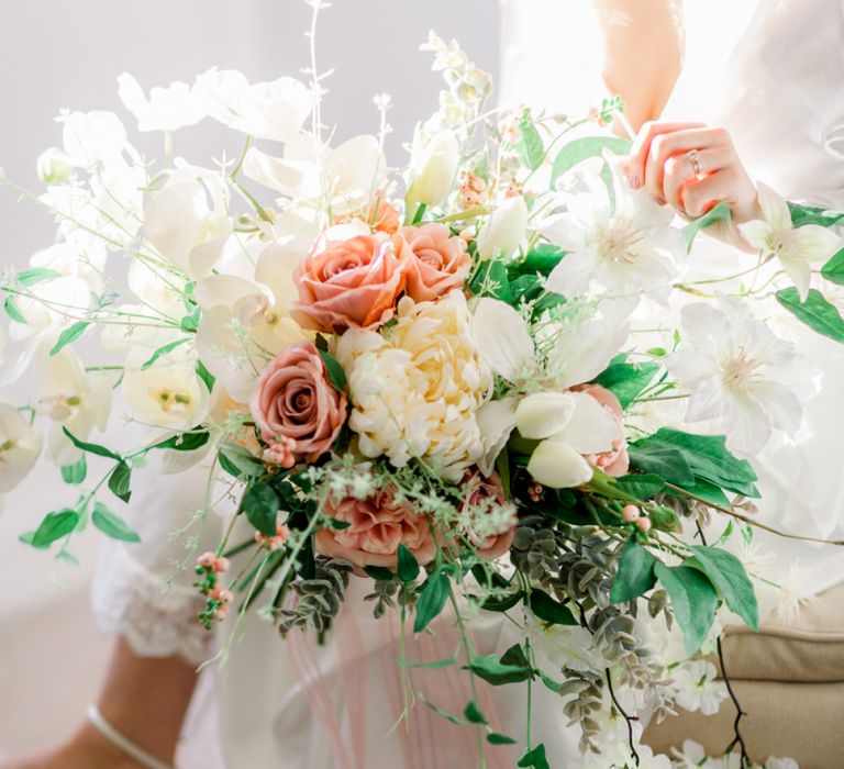 Prestwold Hall, a neoclassical style country house set in the heart of Leicestershire that offers exclusive hire weddings. Inspired by the beautiful interior spaces, a palette of peach, gold, pink and cream ran through the styling, flat lays, flowers, cakes and table settings to create a cohesive, fine art styled wedding shoot. In addition to the peach tones and luxurious styling, a beautiful