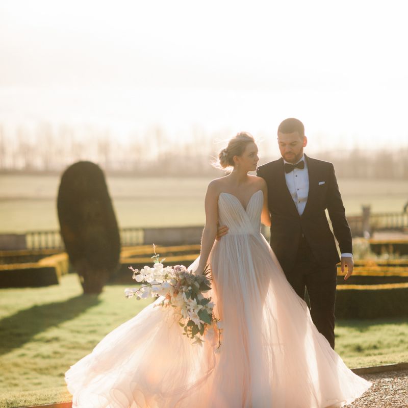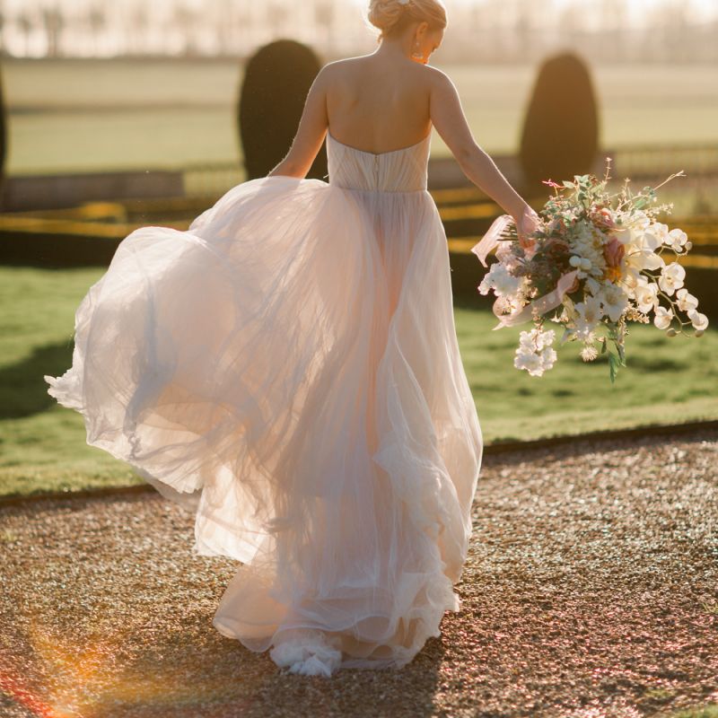 Pronovias, which added a more classical Vogueish look to the shoot. On a cold January day, we were also lucky enough to venture outside for glowy, golden late afternoon sunset shots.