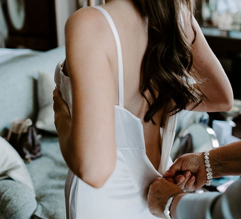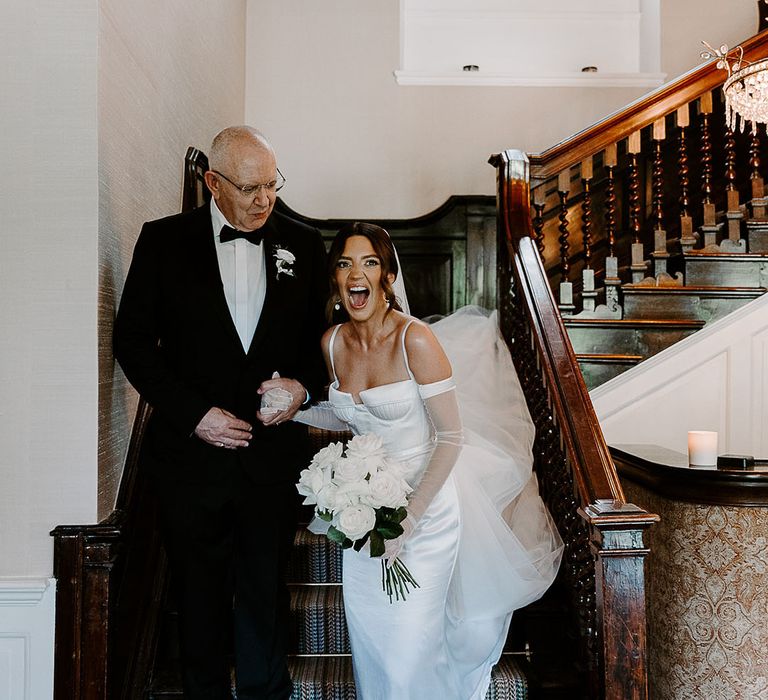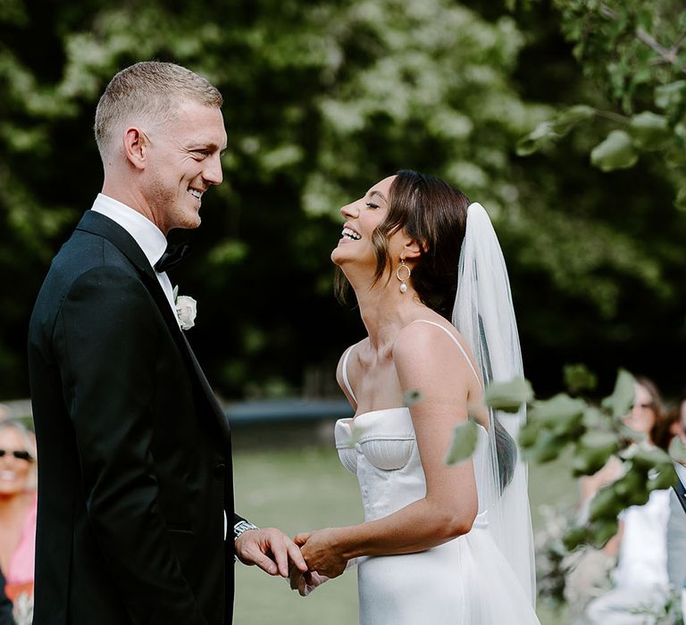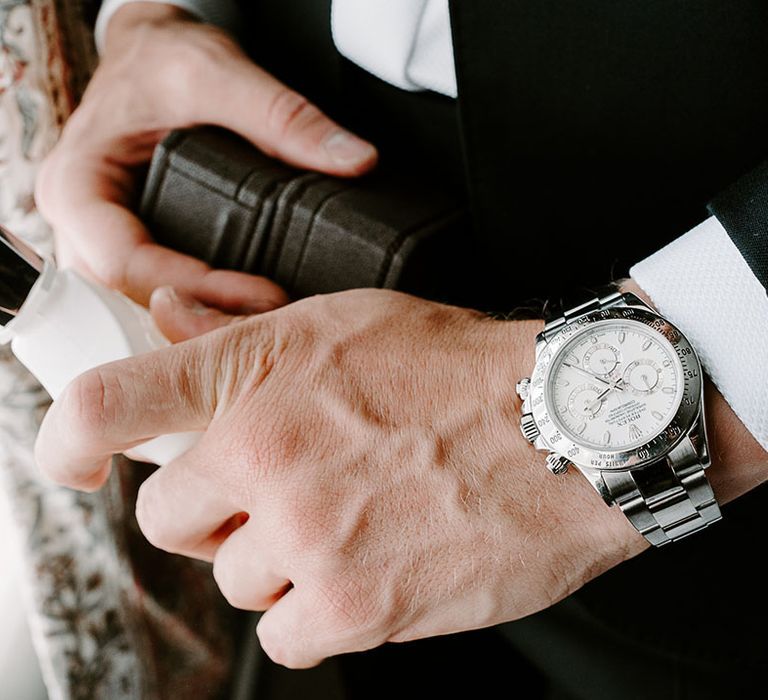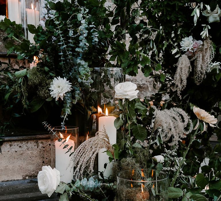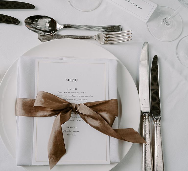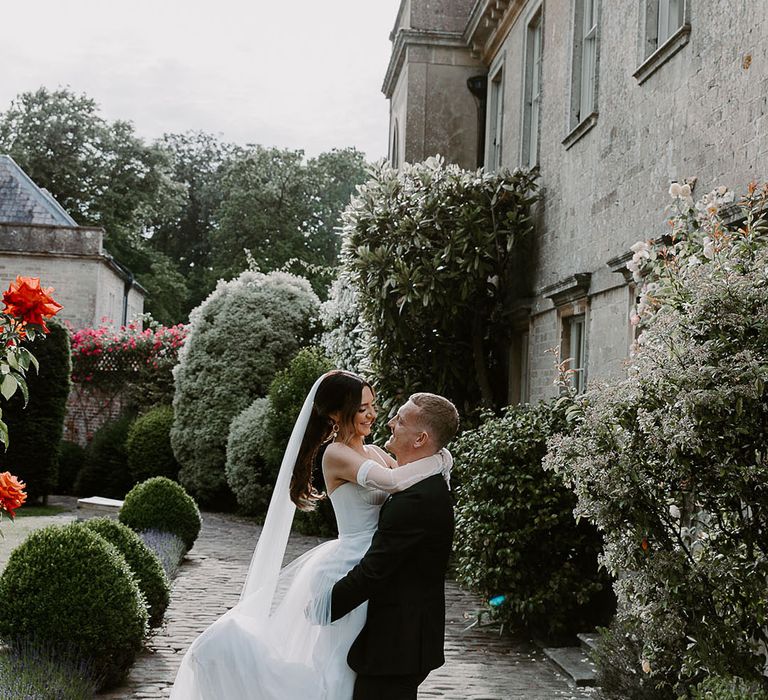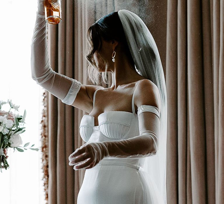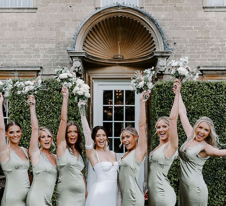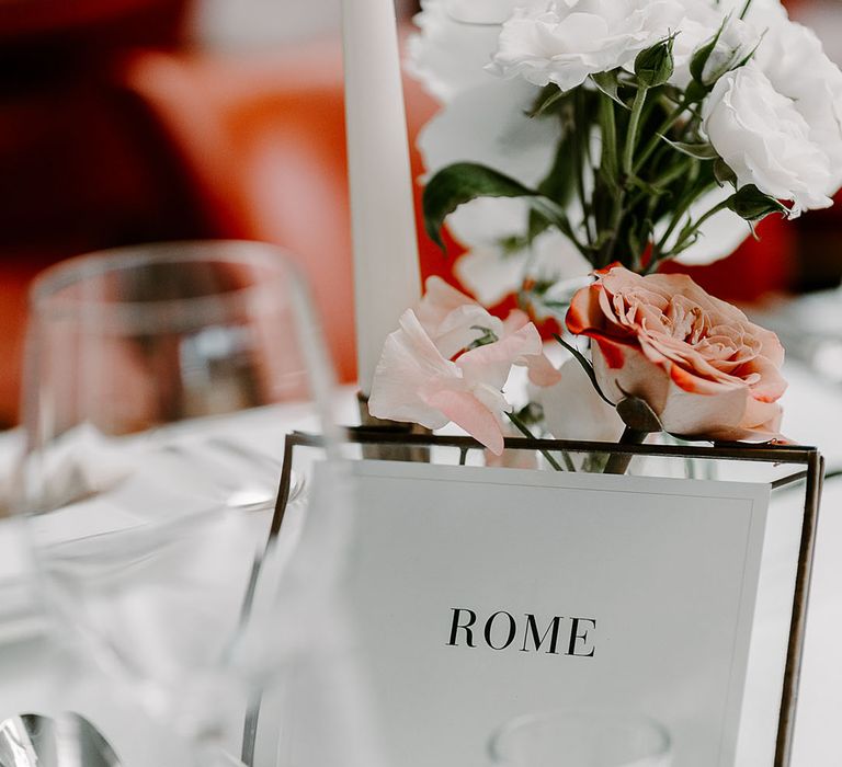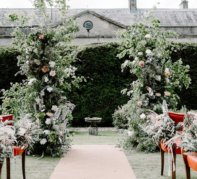 The backdrop of Rosie & George’s wedding was Babington House, a Grade II-listed manor built in 1705. Surrounded by 18 acres of English countryside in the heart of Somerset, the venue is beautiful. With exclusive use of the house and the grounds, the relaxed vibe Rosie & George wanted was easily achieved. Rosie’s bridal look took everyone's breath away when she appeared from Babington House wearing an Aleena Lena Monstera Gown with an addition of an overskirt, veil and iconic gloves. Rosie held a bouquet of long-stemmed white roses to add to the elegant vibe. The styling of the whole day was a black and white modern minimalist theme and it just screams editorial.