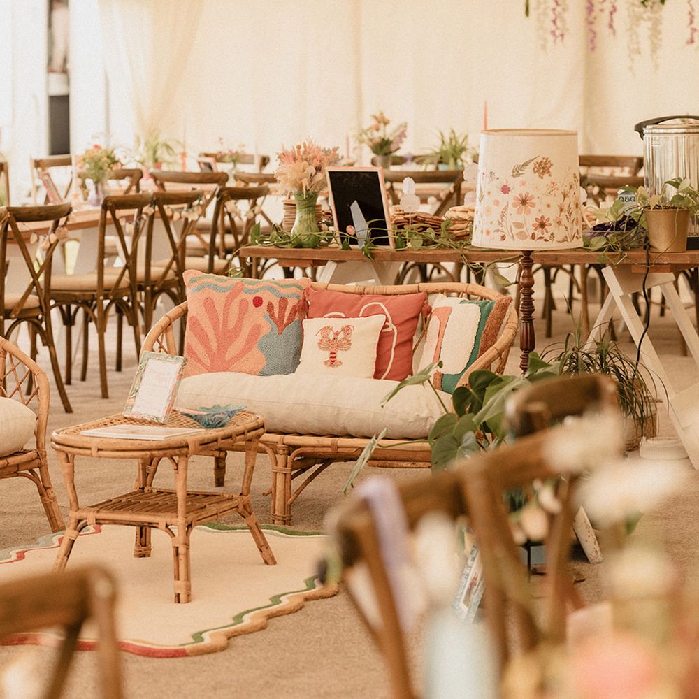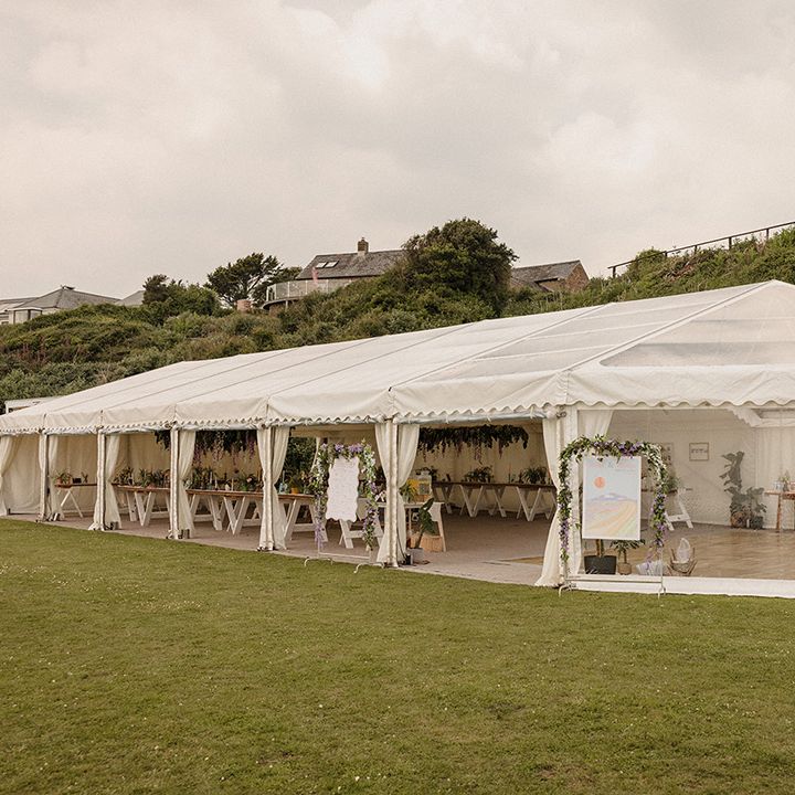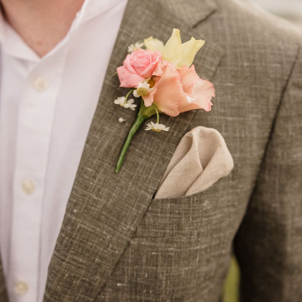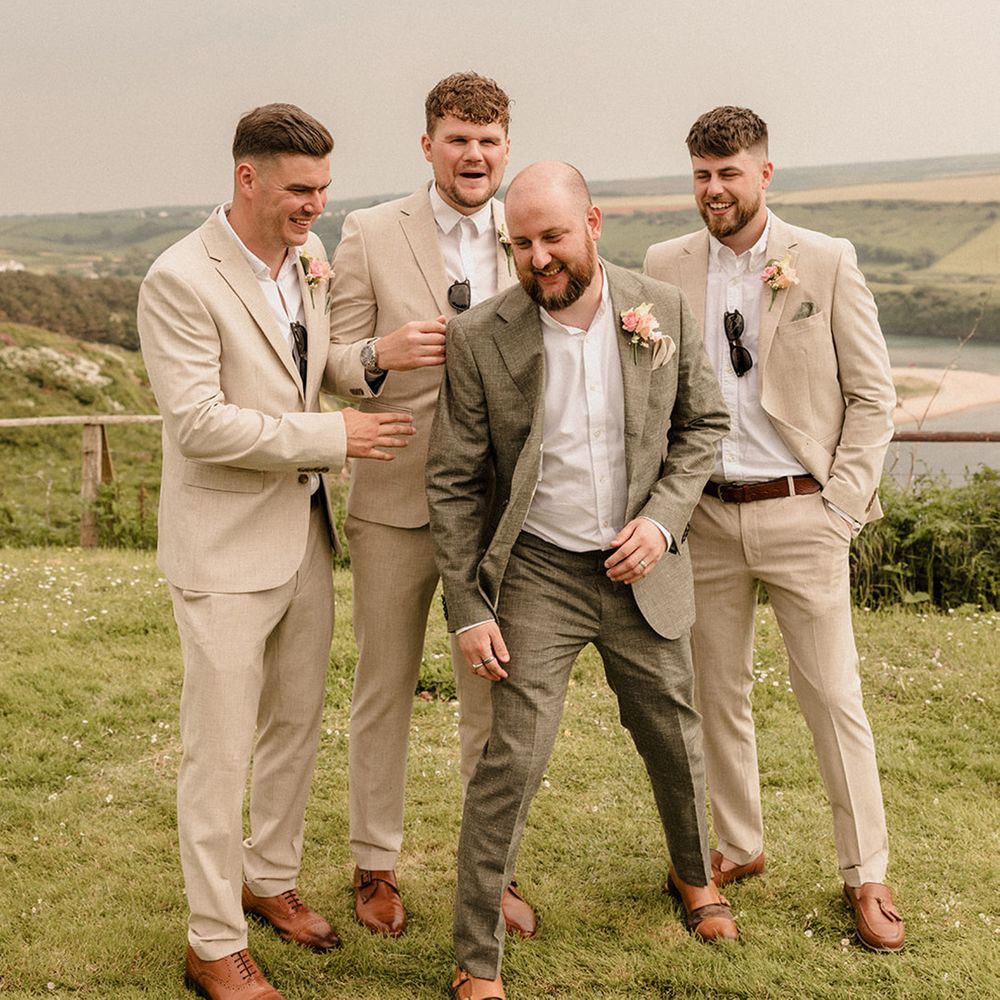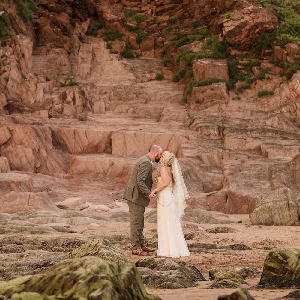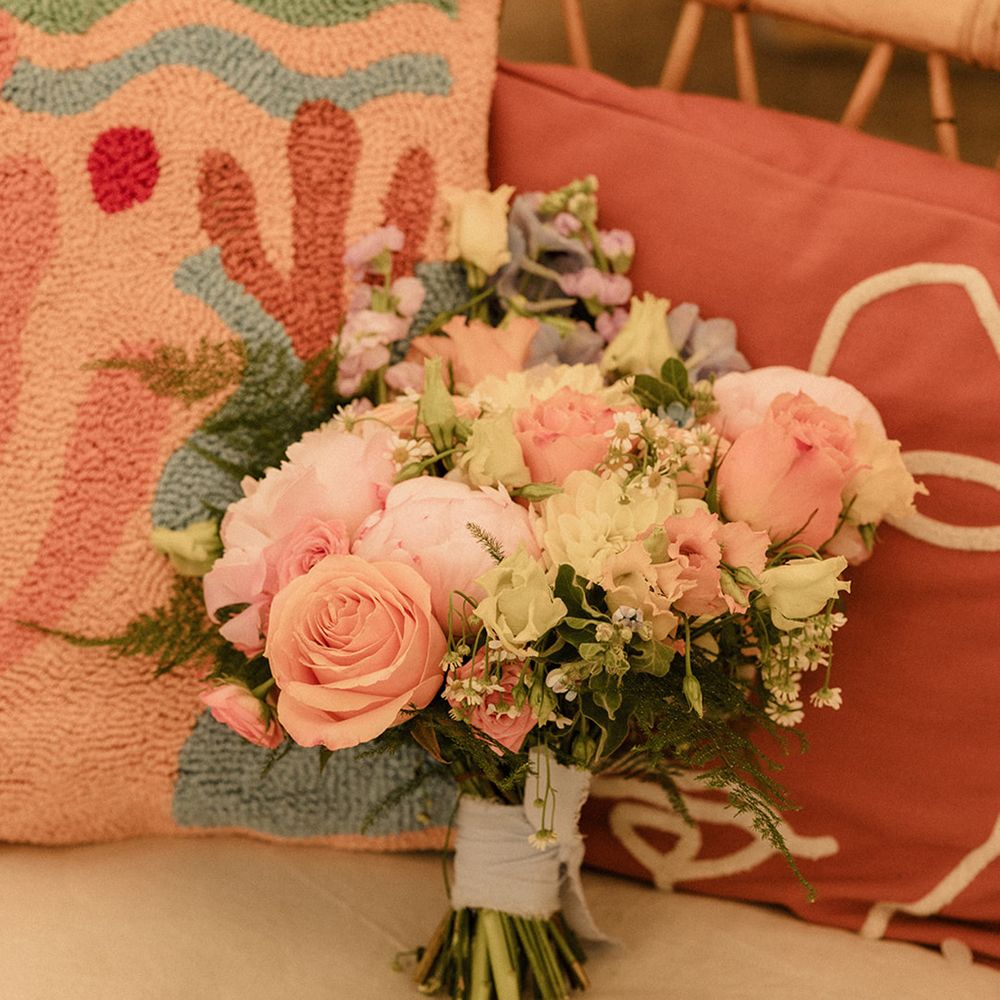 This laid-back clifftop wedding blends pastel palettes, marbled details, and personal touches. From shell garlands to a biscuit-loving dog ring bearer. A must-read for coastal wedding inspiration!