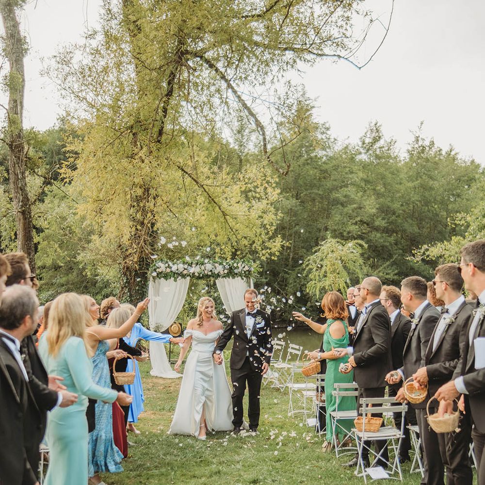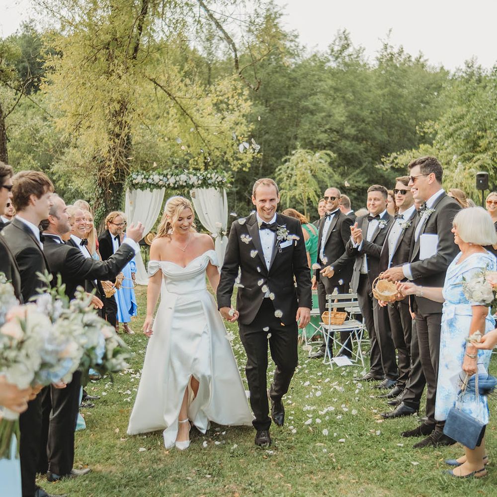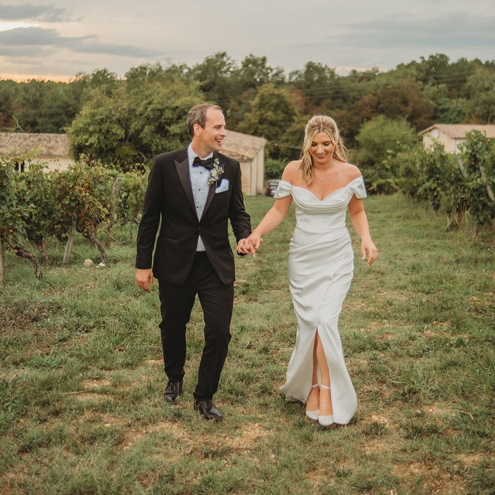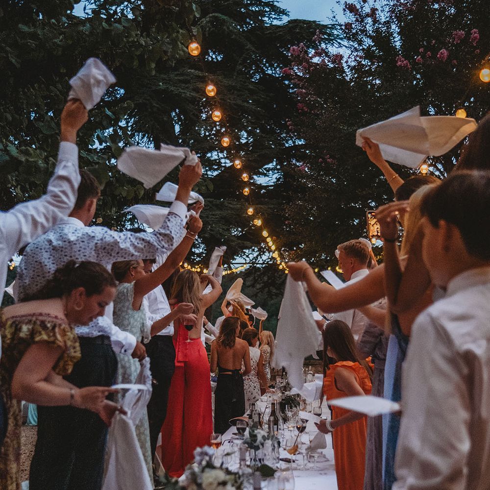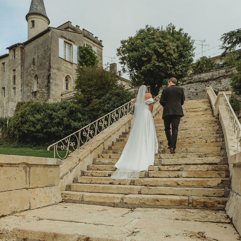 Sarah & Matt’s wedding embraced the traditional and rustic vibe of Chateau Lagorce whilst still having fun with pops of colour from the powder blue bridesmaid dresses and pastel touches! The wildflower designs on the wedding stationery and pastel wedding bouquets were colourful but didn’t steal the show from the beautiful backdrop of Chateau Lagorce. The couple’s outdoor wedding ceremony was conducted by Matt’s dad, which made it so special and personal. How sweet is this! The gorgeous wedding day ended with one hell of a party. We wish we could include some of the reception photos but some were close-ups of the groomsmen’s budgy smugglers. We’ll leave you with that.