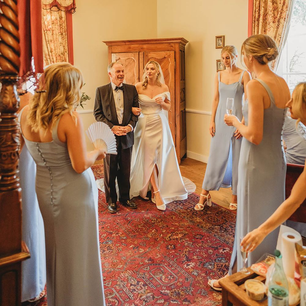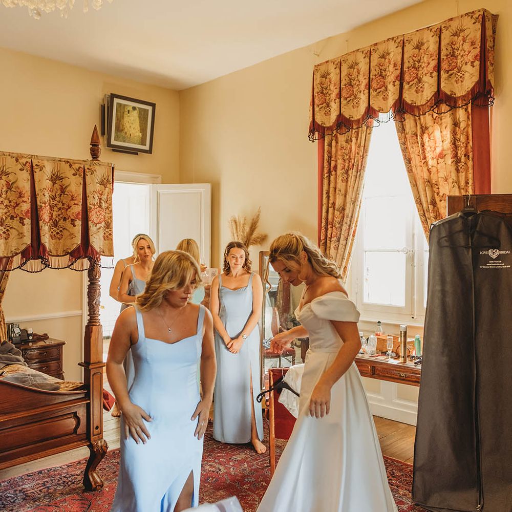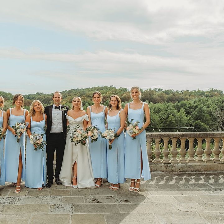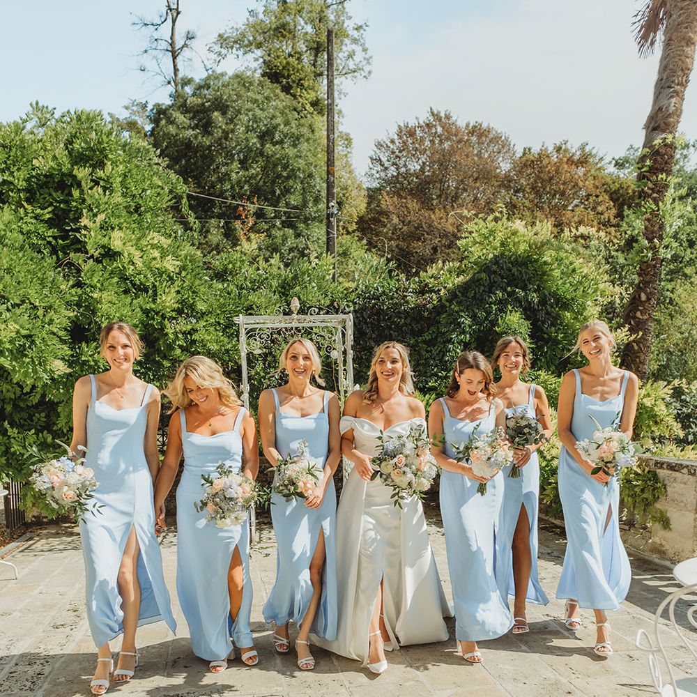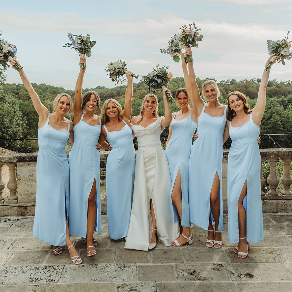 Powder Blue Bridesmaid Dresses at Chateau Lagorce Wedding