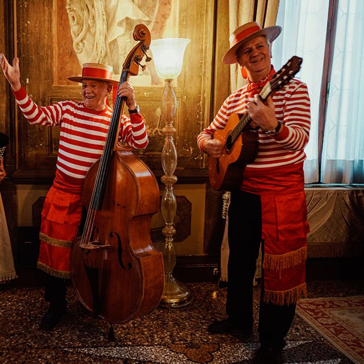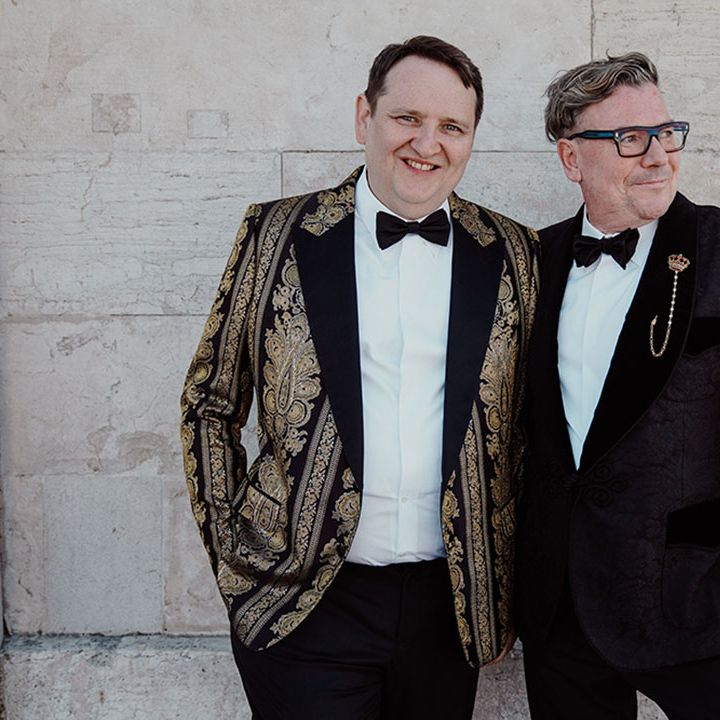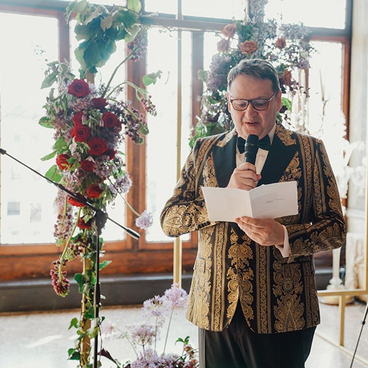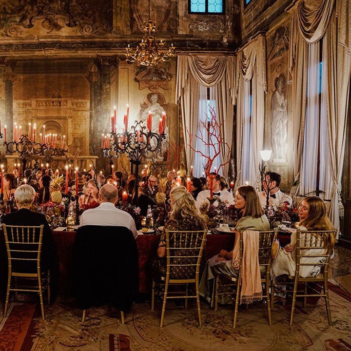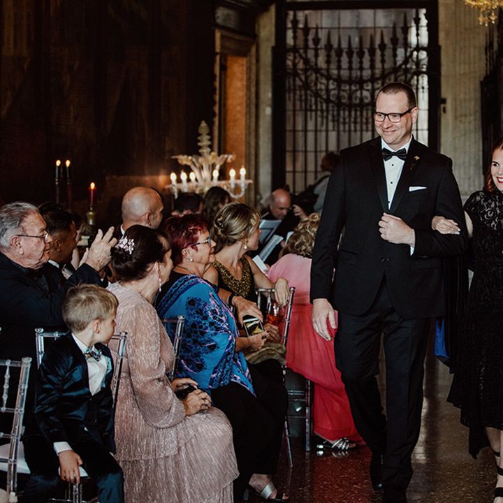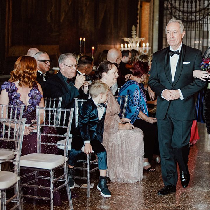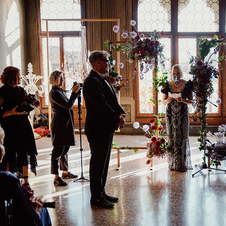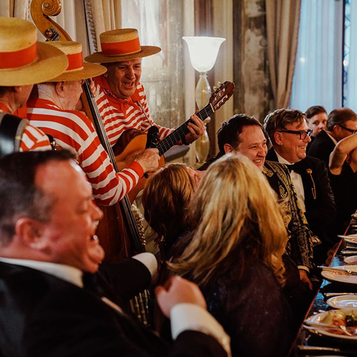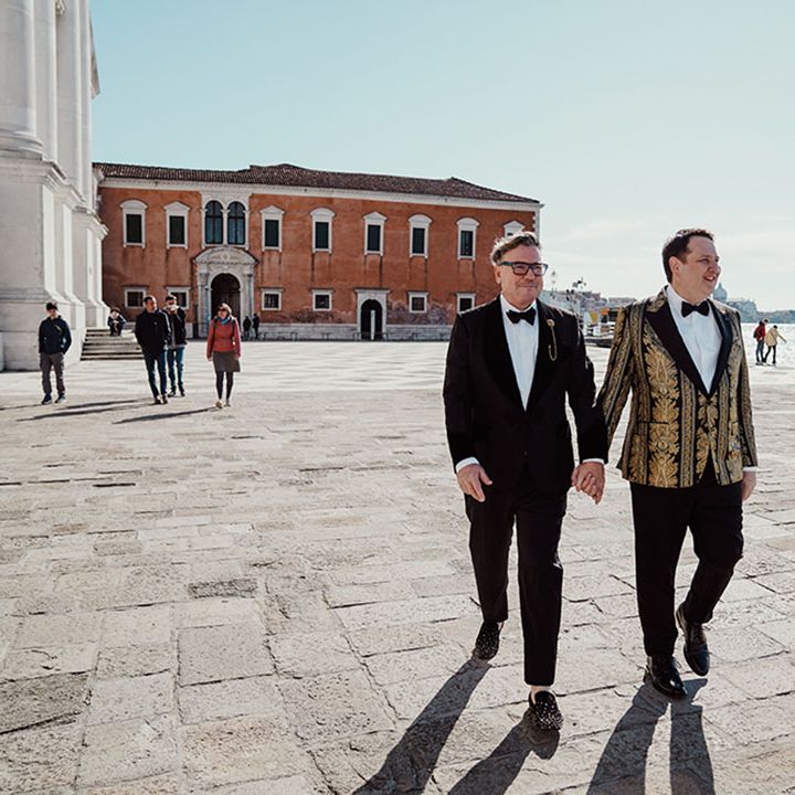 Scott & Tony fell in love with Ca’Sagredo the first time they stayed there many years ago. It was the perfect location for their wedding! The two grooms felt the opulent Venetian Palace would match their gothic luxe vibe exactly. The couple had their wedding breakfast in the spectacular 15th-century music ballroom. Scott & Tony initially decided on Venice as it holds a special place in their hearts. The couple got engaged in Venice in 2015 and they were lucky to have one last trip to Venice with Scott's sister 9 months before she died from cancer in 2012. Plus, it’s their favourite city in the world. Venice is the backdrop to countless classic love stories, so it’s only right that Scott & Tony add their own to the mix. Celebrating with so many of their loved ones in one of their favourite places ever was just so magical.