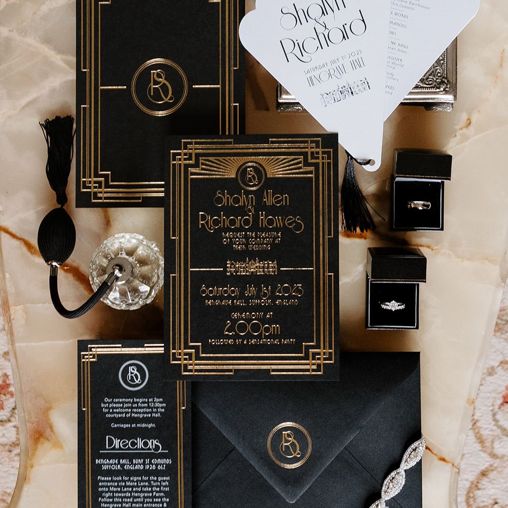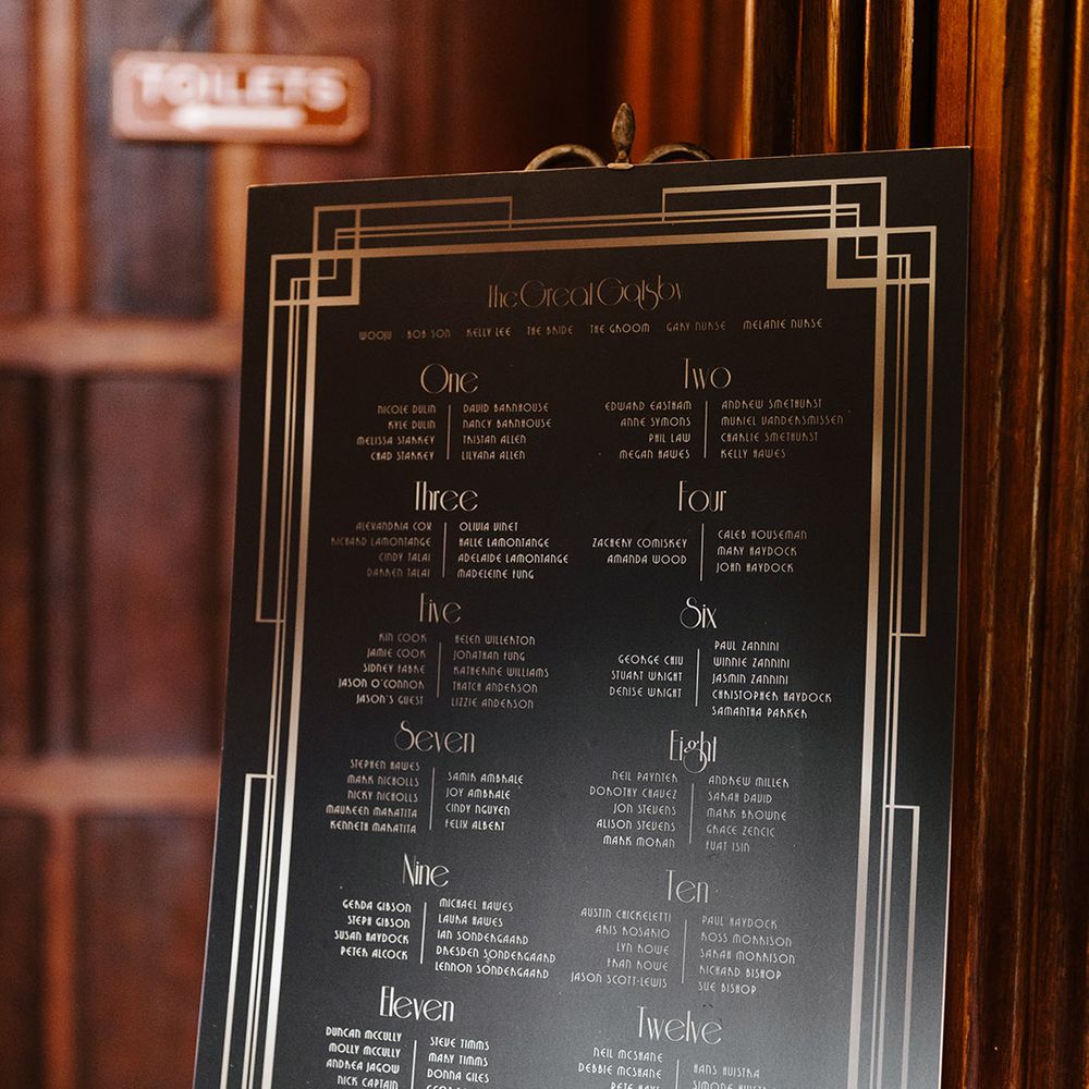 Shalyn & Richard floated the idea of a Gatsby-styled wedding, a full-on weekend of revelry for their guests, committing to a true roaring 20s Gatsby theme, and we were more than happy to oblige! We were the eyes and ears on the ground, organising every detail ready for their and their guests' arrival from around the globe. Throughout the weekend, we wanted to capture the excitement and "unbelievably luxurious" styling of a party at the Gatsby mansion, honouring details from Fitzgerald's iconic novel.