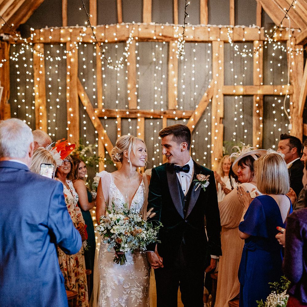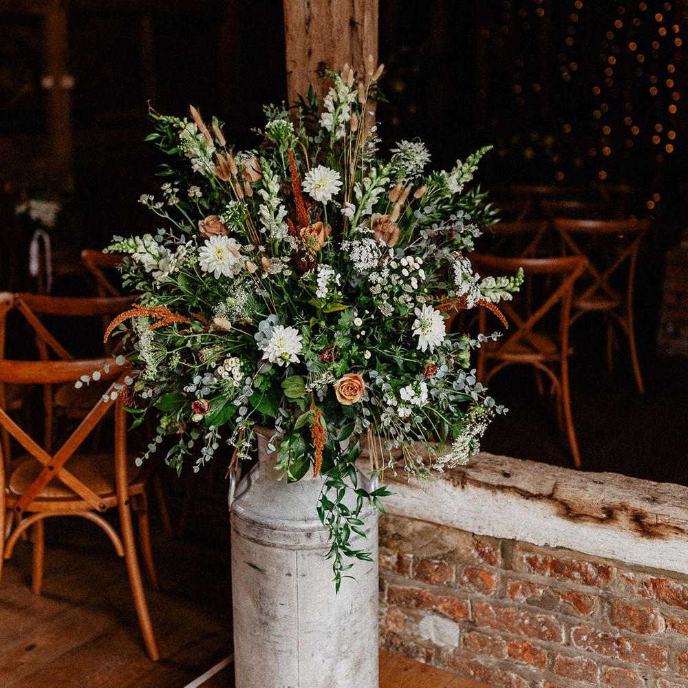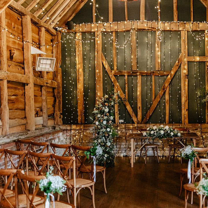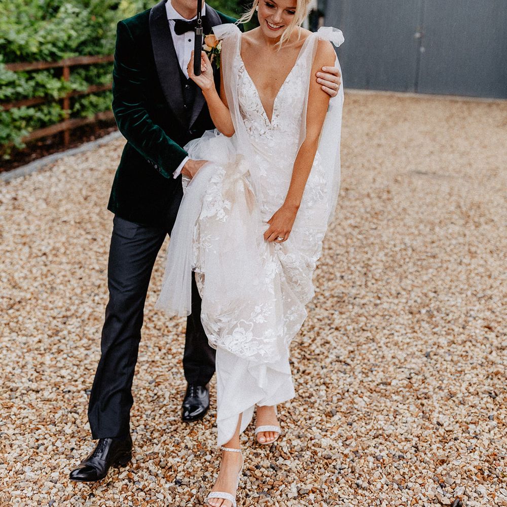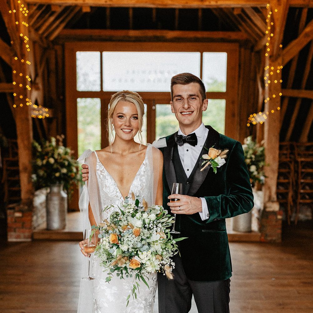 Lots of things made Emily & George's day special but the weather was particularly spectacular. The couple had thunder when walking down the aisle and multiple rainbows throughout the afternoon. The photos of Emily & George with umbrellas out in the rain are extra special to the couple. The overall vibe was modern and rustic. Emily & George wanted a barn wedding venue that spoke for itself and didn't need a lot of added decoration. Choosing a Silchester Farm wedding gave the couple just that! With the rustic feel of the Threshing Barn for the ceremony and the modern industrial feel of the Cow Shed for the breakfast and evening party.