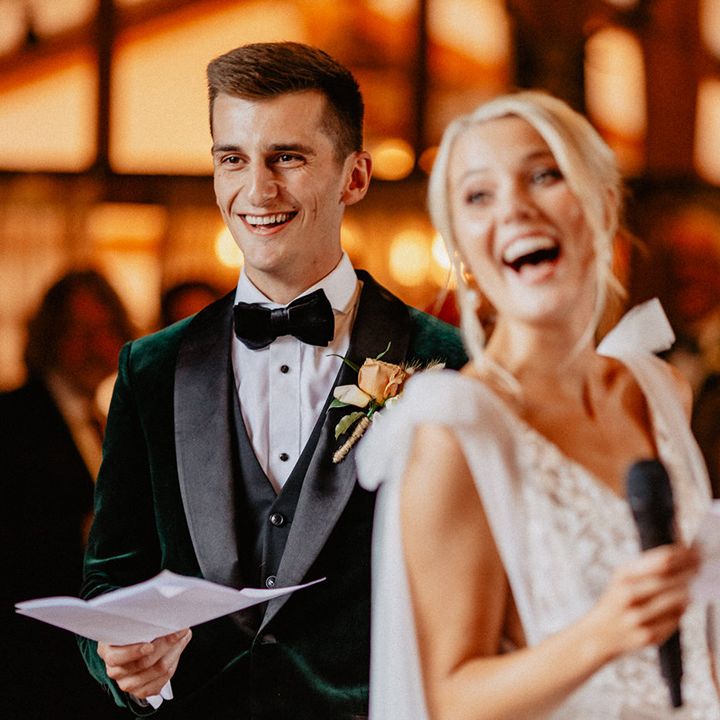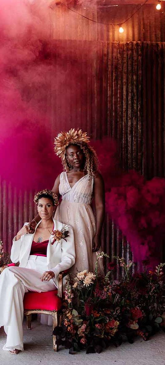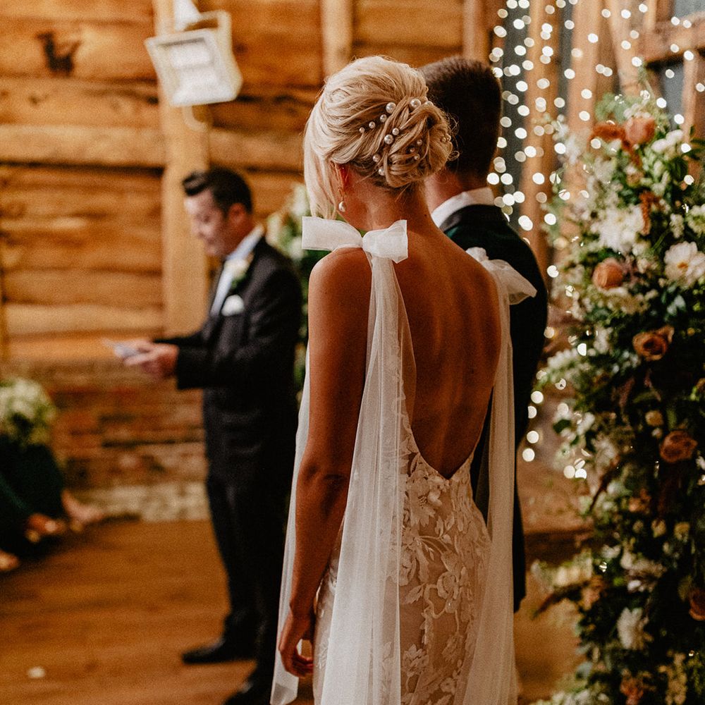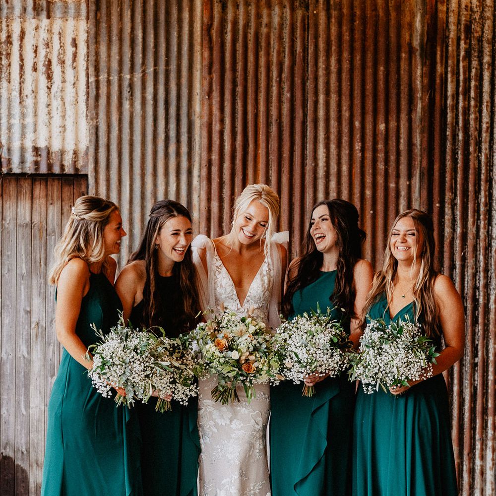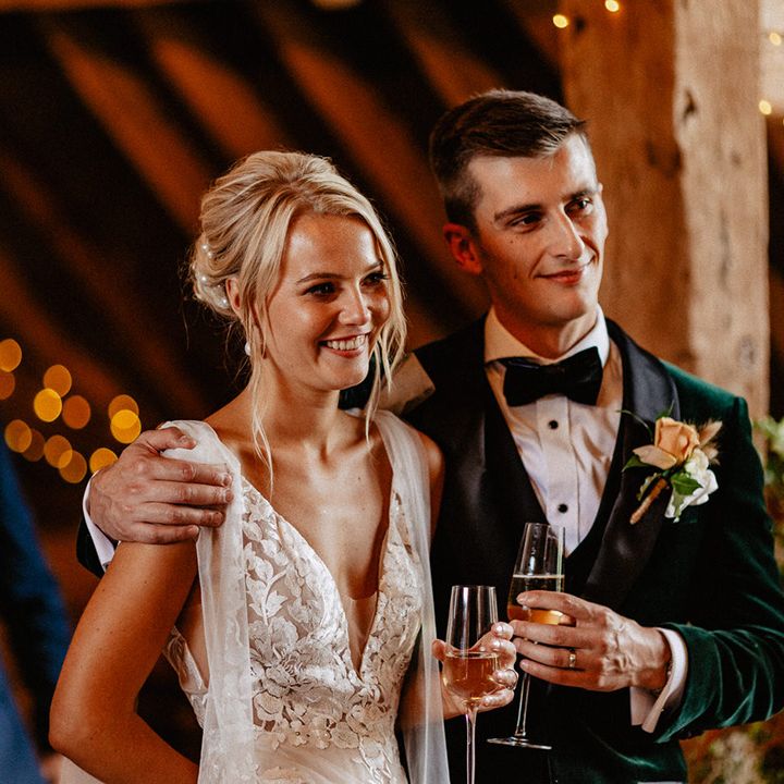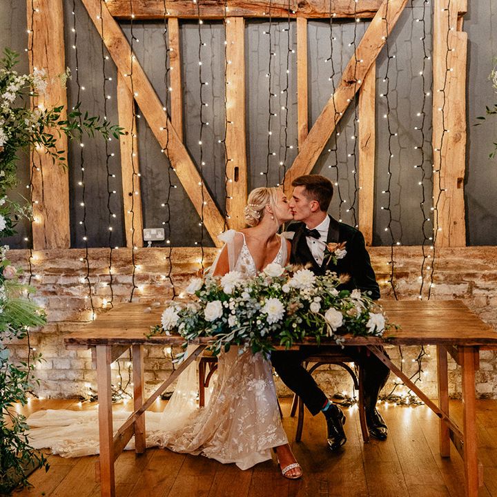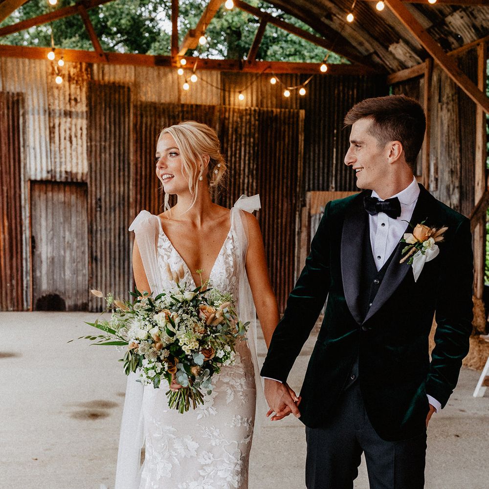 Lots of things made Emily & George's day special but the weather was particularly spectacular. The couple had thunder when walking down the aisle and multiple rainbows throughout the afternoon. The photos of Emily & George with umbrellas out in the rain are extra special to the couple. The overall vibe was modern and rustic. Emily & George wanted a barn wedding venue that spoke for itself and didn't need a lot of added decoration. Choosing a Silchester Farm wedding gave the couple just that! With the rustic feel of the Threshing Barn for the ceremony and the modern industrial feel of the Cow Shed for the breakfast and evening party.