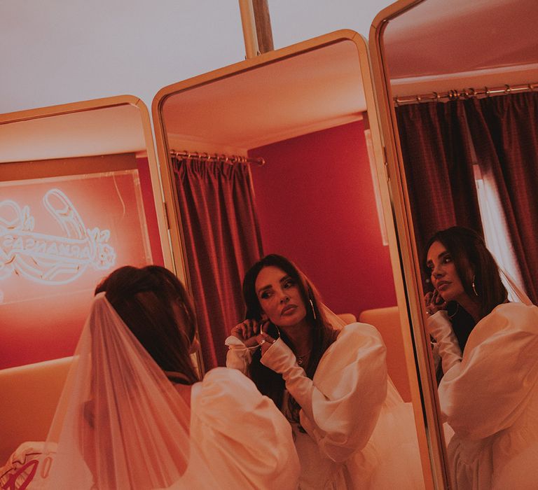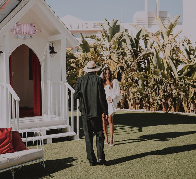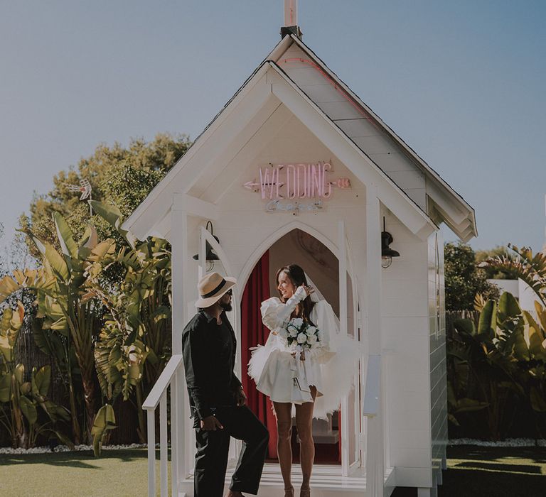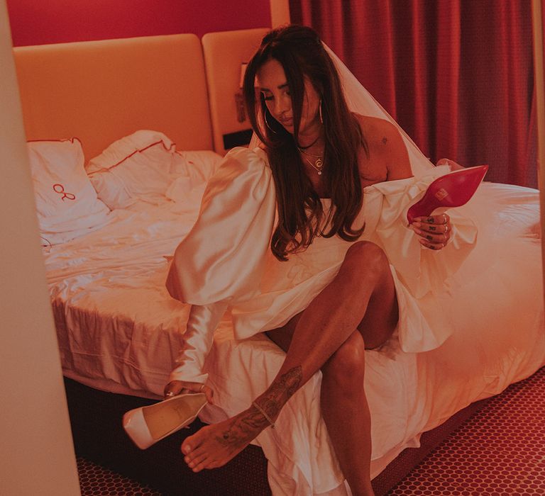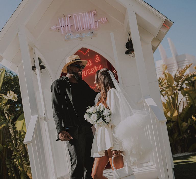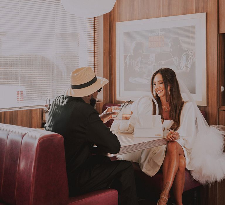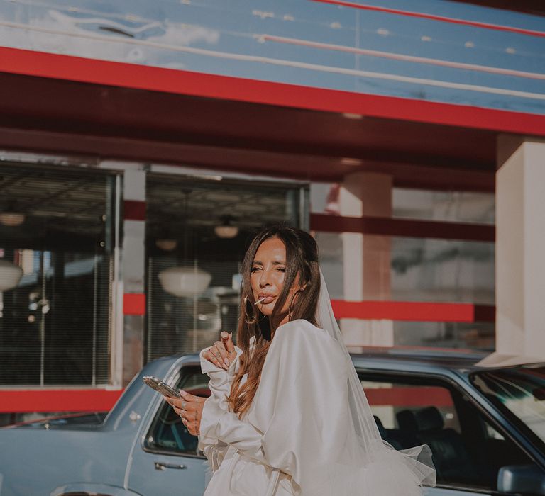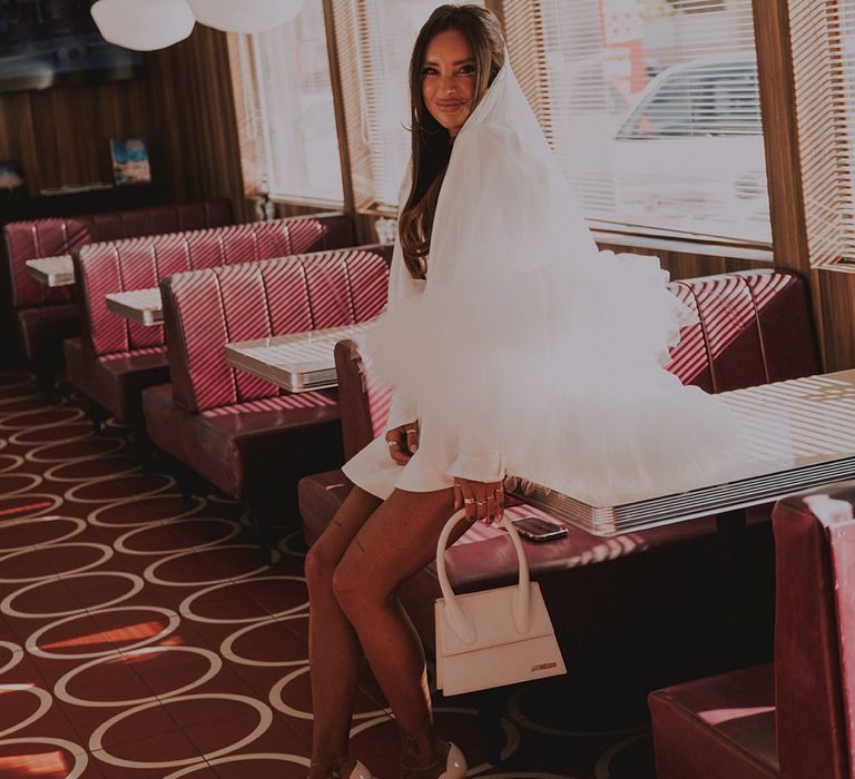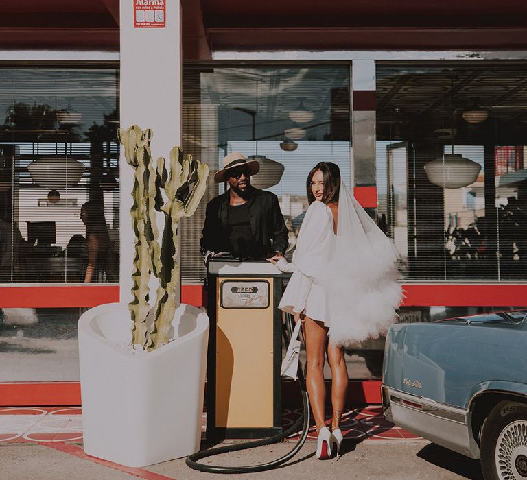 With a vibe straight out of a retro Vegas elopement playbook, Sophie & Alistair leaned into the fun, carefree spirit of the day. Romeo’s, with its nostalgic, neon-soaked charm, set the perfect backdrop. “It was just us two, and we didn’t tell anyone until after,” Sophie shared. The spontaneity of it all made the moment even sweeter, like a secret only they could share (at least until the post-ceremony announcement). As for Sophie’s bridal look? Dreamy doesn’t even begin to cover it. Sophie had a vision and Shay at Cupid Blue Bridal made it a reality with a dress and veil that were even better than she imagined. The result was effortlessly cool, striking, and completely her.