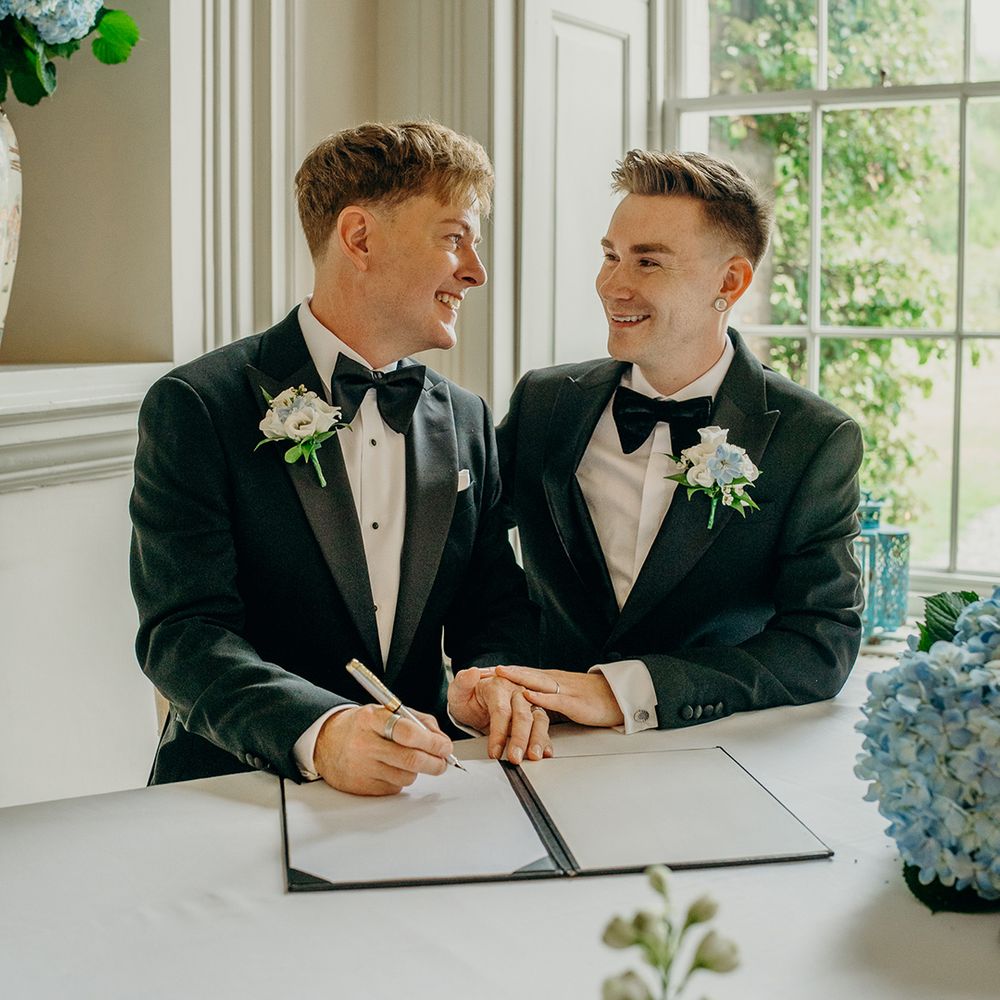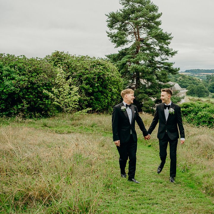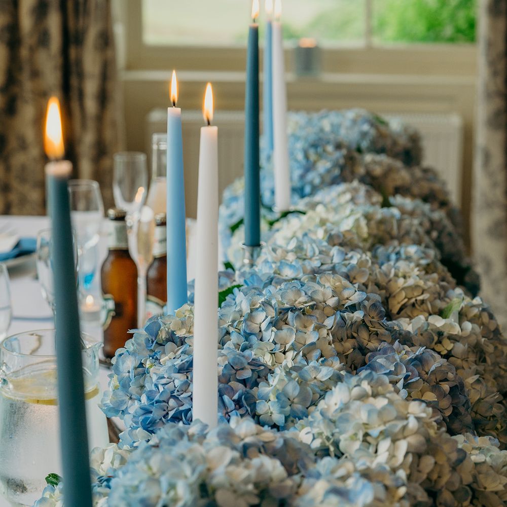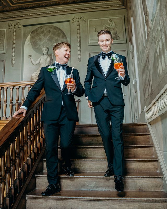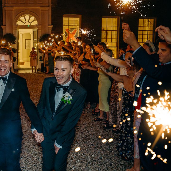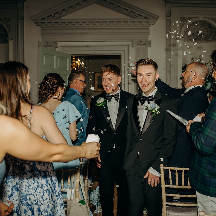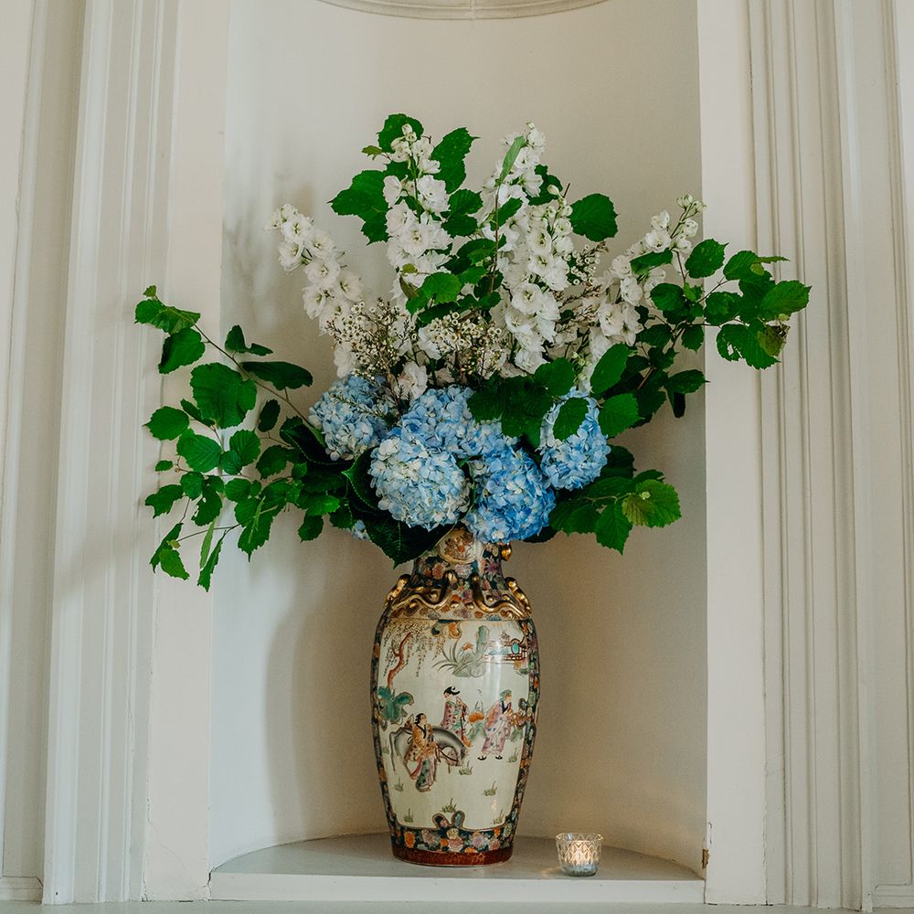 Read this real wedding filled with blue hydrangea styling, family reunions, a harpist, fireworks, and a surprise drag queen performance! It's pure joy from start to finish.