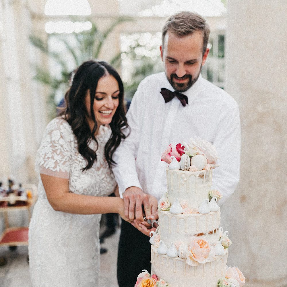 We wanted to have our wedding in or around London, as this is where we have lived for the past ten years and we knew all our German friends and family would love to come over for a weekend of celebrations in our city. Syon Park proved to be the perfect venue: close to Central London, but with the feeling of a countryside estate. We were able to hold both the ceremony and reception in the same location but still have two different venues: Syon House for the ceremony, and The Great Conservatory for our reception. The Great Conservatory, a windowed room full of lush greenery, gives the feeling of an outdoor summer wedding without having to worry about the weather. We loved dancing the night away here with the Wedding Smashers, a RMW recommended supplier who rocked the dancefloor until the end.