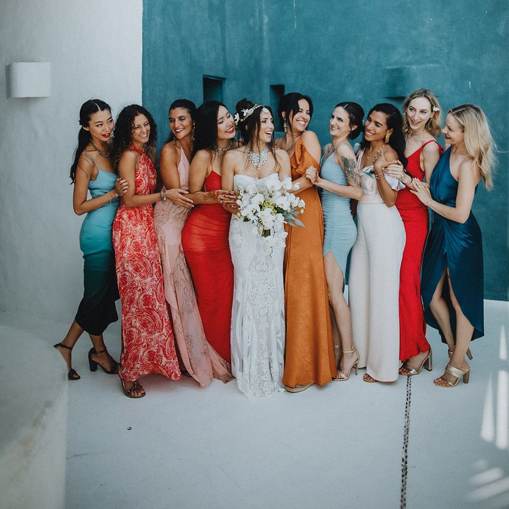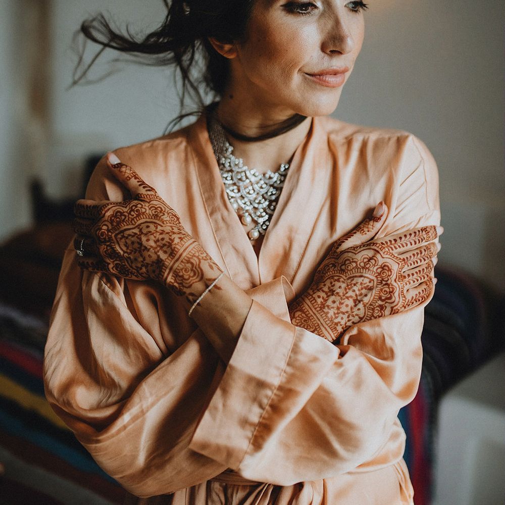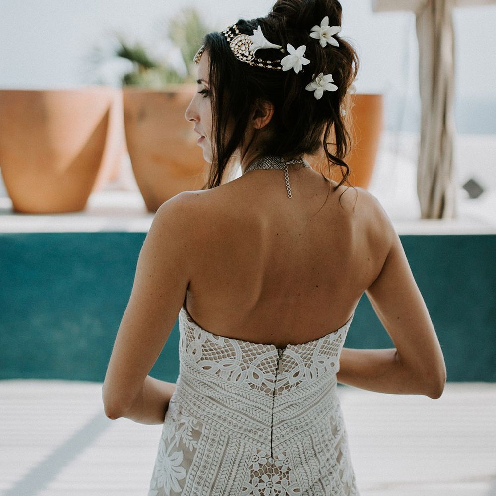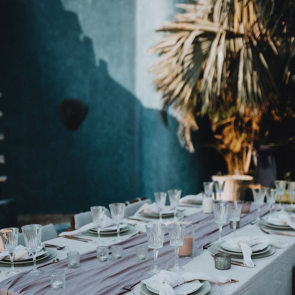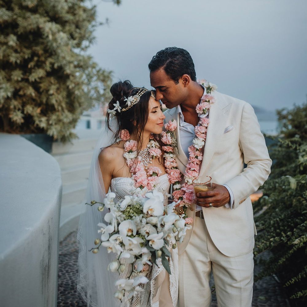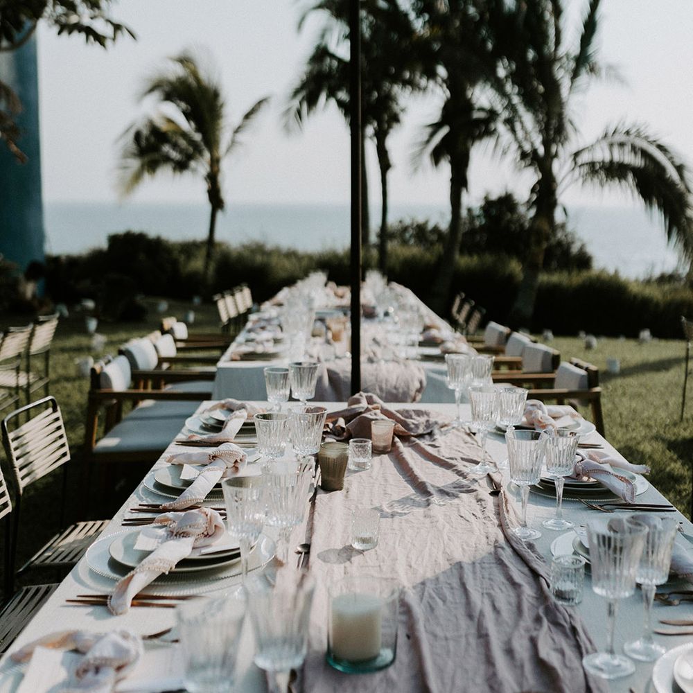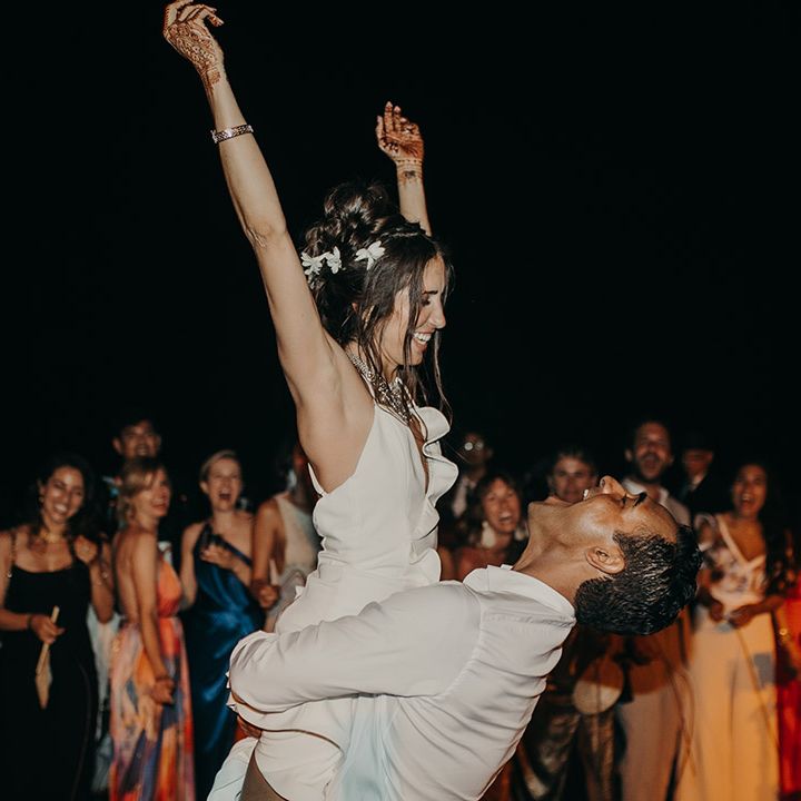 Tigre Del Mar was the perfect backdrop for Marlene & Samarth’s wedding. Based in Mexico, its unique blue and white architecture has nods to Santorini while matching the ocean views provided by the location. The decor featured soft and delicate pastels with macrame and disco ball decor, adding to the laid-back and free-spirited vibes of Tigre Del Mar. Marlene wore a bohemian lace wedding dress and paired it with flower hair accessories and a traditional matha patti. During the ceremony, the couple exchanged pink varmalas, a Hindu wedding tradition symbolising love, respect and commitment. We adore the addition of this tradition and think the pink flower garlands made Marlene & Samarth's outfits better than they already were (if that’s even possible). The couple exchanged their own vows with a handfasting ceremony, and there was not a dry eye in the house. They also chose to do some first-look photographs. These are a great way to ease any nerves and spend a quiet moment together before your big day!