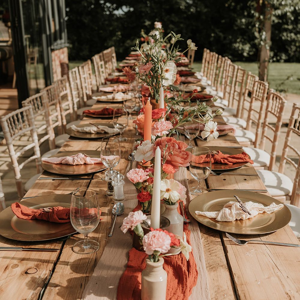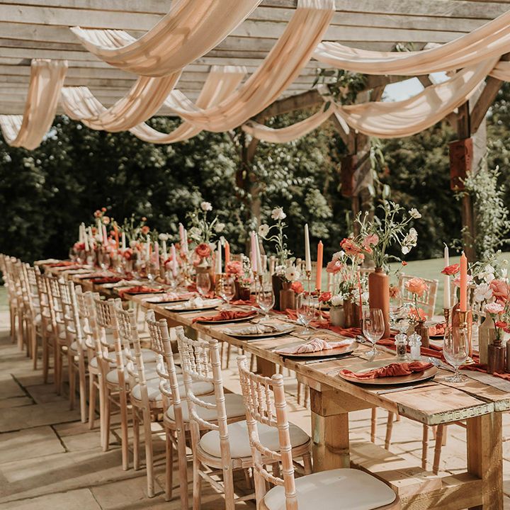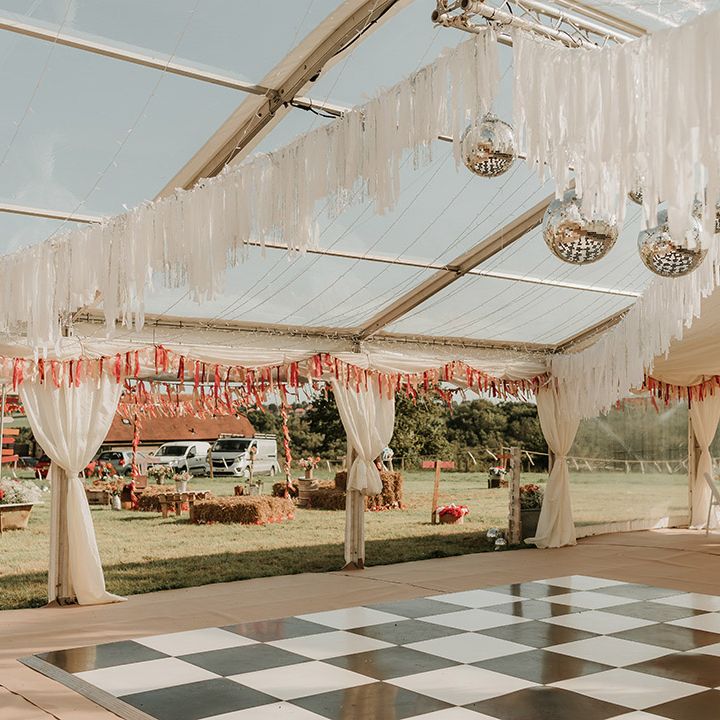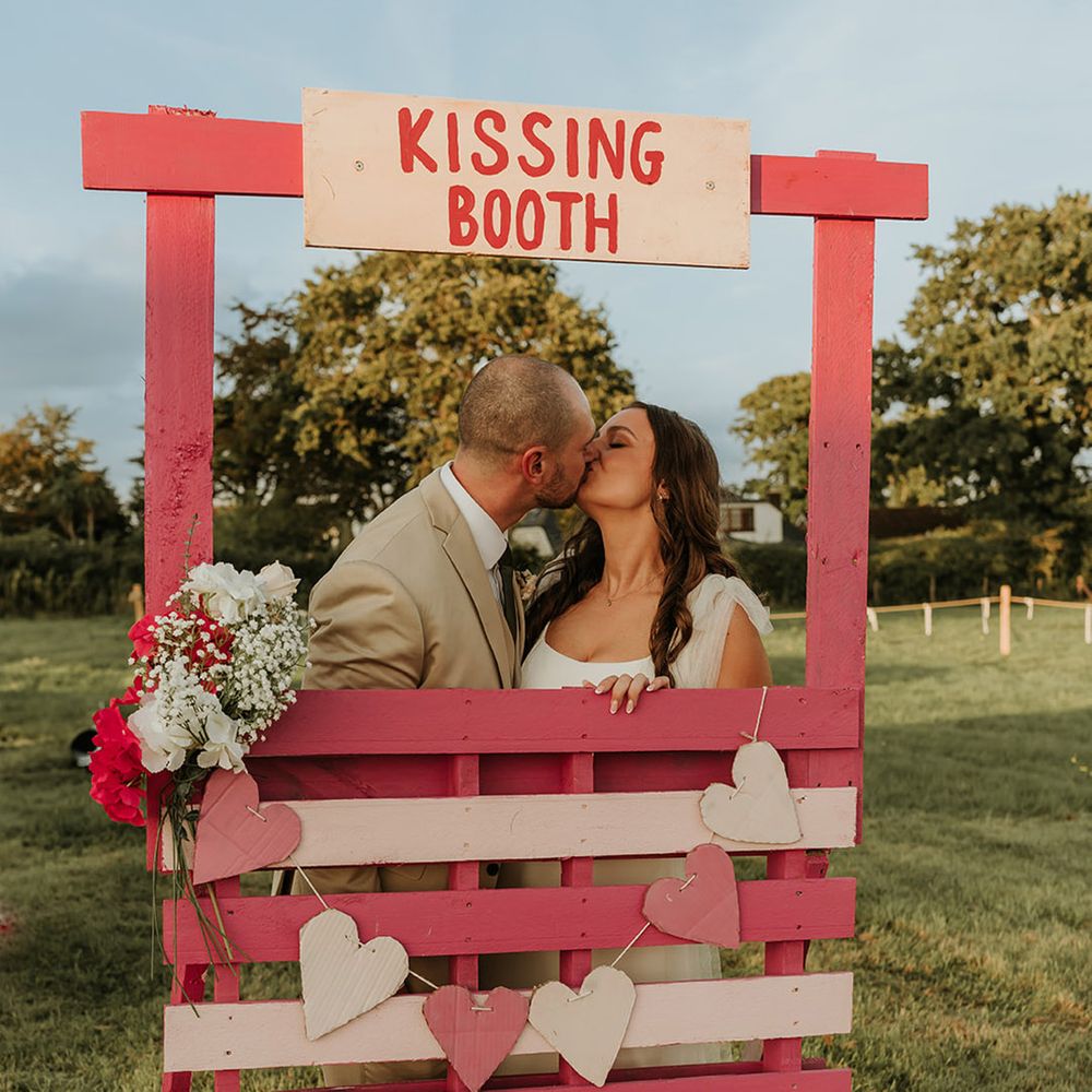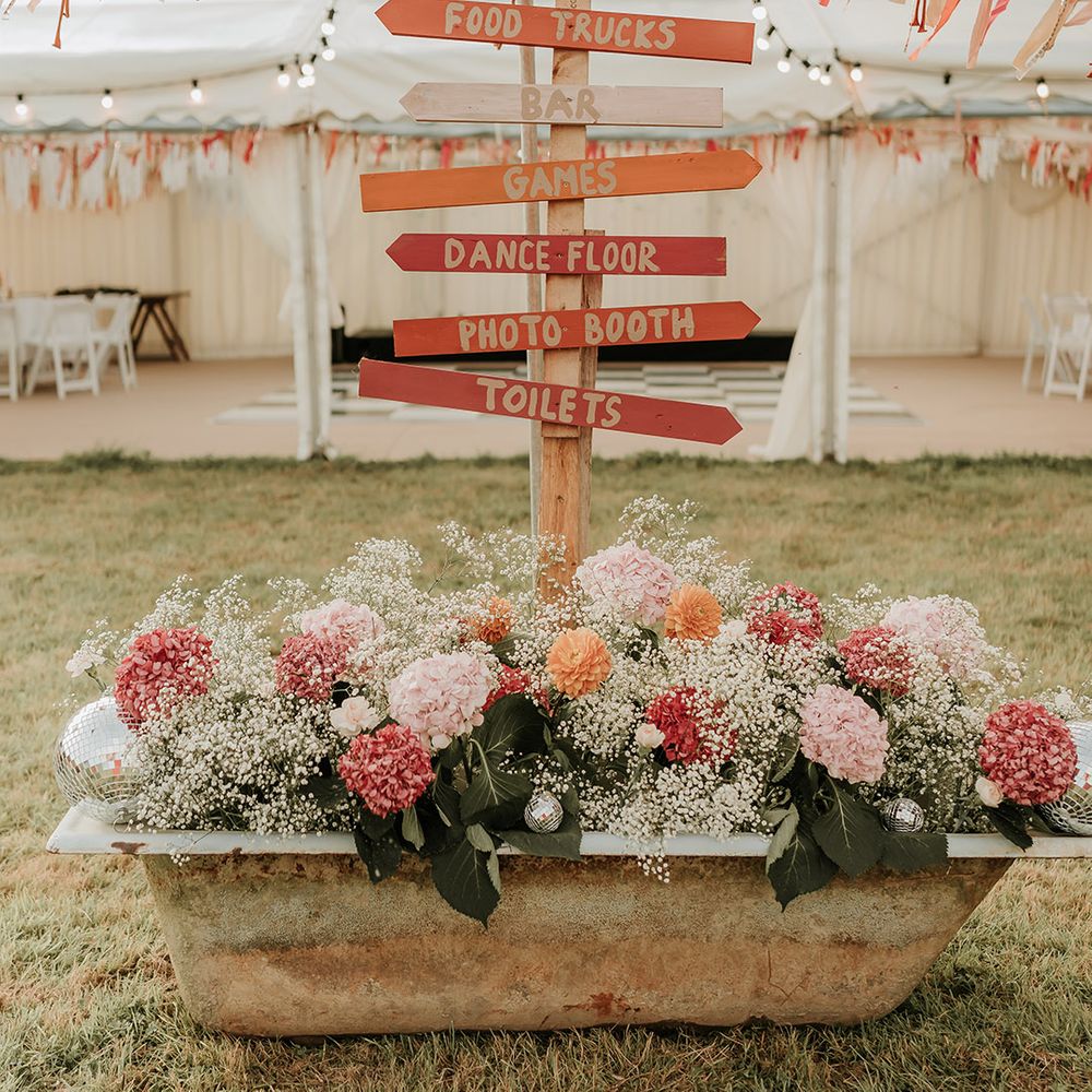 Tilly & George always knew they wanted an intimate wedding ceremony with a big party in the evening! The couple tied the knot at a registry office before heading off to George’s parent’s farm where they hosted their very own wedfest! The couple got stuck in with DIY to make everything feel authentic and unique to them. They sourced and put together all the decor with help from their family and friends, including all the carnival games! The kissing booth, coconut shy, and put a ring on it game were all handmade. The rustic signage was also all DIY! Tilly, George and their family spent many hours cutting and tying fabric to make the bunting and dance floor decor. The part we were most impressed with though, was the flowers! Tilly & George went to New Covent Garden Flower Market to buy flowers and did all the arrangements themselves. We LOVE the vision. We could look at these photos all day long…