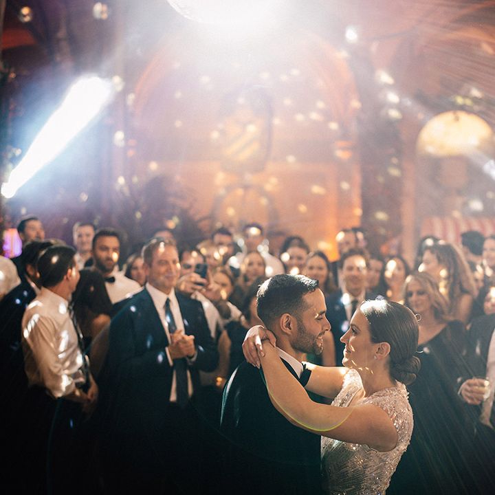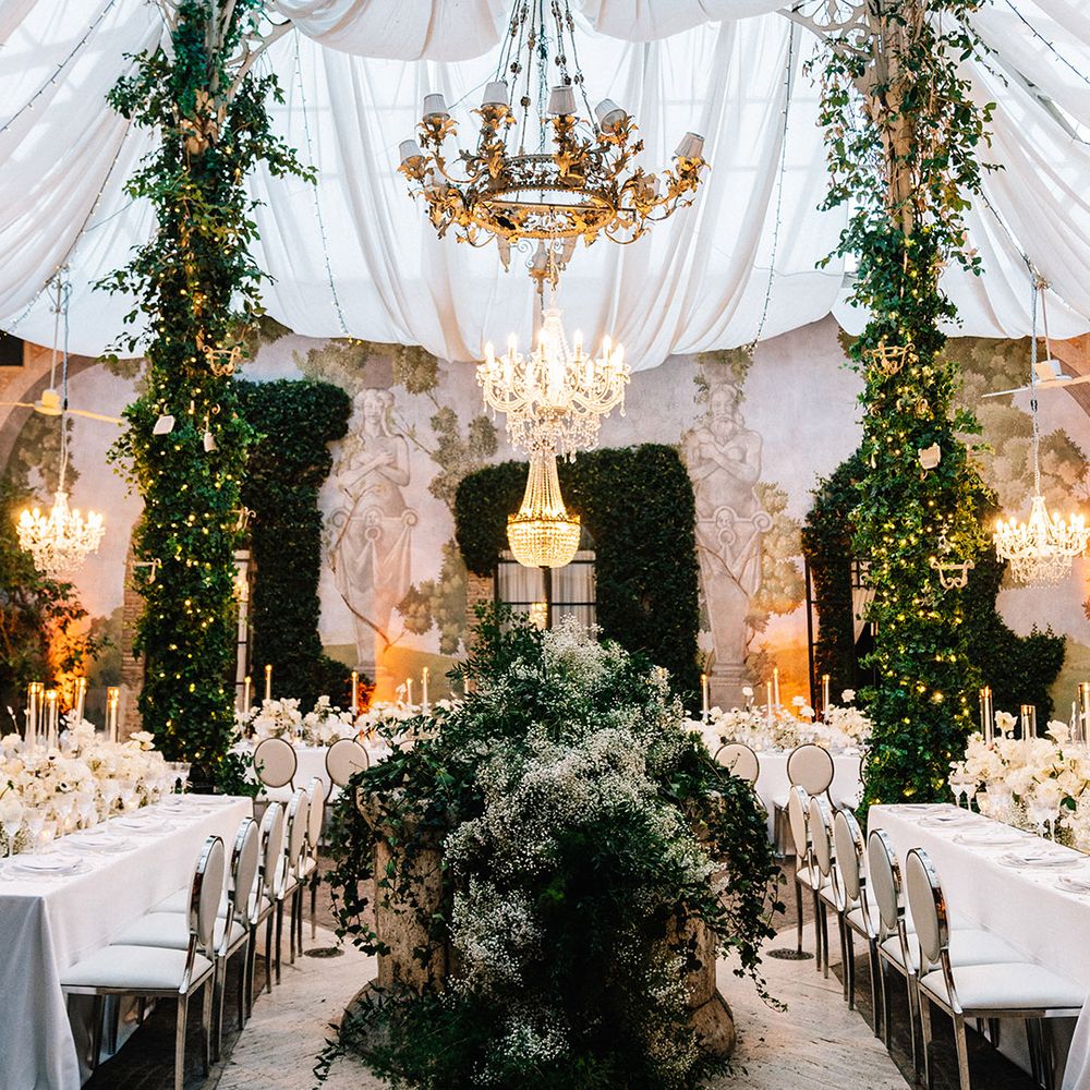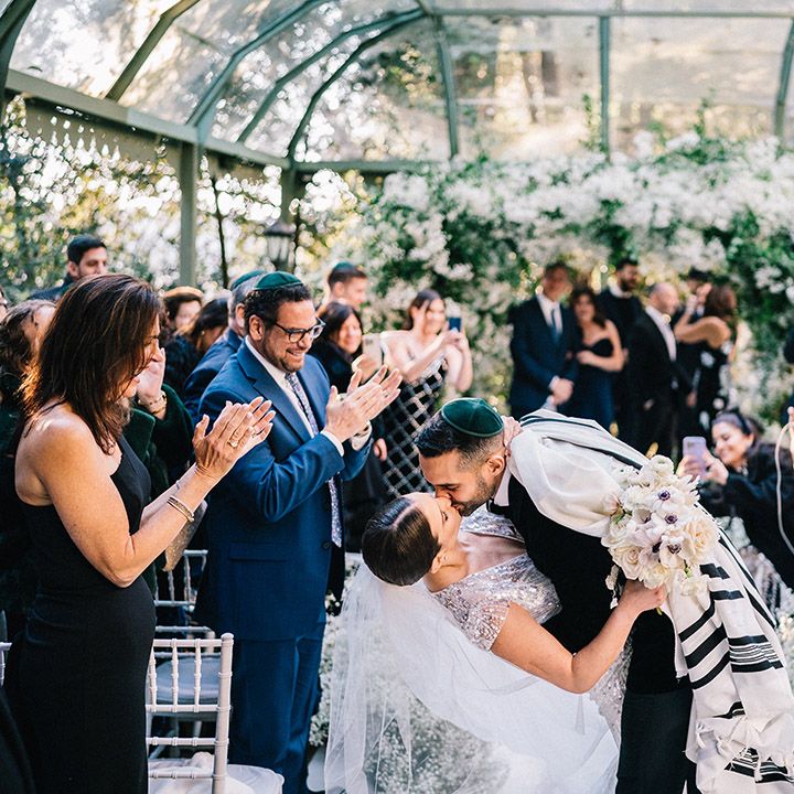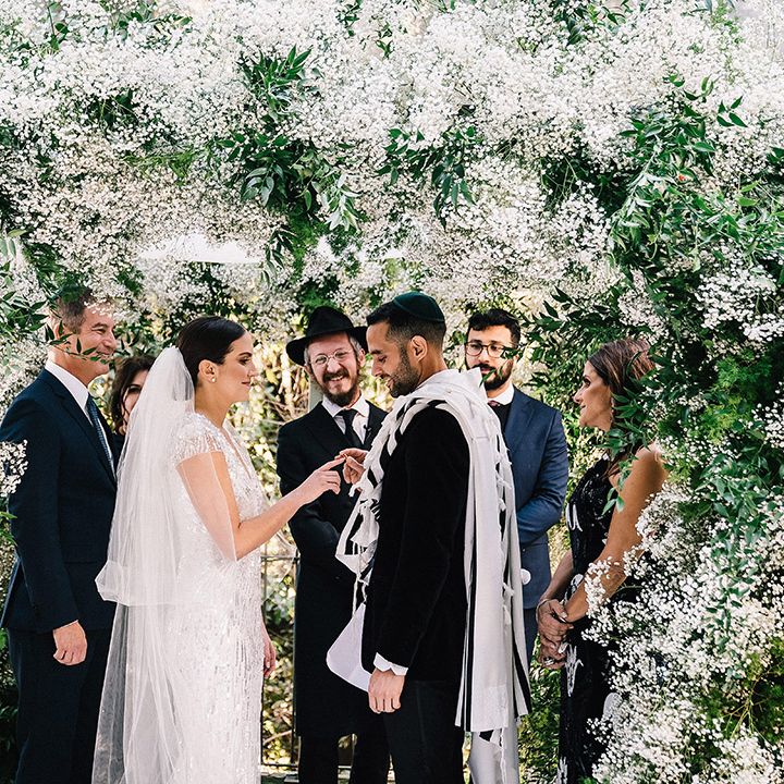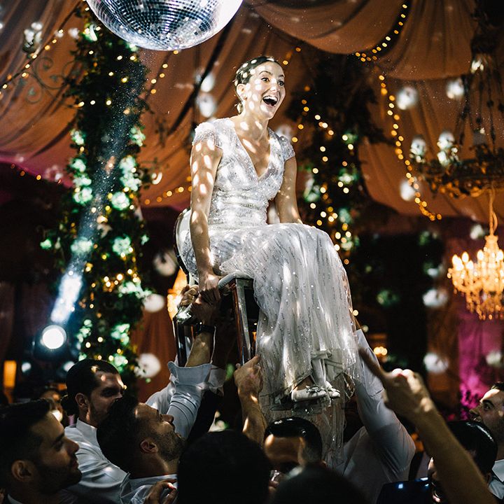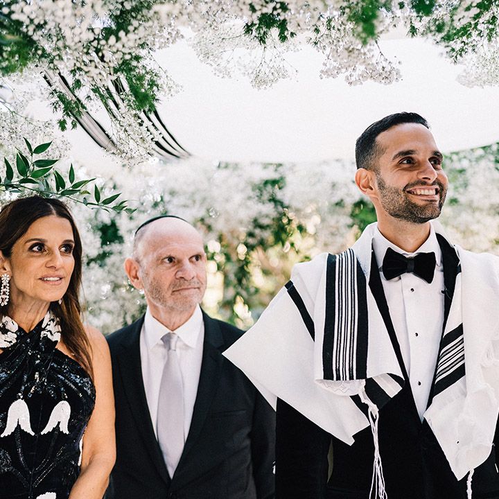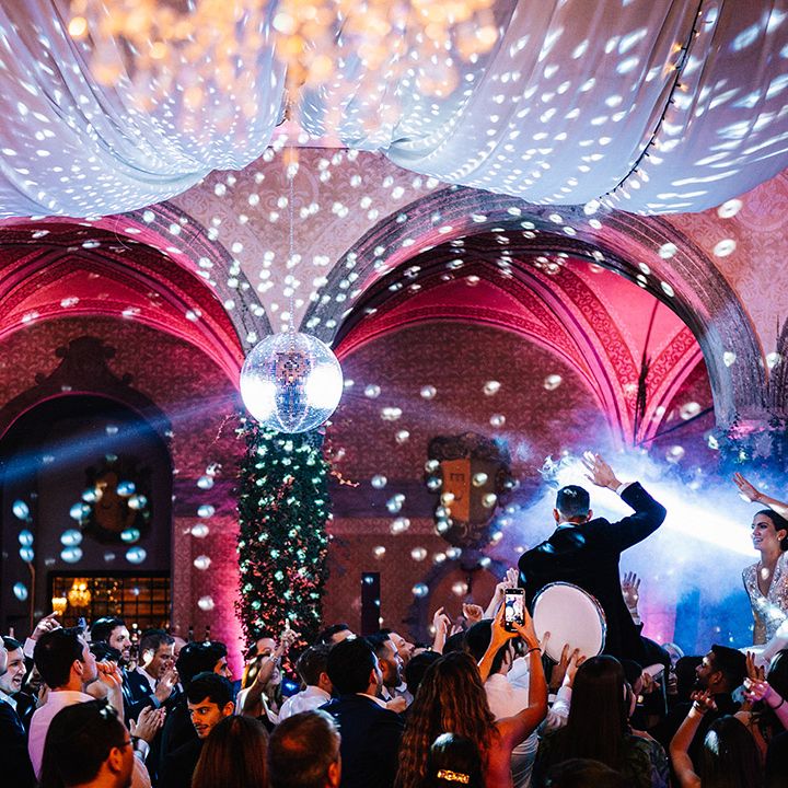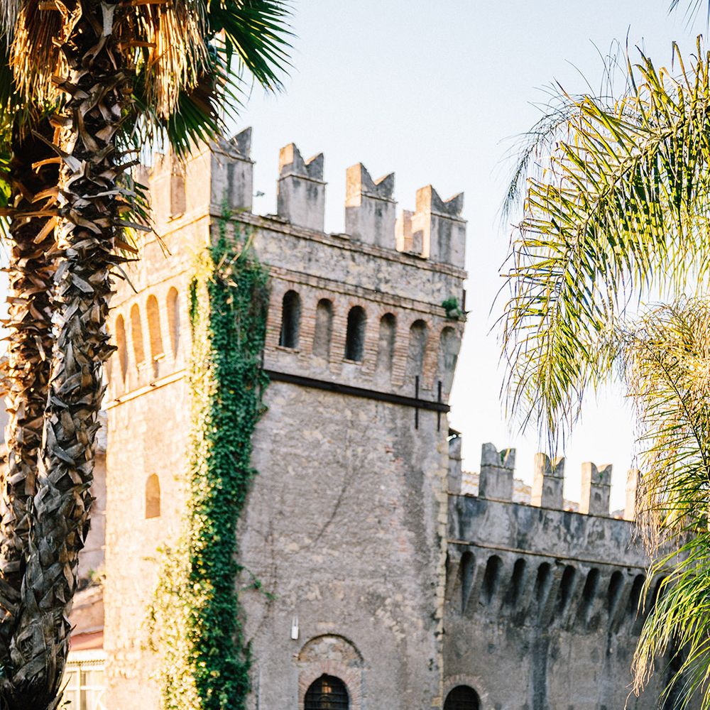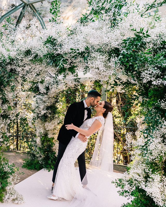 Traci & Jon married at Castello di Torcrescenza, a beautiful, historic castle! Yes, a castle! Being that the venue is so iconic, the couple wanted to let the venue speak for itself with its beautiful gardens and painted walls. They kept the decor simple and added to the natural beauty with lots of flowers including gypsophila and roses. They even created the Chuppah out of flowers! Traci & Jon decided not to do a first look so seeing each other for the first time walking down the aisle was very emotional and special. The actual ceremony was a very traditional Jewish ceremony. The rabbi incorporated all the aspects of a traditional ceremony under the Chuppah including the seven blessings, a Ketubah signing, and the breaking of the glass. The bride walked down the aisle to Hallelujah, and the wedding party included a variety of music including Hebrew and Spanish songs.