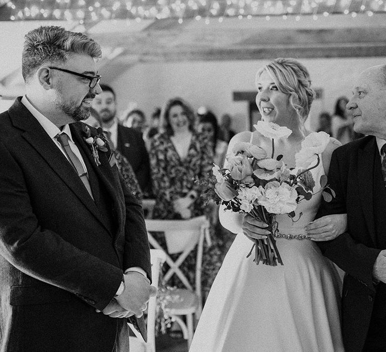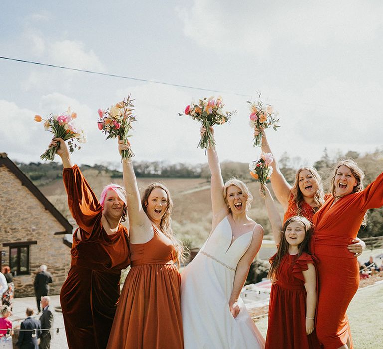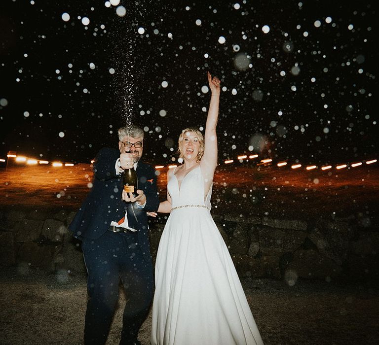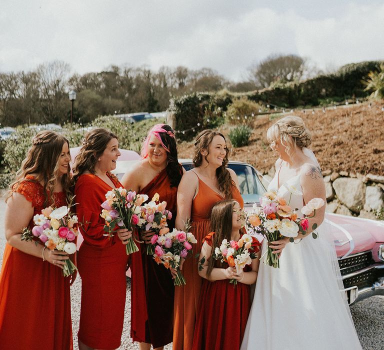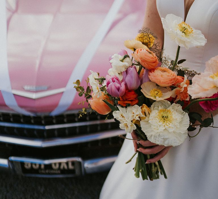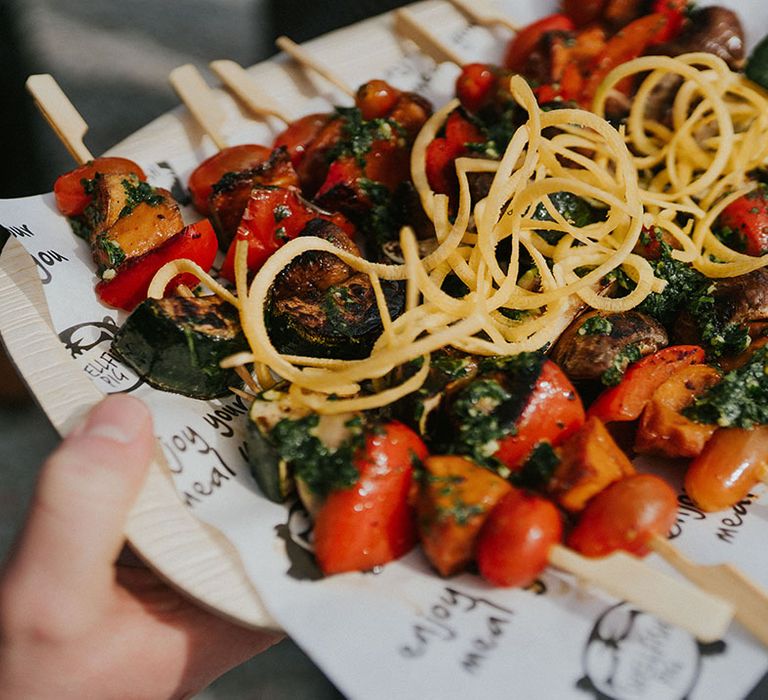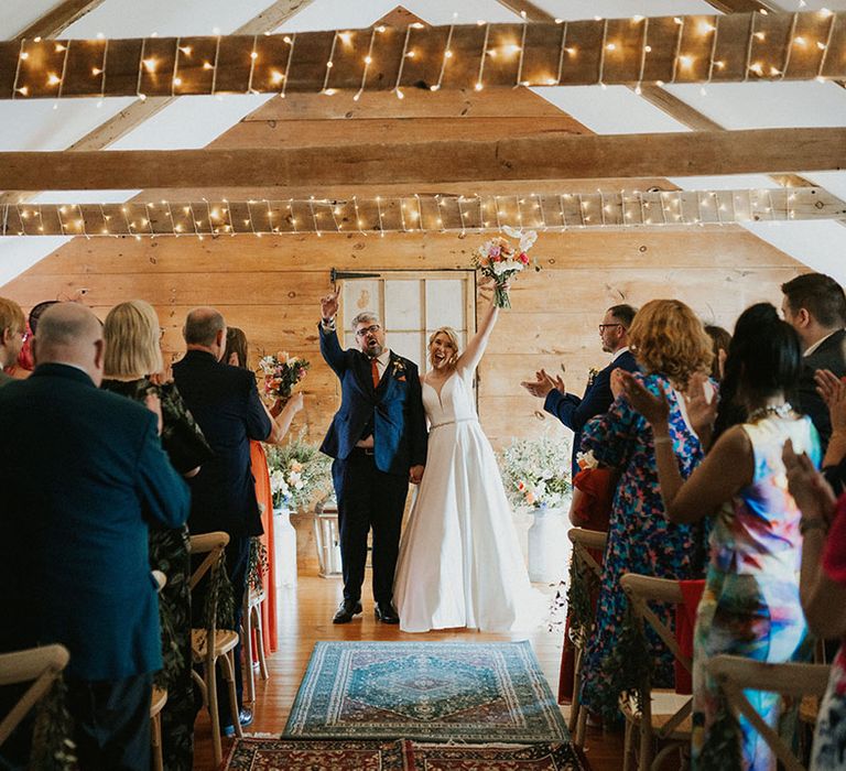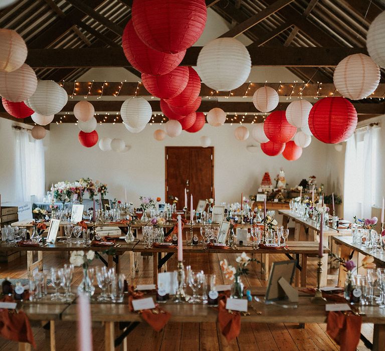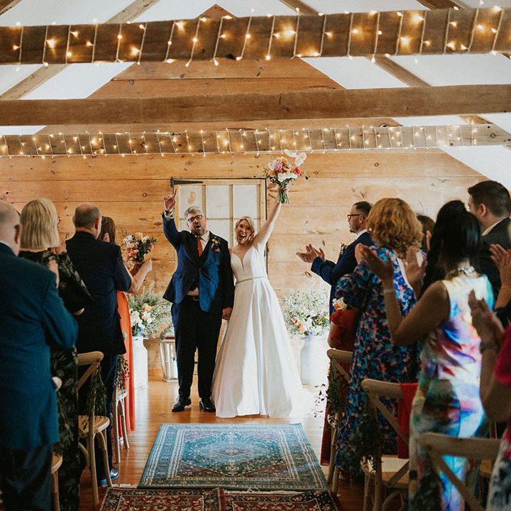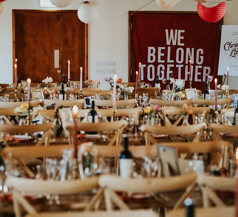 Lauren & Chris' vibe was punk rock boho. As music fans, they wanted this to be reflected in their decor including displaying their fave lyrics on banners throughout the venue, music-themed table names, favours, and a record player guest book! The party got started with a rock and noughties-themed setlist. In addition to this, Lauren's first ever words to Chris were 'You're a babe', so of course, this also played a part in their invitations and banners, which they DIY'd! Some of the couple's favourite moments include the alpacas (!), the pink Cadillac wedding car, and speeches from Lauren's mum and dad. Our personal absolute highlights of this day include Lauren's pink denim jacket cover-up and sunglasses combo, THAT dessert table and the cute alpaca cake toppers. Of course, we also love that this couple had Everything I Know About Love by Dolly Alderton as one of their wedding readings.