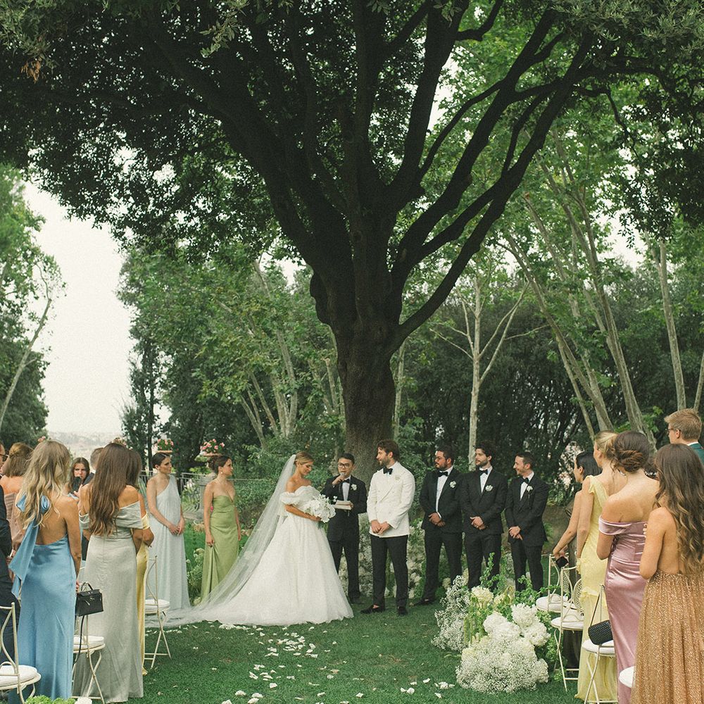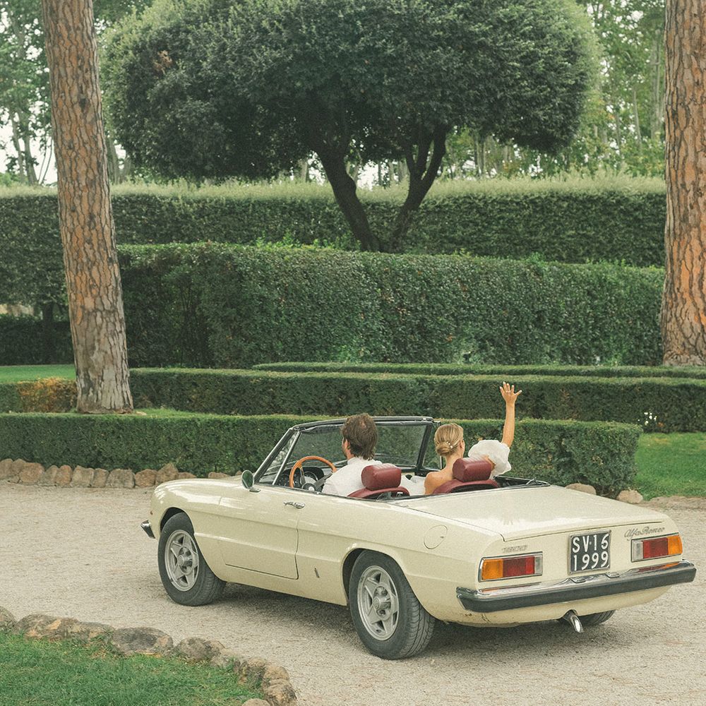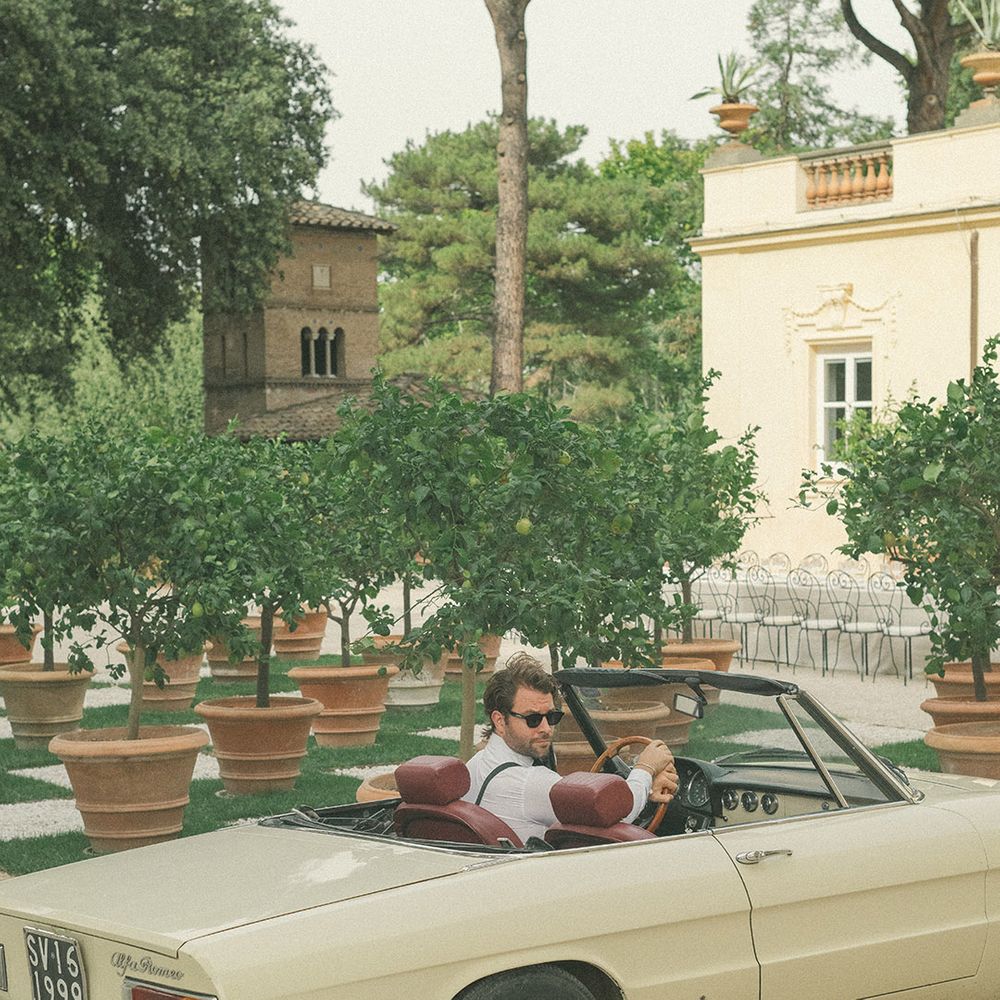 One of our best memories from the day was when straight after the ceremony, whilst the guests were at the cocktail area, my husband and I got into our vintage Alfa Romeo, and with no phones, no photographers, we went for a drive around Rome. It was just us and our love bubble. Us against the world. Damn it felt good! And then! Halfway through the ride, for the first time in my life, a bird that flew over us left me an unexpected “gift” all the way across my arm, just millimetres from my wedding dress sleeve. Where I’m from, this is considered the highest form of luck! Just when we couldn’t feel luckier!