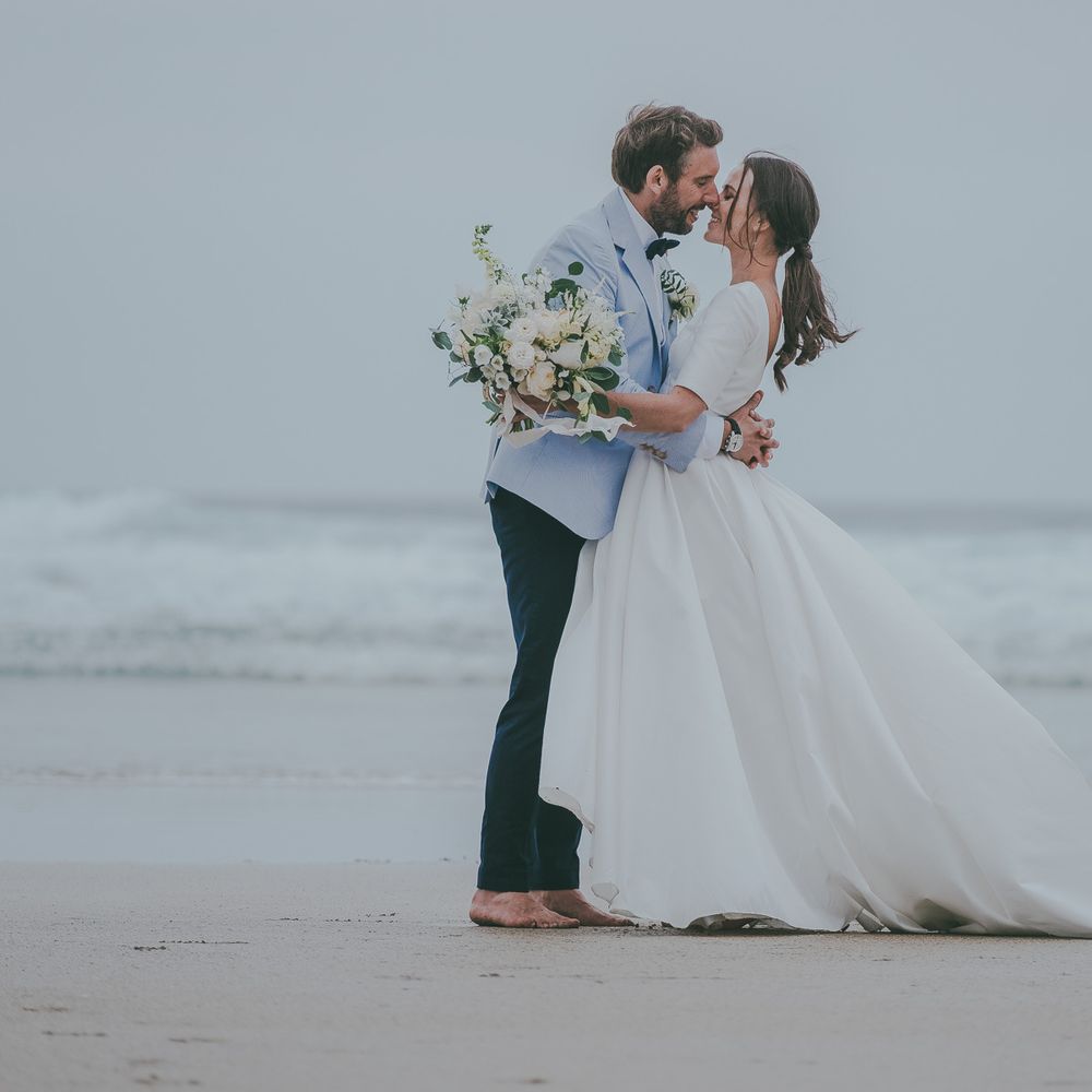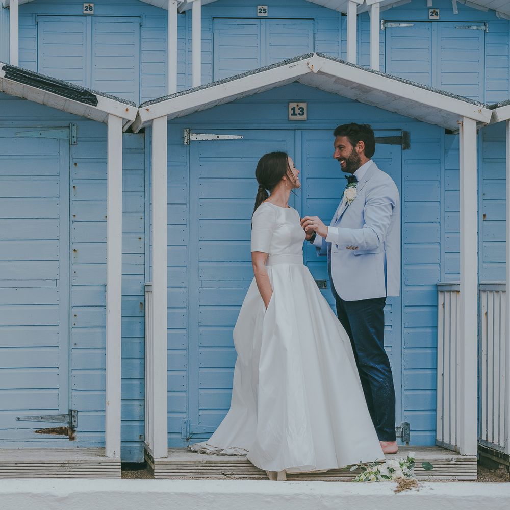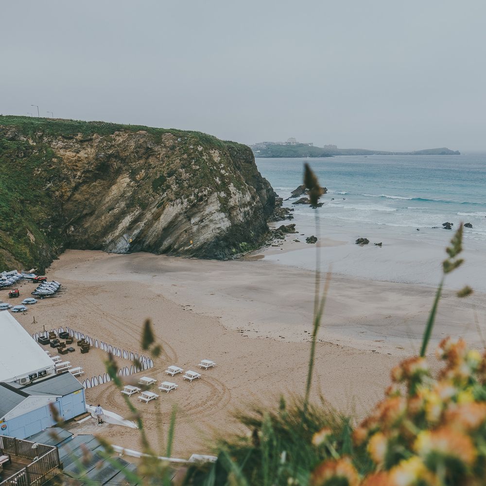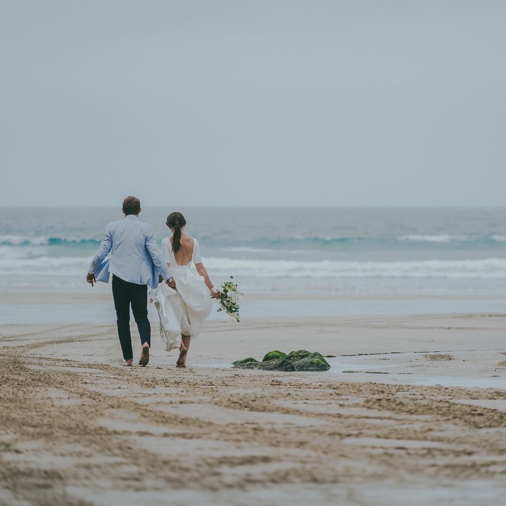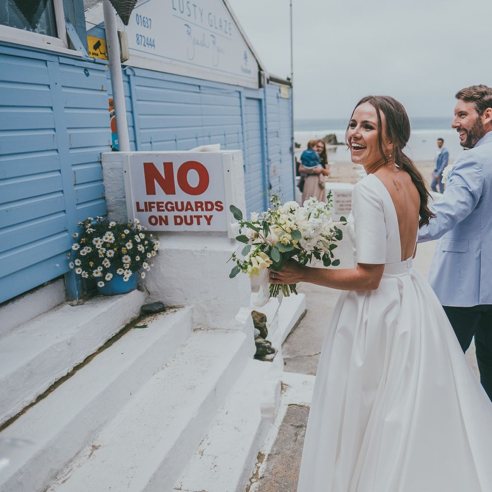 Wedding On The Beach At Lusty Glaze Cornwall With Bride In Dress With Pockets