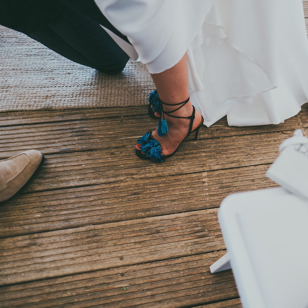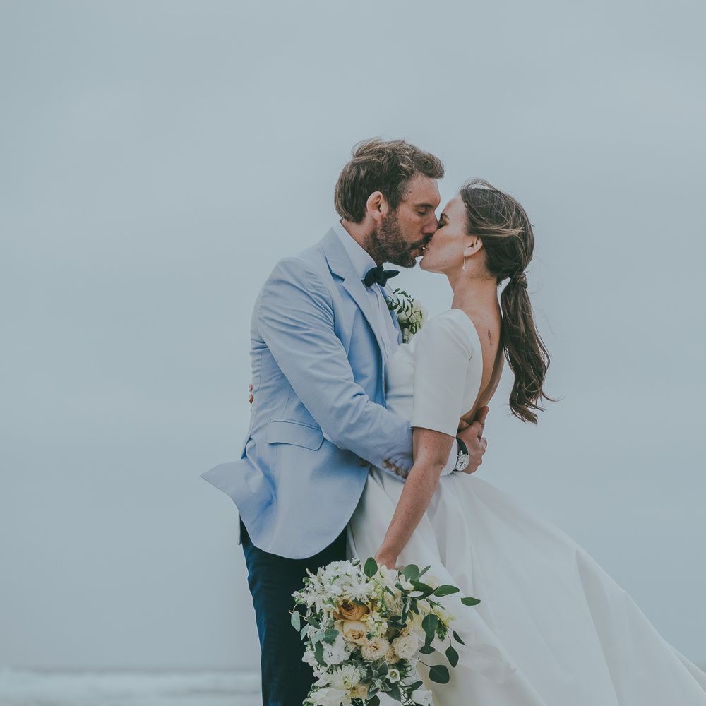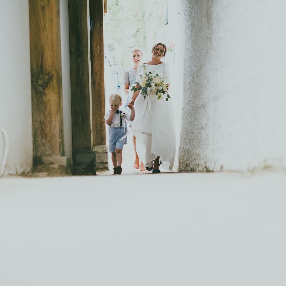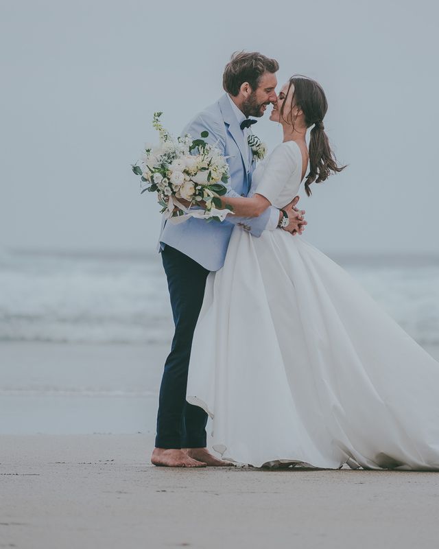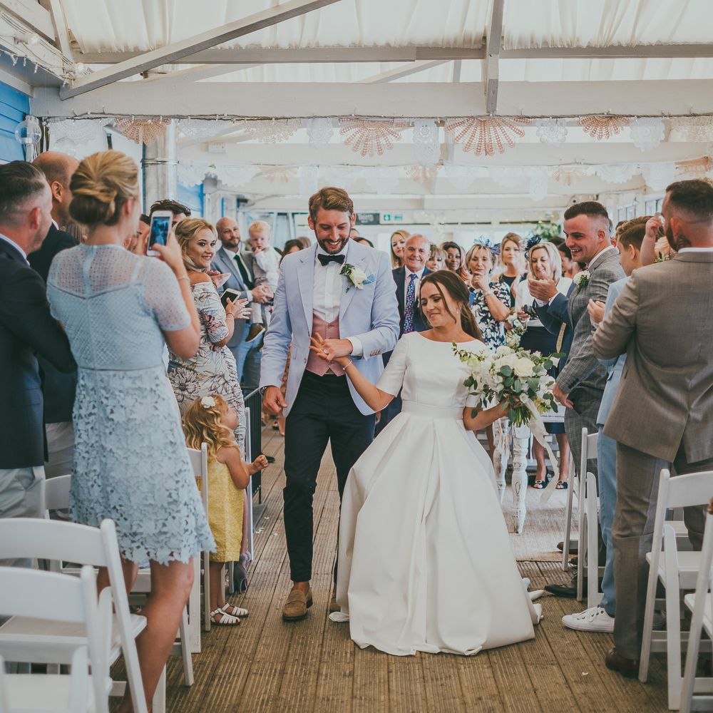 Wedding On The Beach At Lusty Glaze Cornwall With Bride In Dress With Pockets