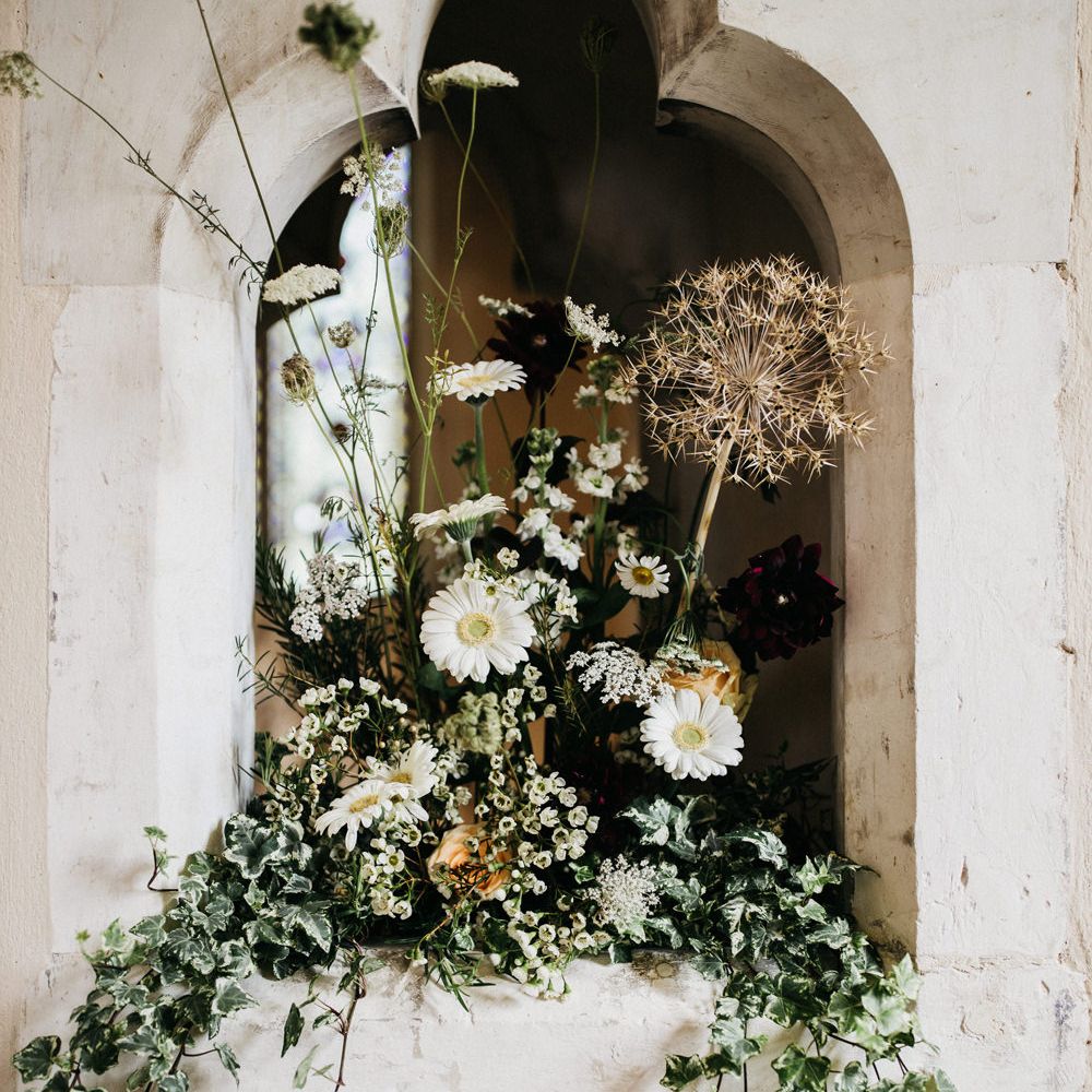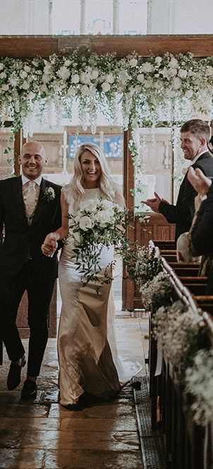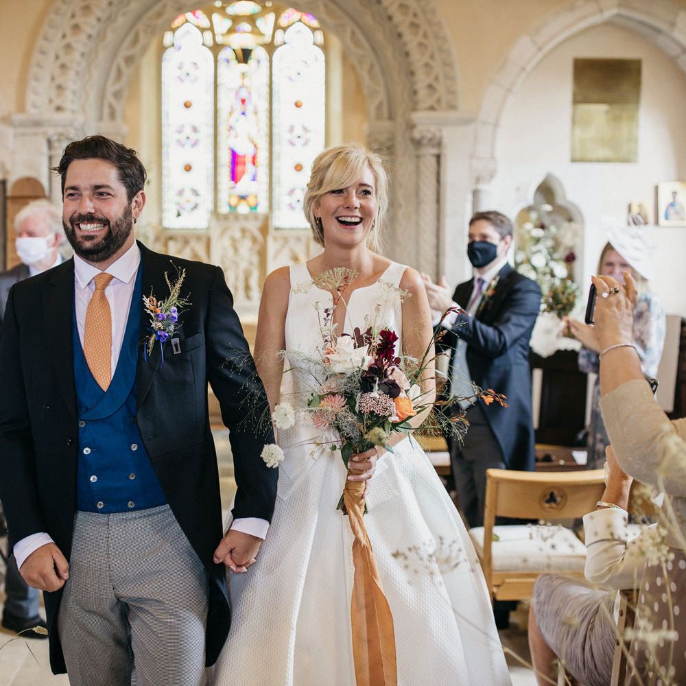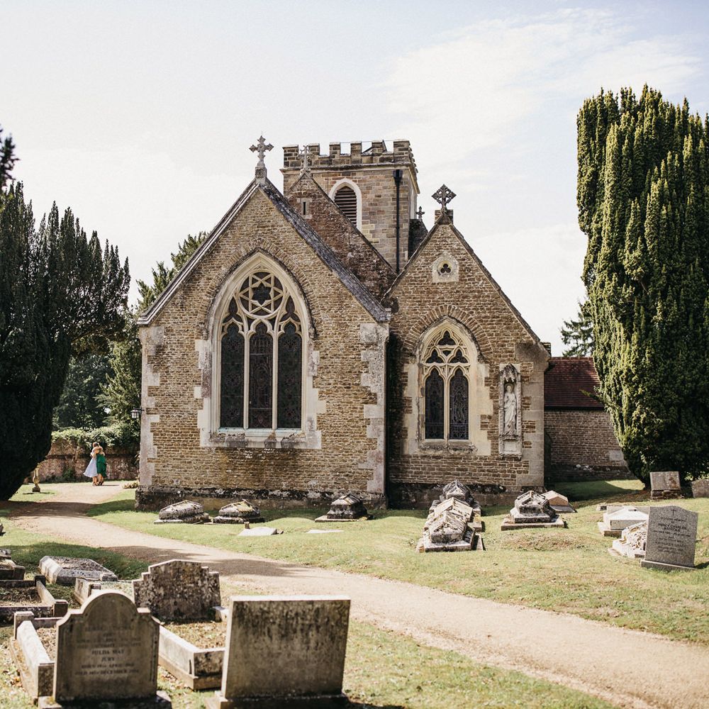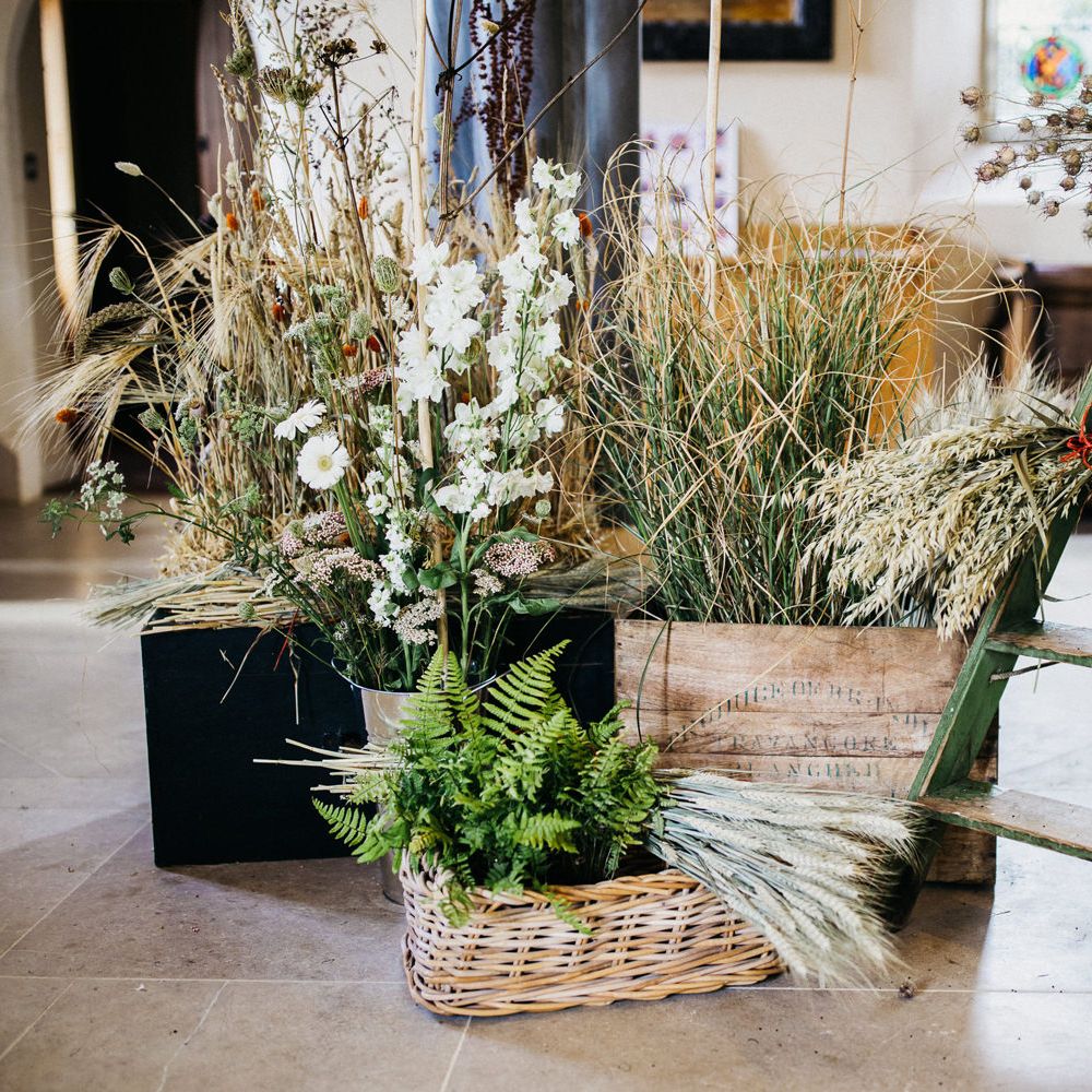 White and Green Church Wedding Flowers and Marquee Reception at East Afton Farmhouse