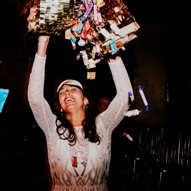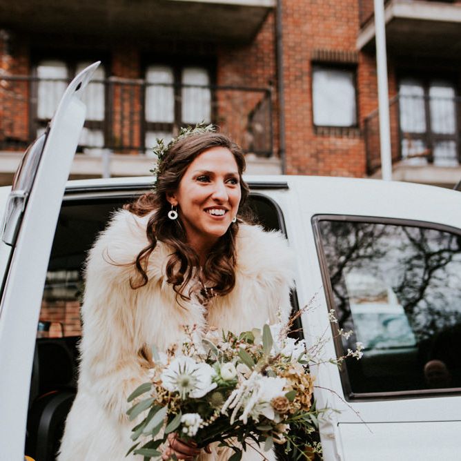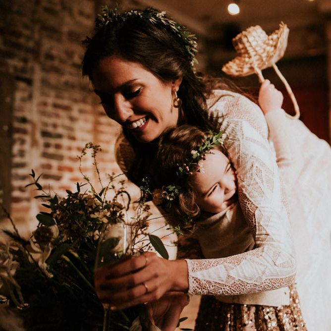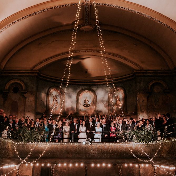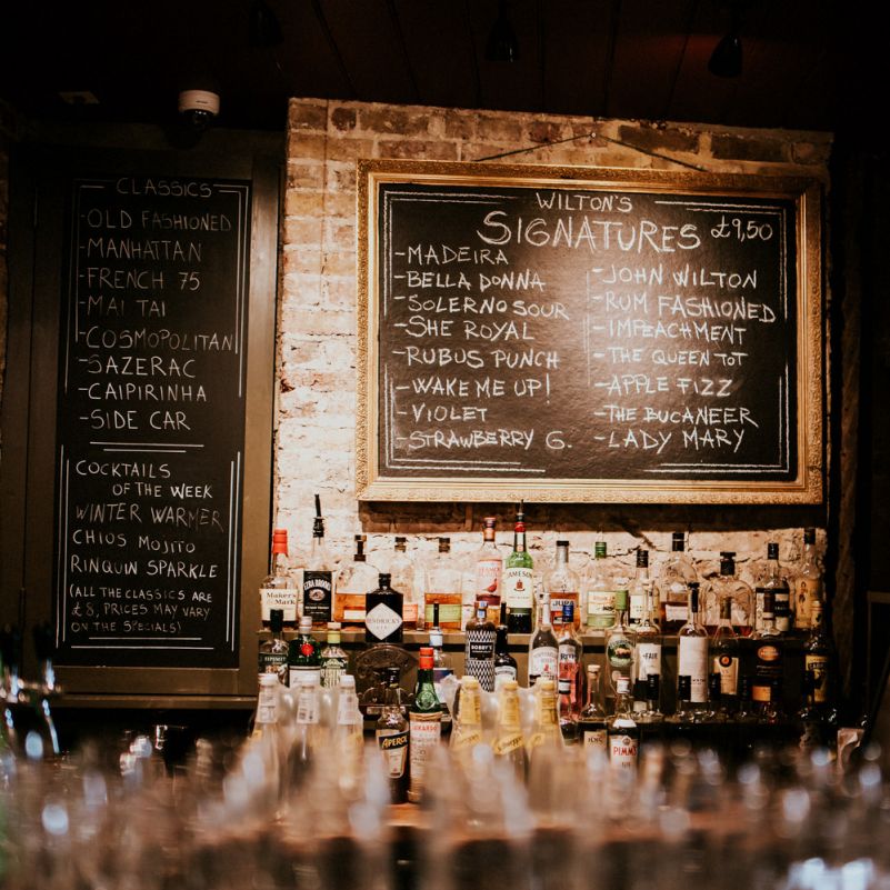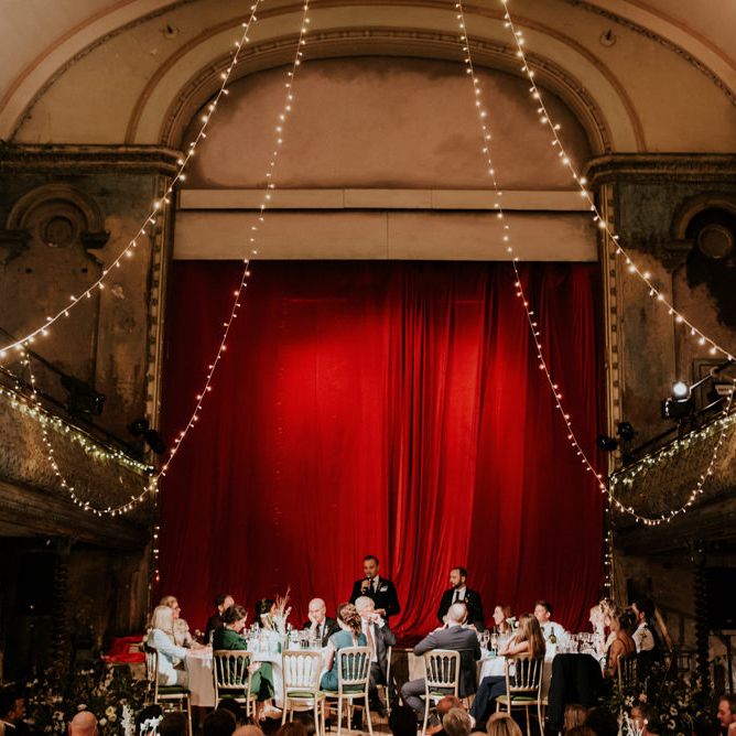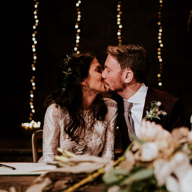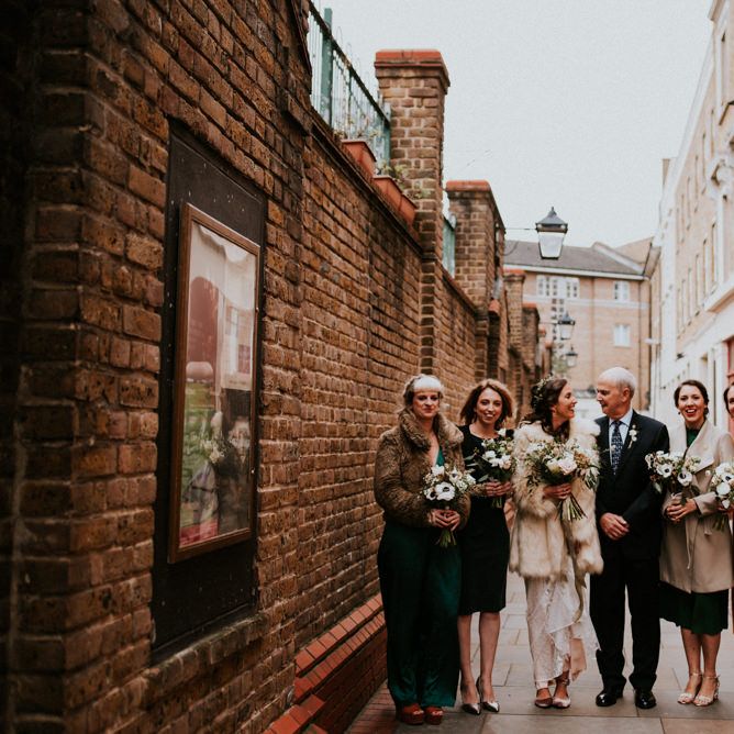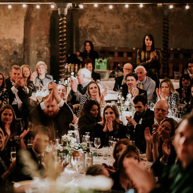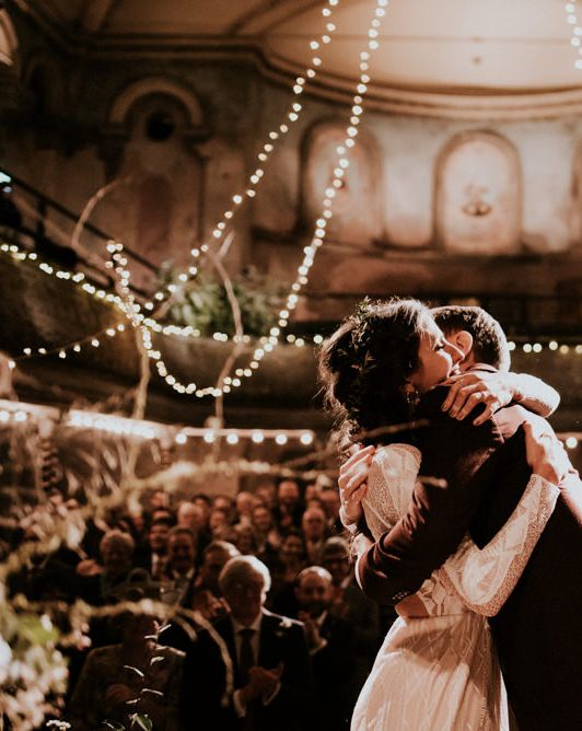We started out intending to do something very low key and wanted to make it as easy as possible for our guests to come without travelling huge distances or spending an arm and a leg. As soon as we went to see Wilton's though, the low key thing went out the window - the ceremony itself had to be conducted with us on the stage! But the building is so old and atmospheric that it ultimately spoke for itself - we had some foliage, dried flowers here and there but the lighting did much of the work and really it needed very little styling.