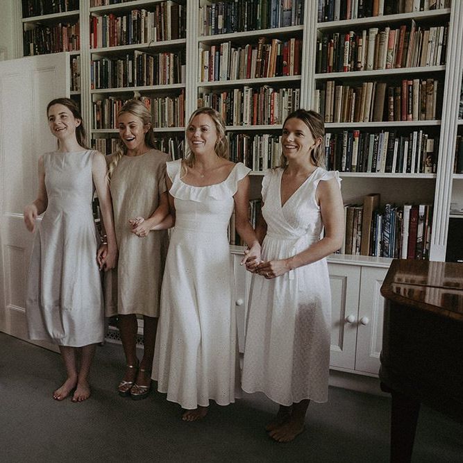 The vibe was something along the lines of "Mediterranean walled garden meets English country wedding". The styling was provided by Ann who was in charge of the venue and created the gardens herself all year round. Ann had worked with Suzan from Croxfords and together they created and styled the Marquee to fit with the gardens and make it a continuous space. When we realised how hot it was going to be on the day we gave back all the umbrellas we had rented and bought a collection of over 40 cheap Panama hats from ASOS that were well used! In terms of outfits, I fretted about bridesmaid’s dresses for weeks and couldn't decide on one style or even colour that all of the girls would like so, in the end, I asked them to pick something summery and neutral that they might actually wear again. I think they looked incredible and loved that they were all unique!