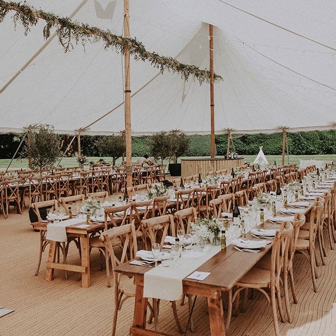 We looked at loads of venues, initially thinking we would get married abroad, then Cornwall, then Devon, then the entire south coast before we eventually started looking closer to home... We found Rousham which is just outside Oxford where I grew up and fell in love with the gardens immediately. It has so many beautiful parts to it; the rose garden, the orchard, the lawns, the hidden statues and then the house itself looking over the river. We would have loved to get married at home if we had any space but at Rousham it felt like having a wedding in somebody's beautiful garden rather than an actual venue! We were so lucky with the weather, it happened to be the hottest day of the year and most people were desperately trying to strip off layers rather than huddle under umbrellas as I had been envisioning. I feel like I had something to do with it because of the week before I had 'panic hired' two huge heaters for the marquee... But the heat meant we could have the marquee open and people could wander in and out to the garden between courses and ultimately it gave us the atmosphere of being abroad that we had looked for.