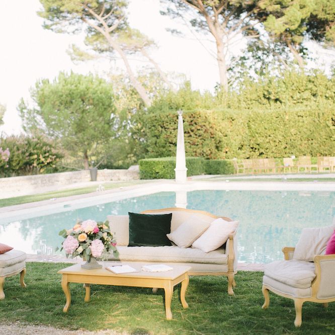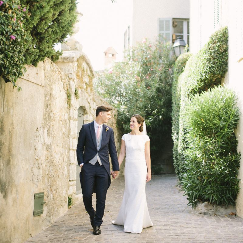 Before starting planning Amaury and I both had envisioned a long weekend celebrating in Amaury's home in the South of France with family and friends. We wanted an opportunity for all the people we love to meet, make new friends, all while enjoying the simple pleasures the Cote d'Azur has to offer. Our colour palette mixed blush, coral and peach with pops of berry and was accented with touches of green, gold, and ivory. Our style vision was what the French call "champêtre." We envisioned a relaxed and romantic atmosphere highlighted by the charm and beauty of the south of France. The venue and its views were the true highlights of our wedding. While weddings are a ton of work and certainly take a village, the day goes by so so fast. Try to enjoy the time and experience and remember the day is wonderful, but it's really about celebrating starting a life together with your partner.