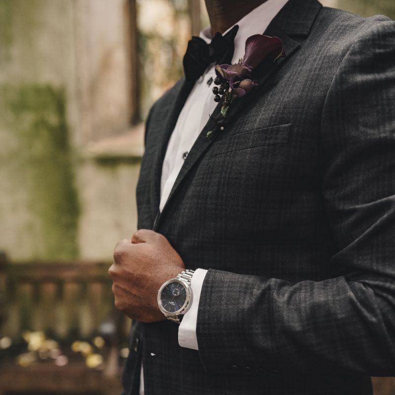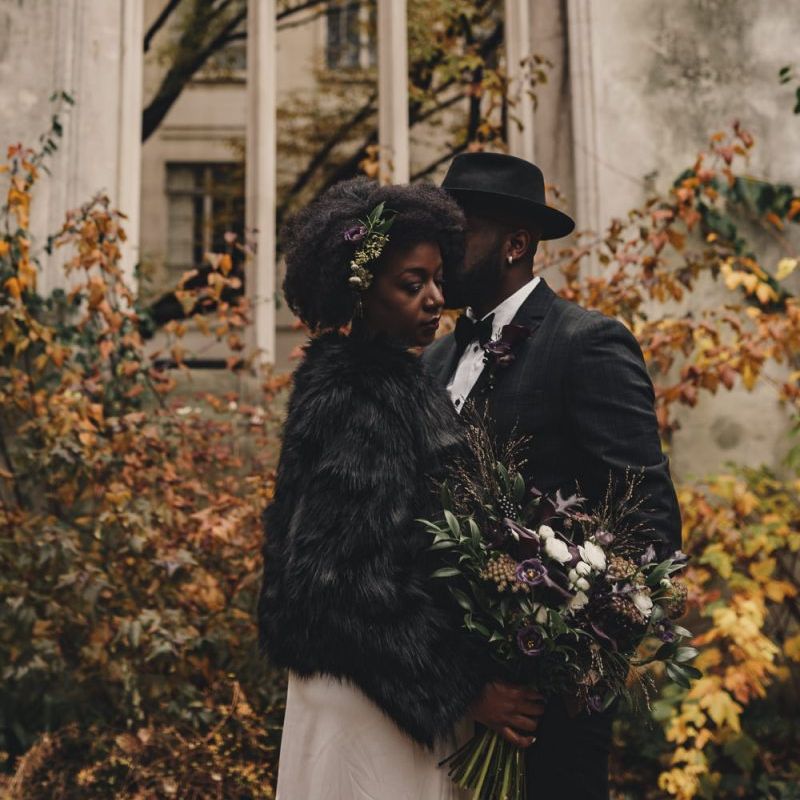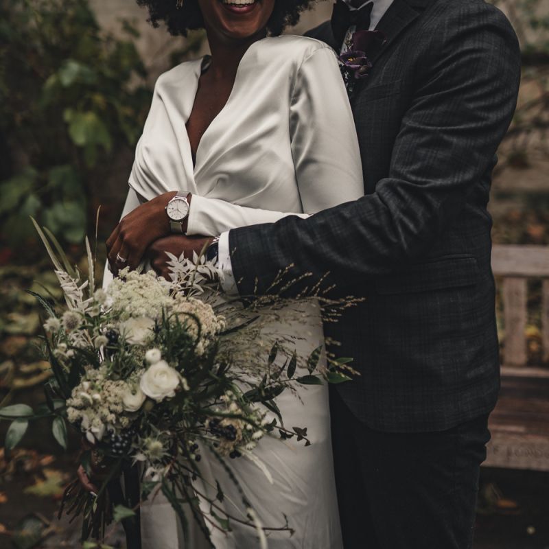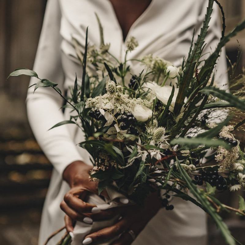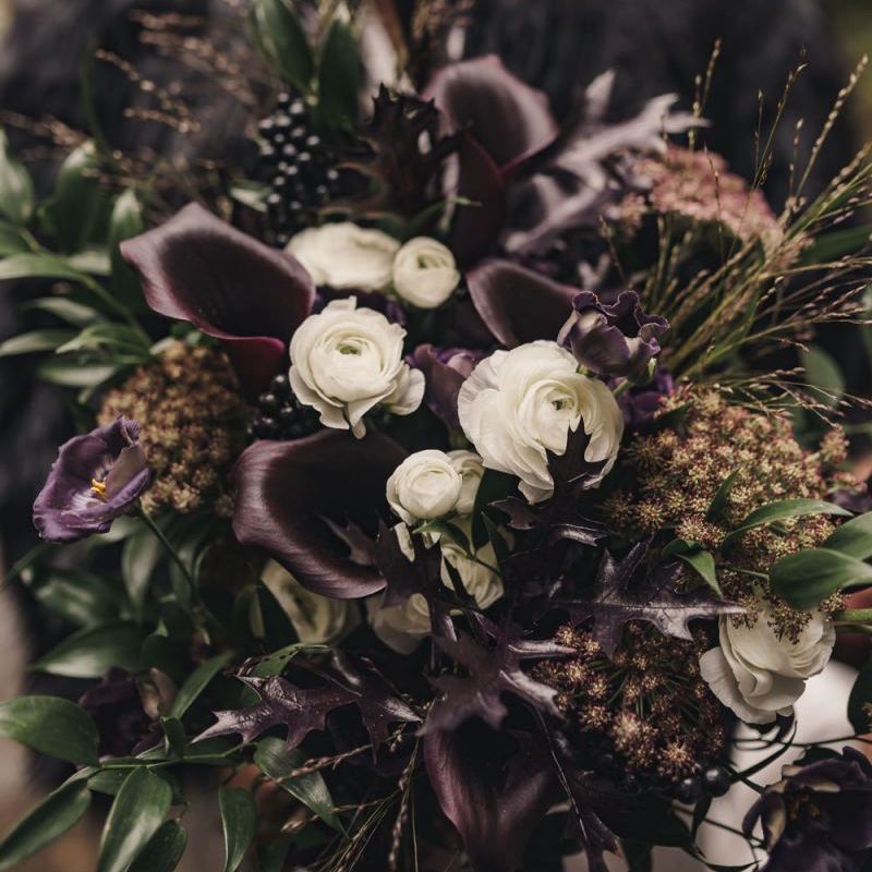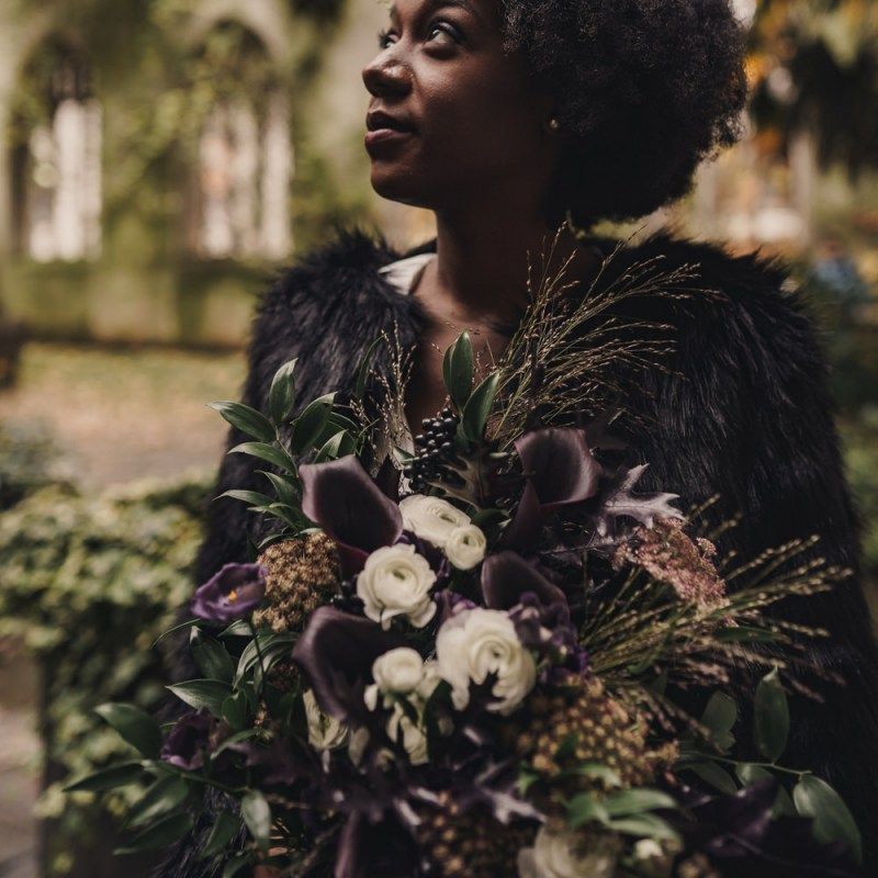 To add to the nature-sque vibe we envisioned, we without a doubt wanted dramatic bouquets and specifically, a floral hair-comb for our beautiful bride. Rachel from House of Dandelions really took on board the theme and provided us with two bouquets, two buttonholes and a hair-comb as examples of what you could with such a moody colour palette. The hair comb was a stunning part of the bridal look and something you don't see a lot of brides wear as much! The mixture of class and floral really brought the shoot to life and was a major highlight.