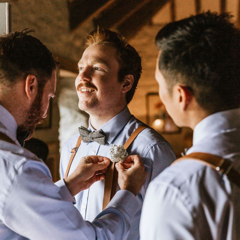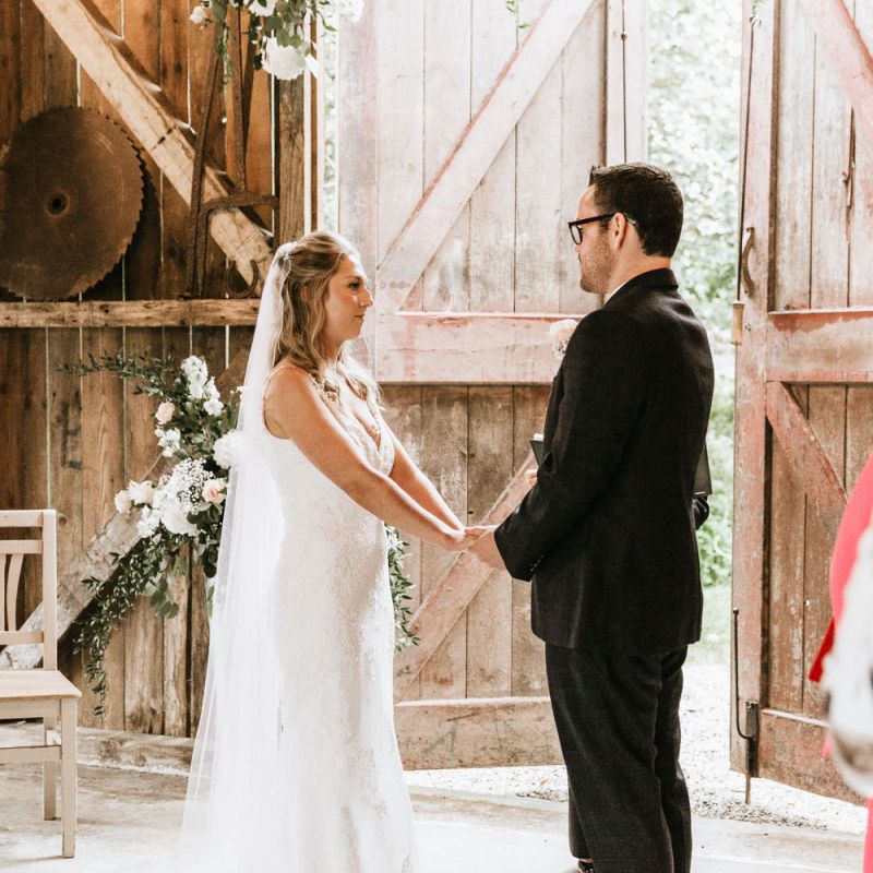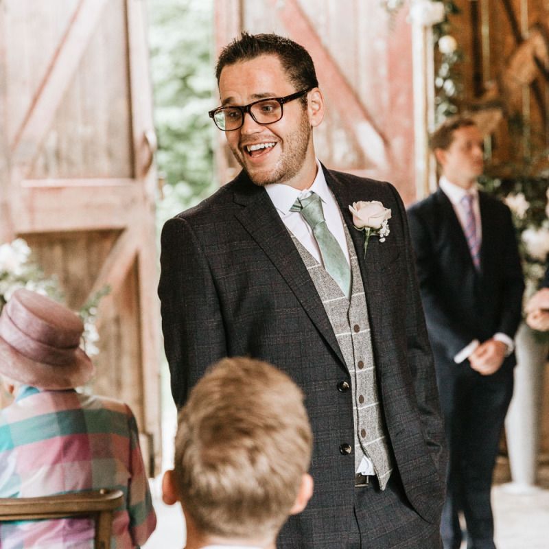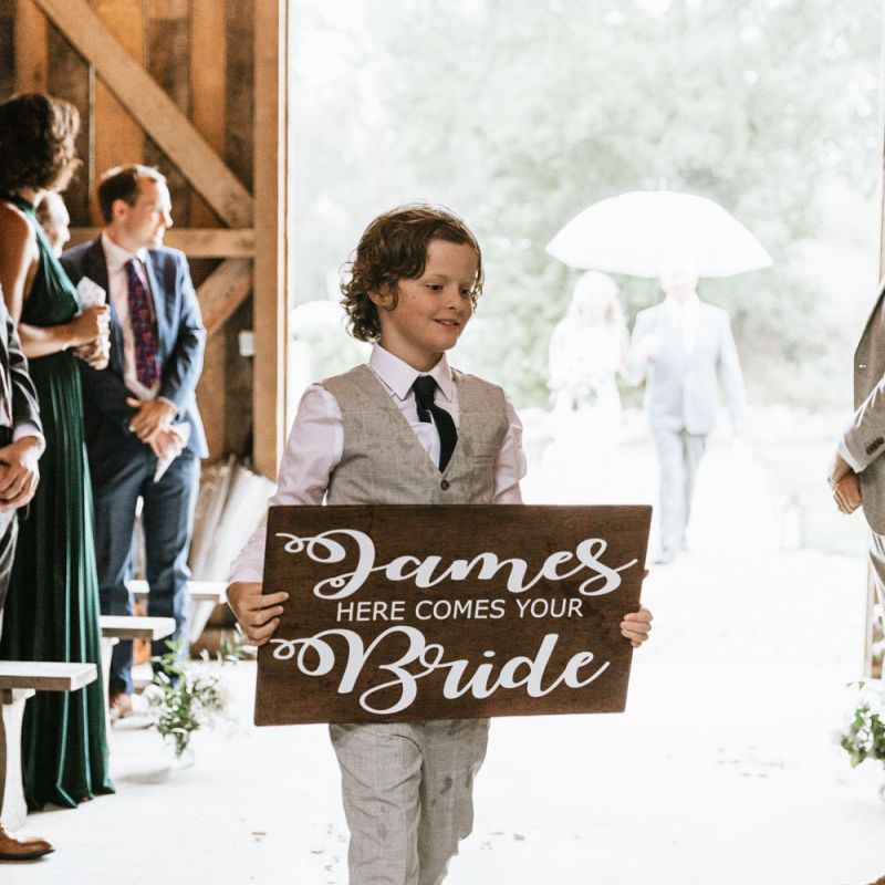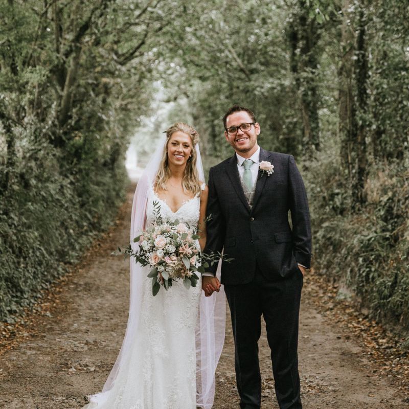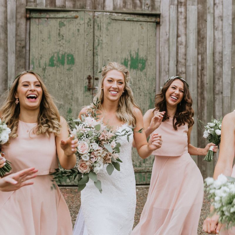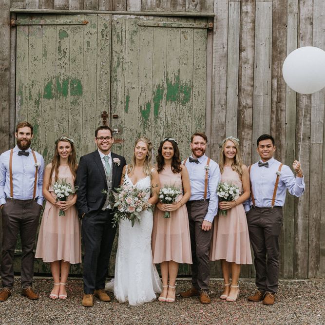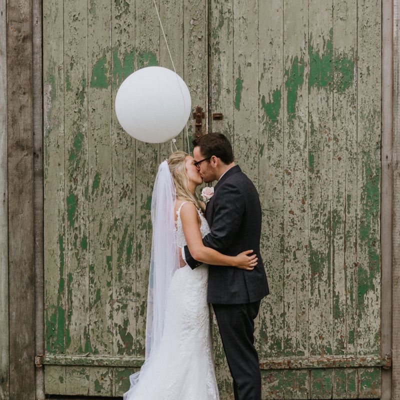 We wanted our wedding to be memorable and a bit different so we chose to have our ceremony in the Rusty Barn at Nancarrow Farm which was so natural and earthy but breathtakingly beautiful. It allowed the focus to be on love and the people there to celebrate with us which was so special. We loved that the food and drink was all locally sourced at the farm too. Having our miniature dachshund puppy as the ring bearer was also a highlight! We chose alternative outfits for the bride and grooms' parties and got creative with balloons, sparklers, s'mores, pic n' mix, macarons, bubbles and a handmade flower wall for the extra WOW factor!