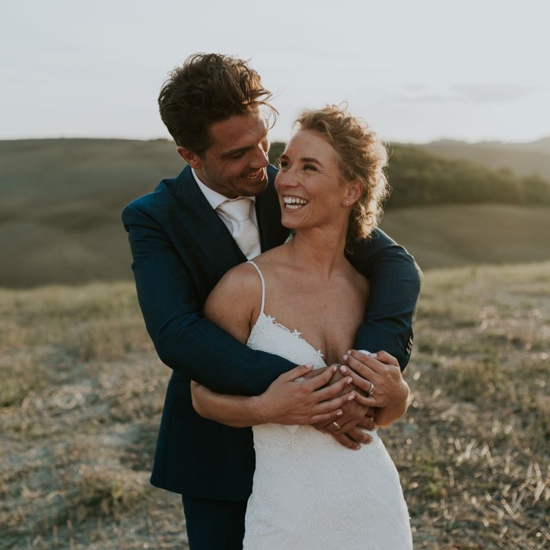 The day was unique because Milou & Danny are Dutch and they decided to celebrate in Tuscany with their closest family and friends. They love Italy, spent holidays when they were little there and also got engaged in Sardinia, Italy meant a lot to them. The wedding was blessed by a beautiful sunny and warm day, lots of great Italian food and wine. The day was unique because all the important people were there, during the ceremony the family had the chance to give speeches that were all emotional. Lights of happiness for the couple followed.