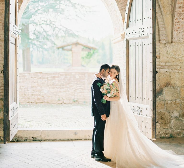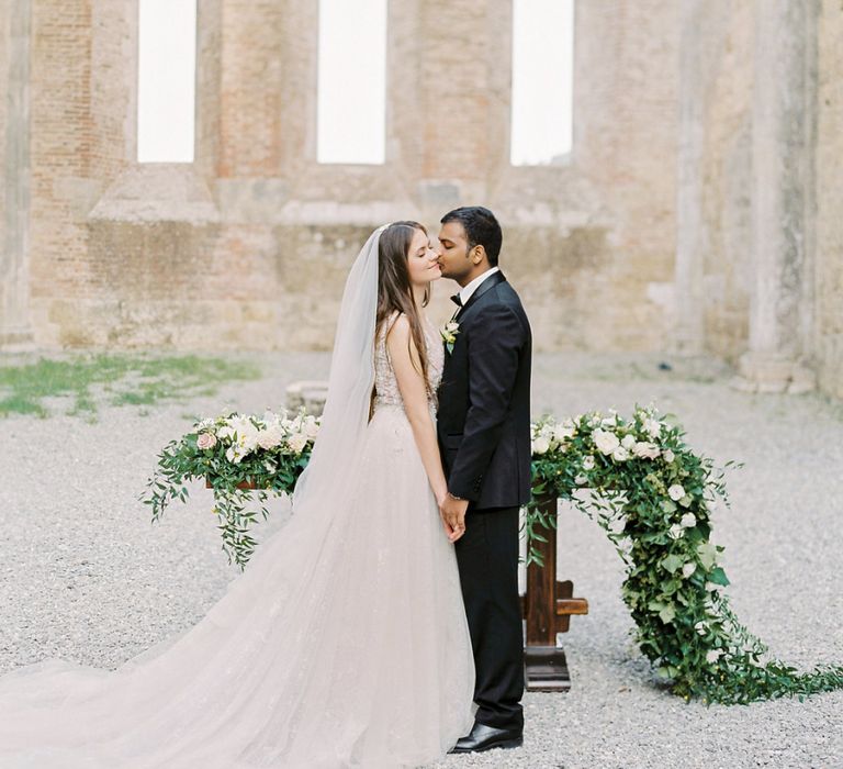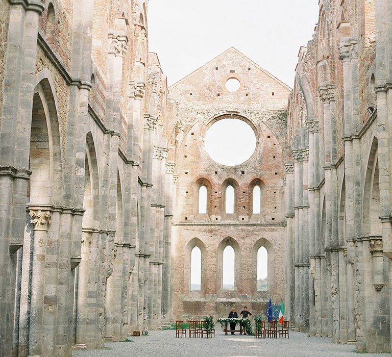 Intimate Tuscany Wedding at an Open Air Church with Black Tie Attire