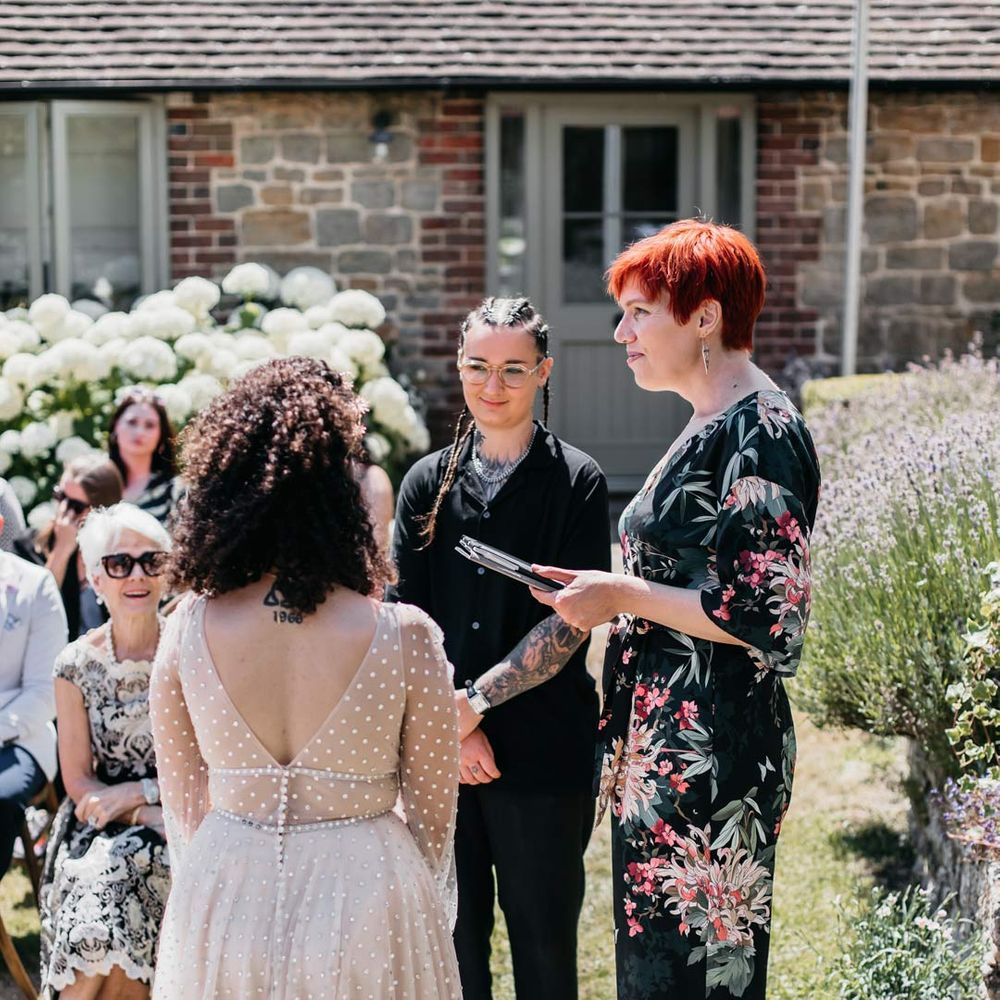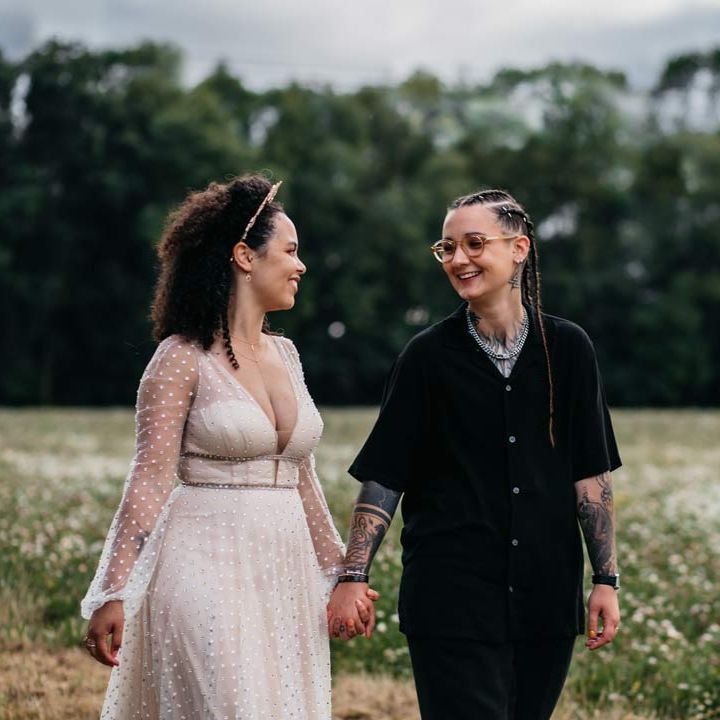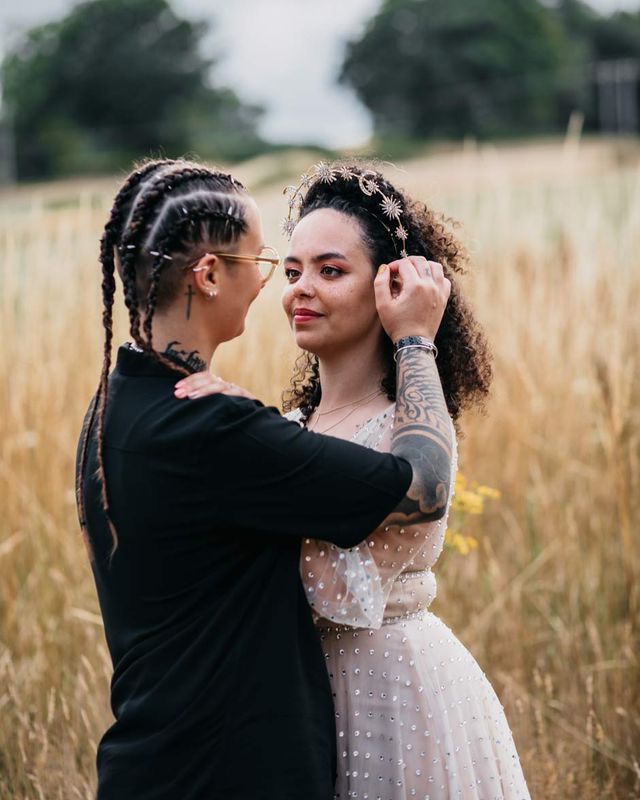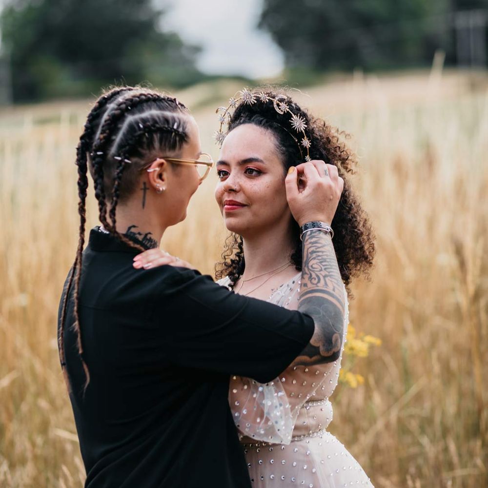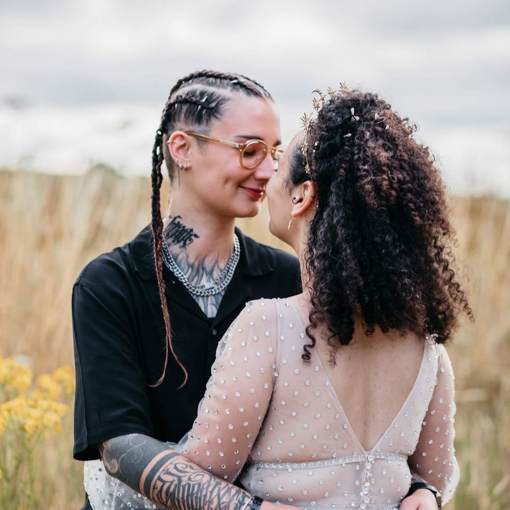 We had been planning our original wedding since 2018, then it was cancelled in 2020 due to Covid-19 and we finally had our Viking themed wedding celebration in 2022. Our hand-fasting ceremony was our favourite part of the day. This was the ultimate celebration of our love, as an interracial queer couple, with our loved ones witnessing our commitment and dedication to each other. The moment that meant everything to us was during the binding of the knots (where our hands are tied together and blessings given) two white butterflies landed on our hands. Both of us have lost important people in our lives and this was a beautiful moment that represented a lot to us. It was as if our loved ones were there with us.