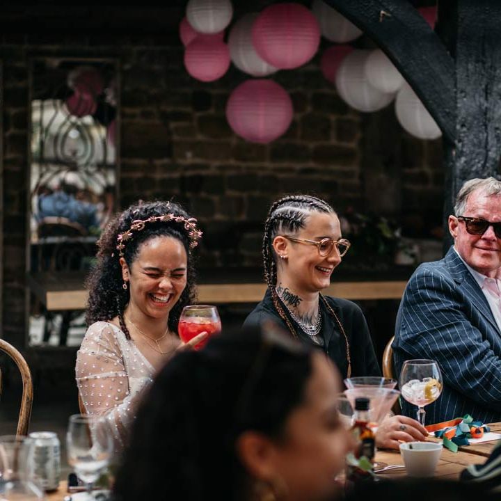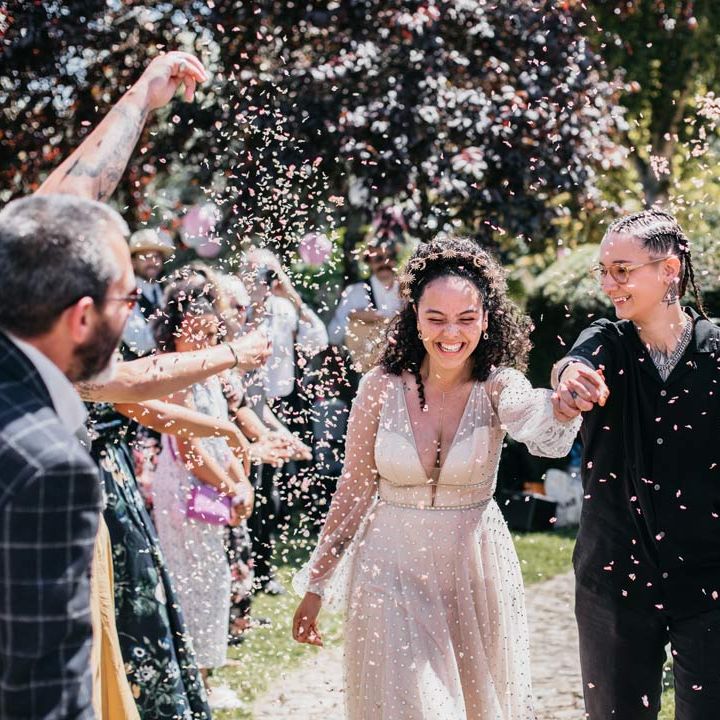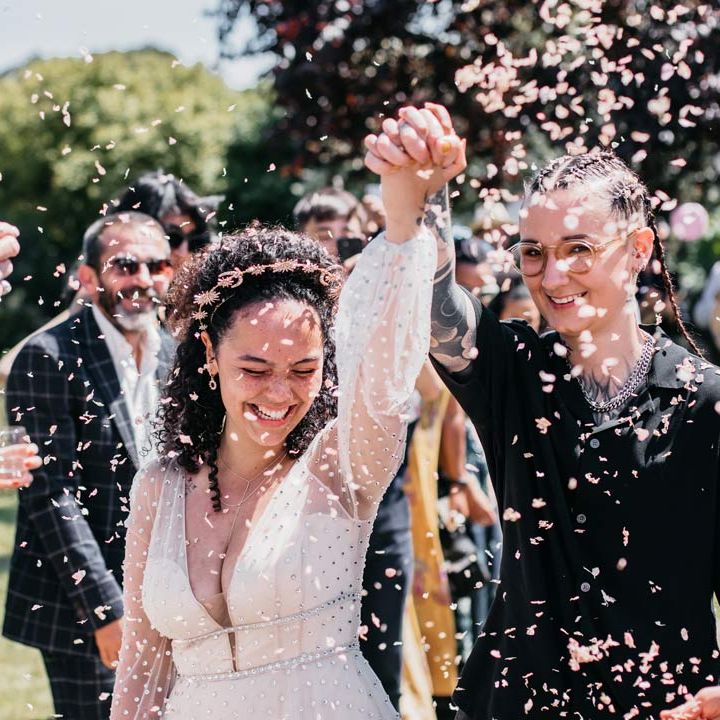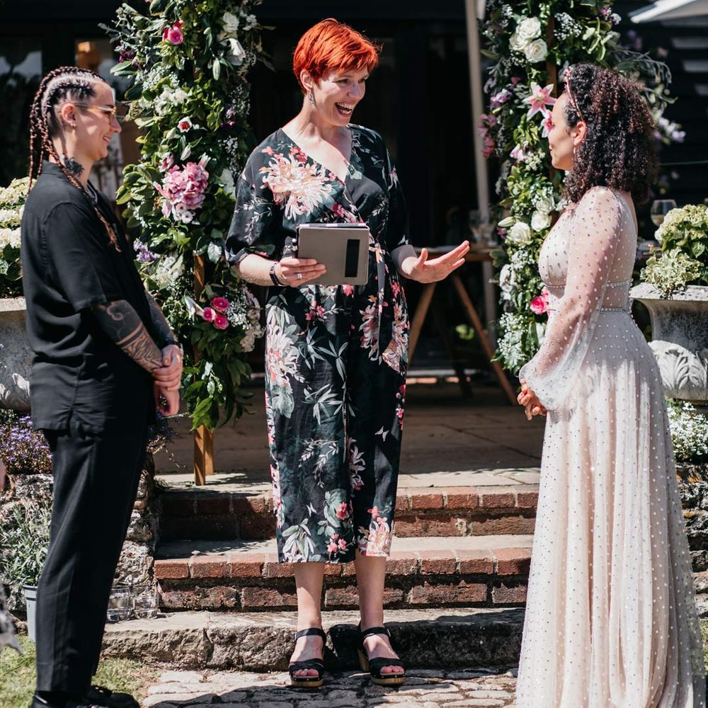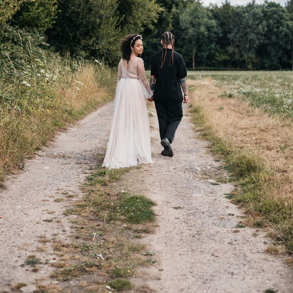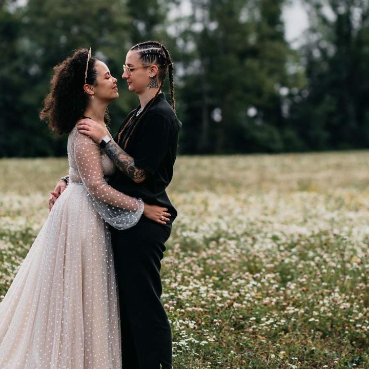 We had been planning our original wedding since 2018, then it was cancelled in 2020 due to Covid-19 and we finally had our Viking themed wedding celebration in 2022. Our hand-fasting ceremony was our favourite part of the day. This was the ultimate celebration of our love, as an interracial queer couple, with our loved ones witnessing our commitment and dedication to each other. The moment that meant everything to us was during the binding of the knots (where our hands are tied together and blessings given) two white butterflies landed on our hands. Both of us have lost important people in our lives and this was a beautiful moment that represented a lot to us. It was as if our loved ones were there with us.