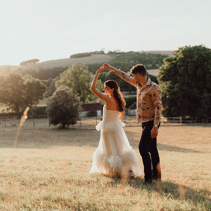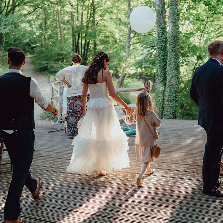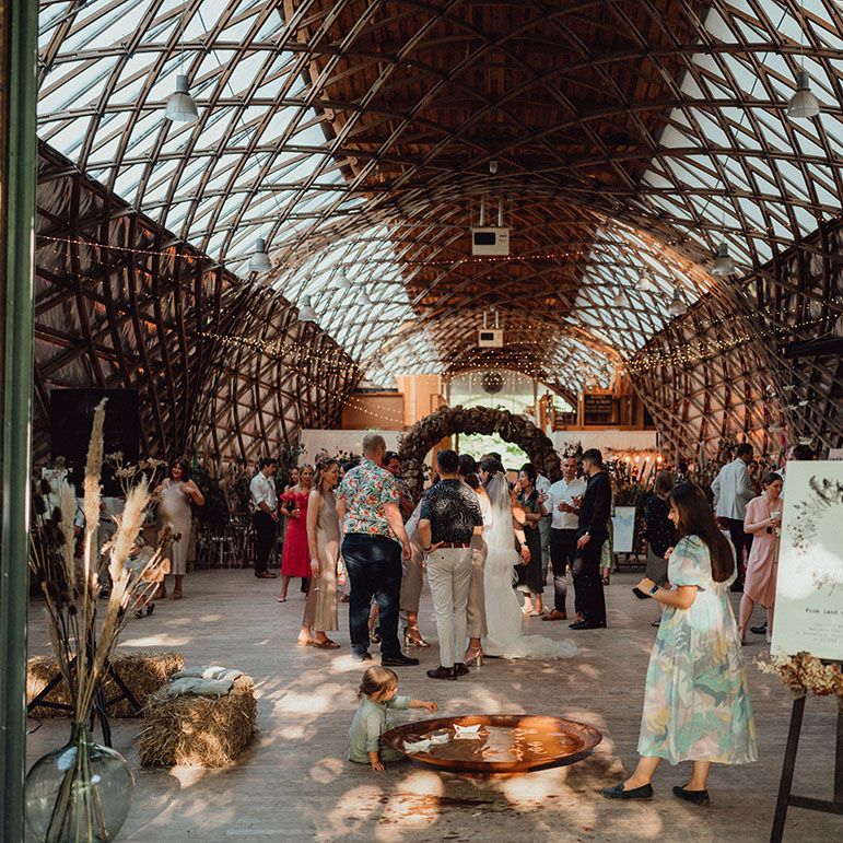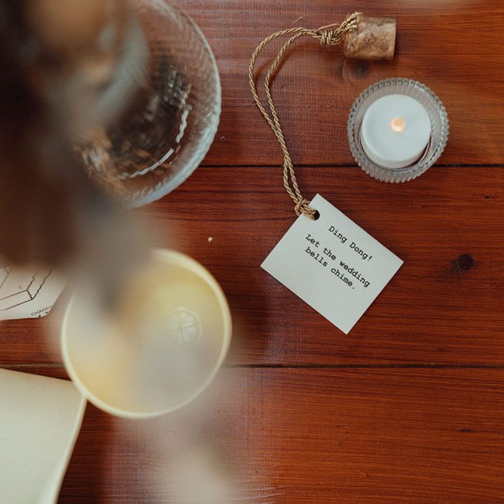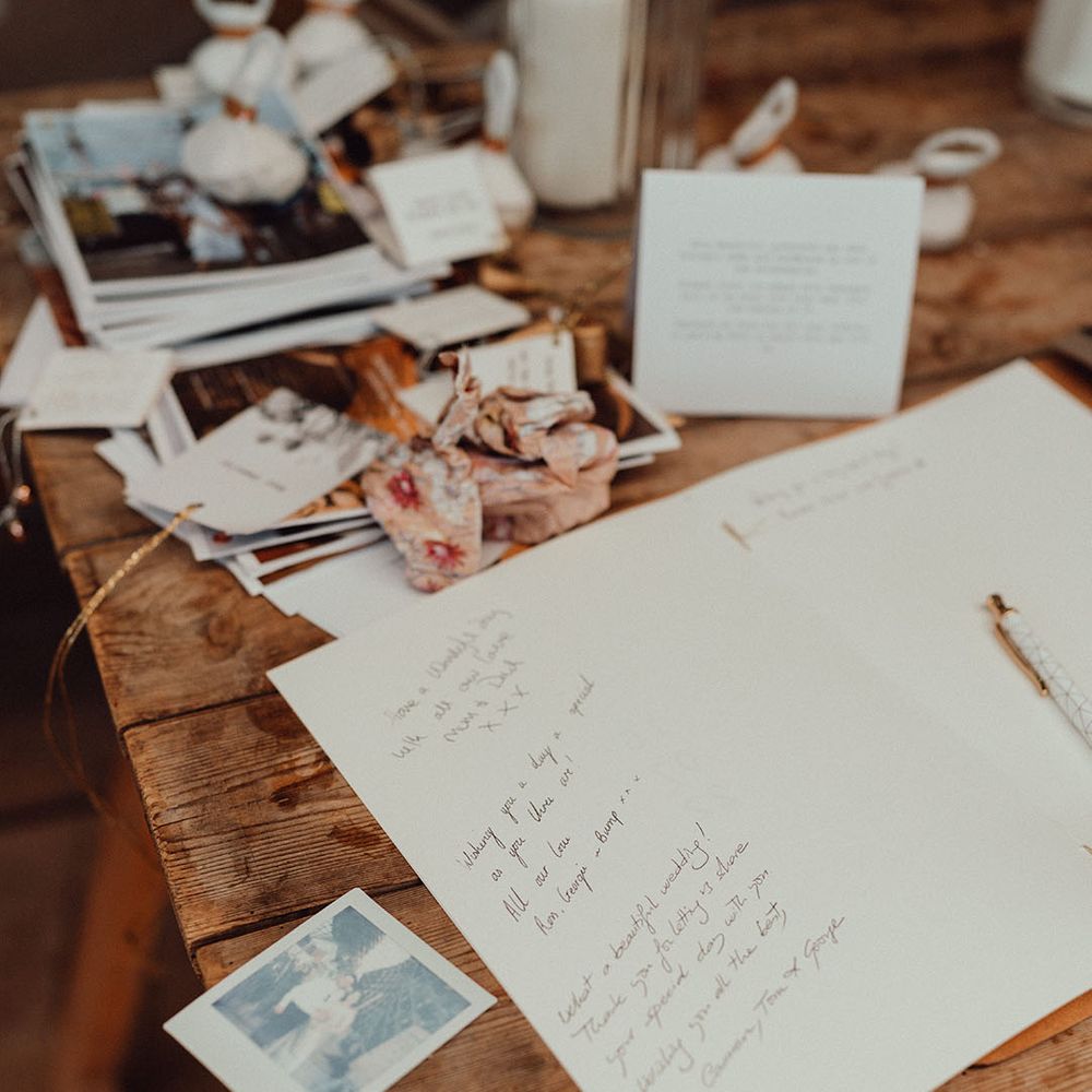 Our favourite moment has to be when the light started to go down and you could hear all the fun and laughter. The golden hour sun poured in and people were dancing, drinking and discovering little bits of the wedding that we had poured ourselves into. A friend of ours hand bound and designed the guest book, and people were snapping polaroids of themselves in animal masks that we had left for the kids. There was just such a sense of fun about it all.