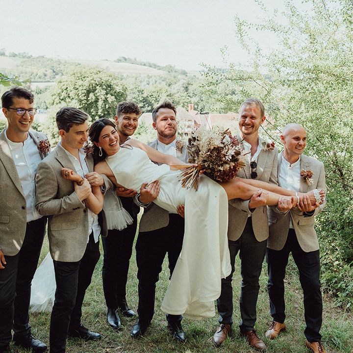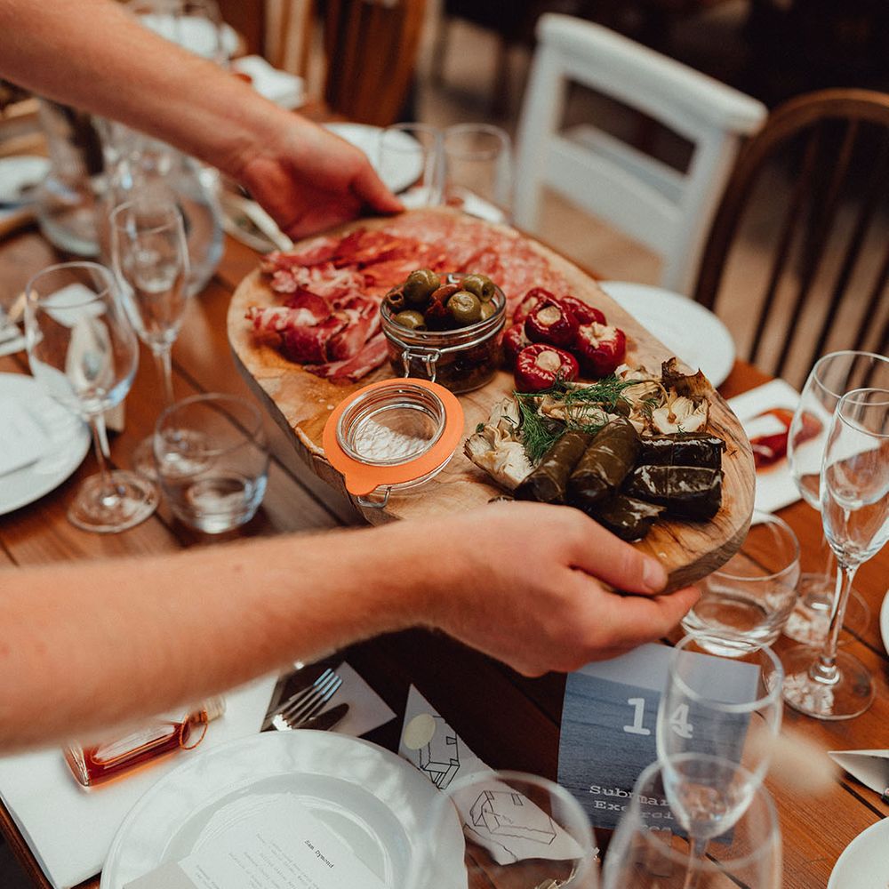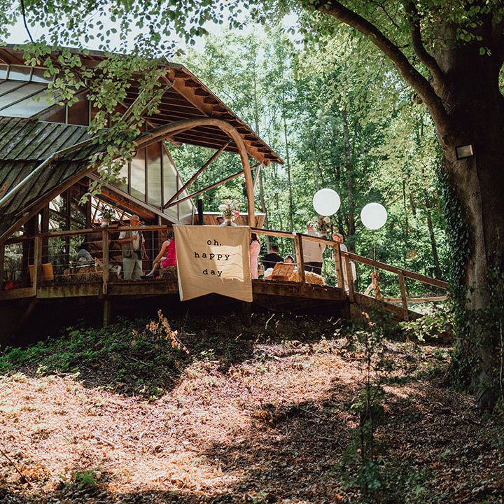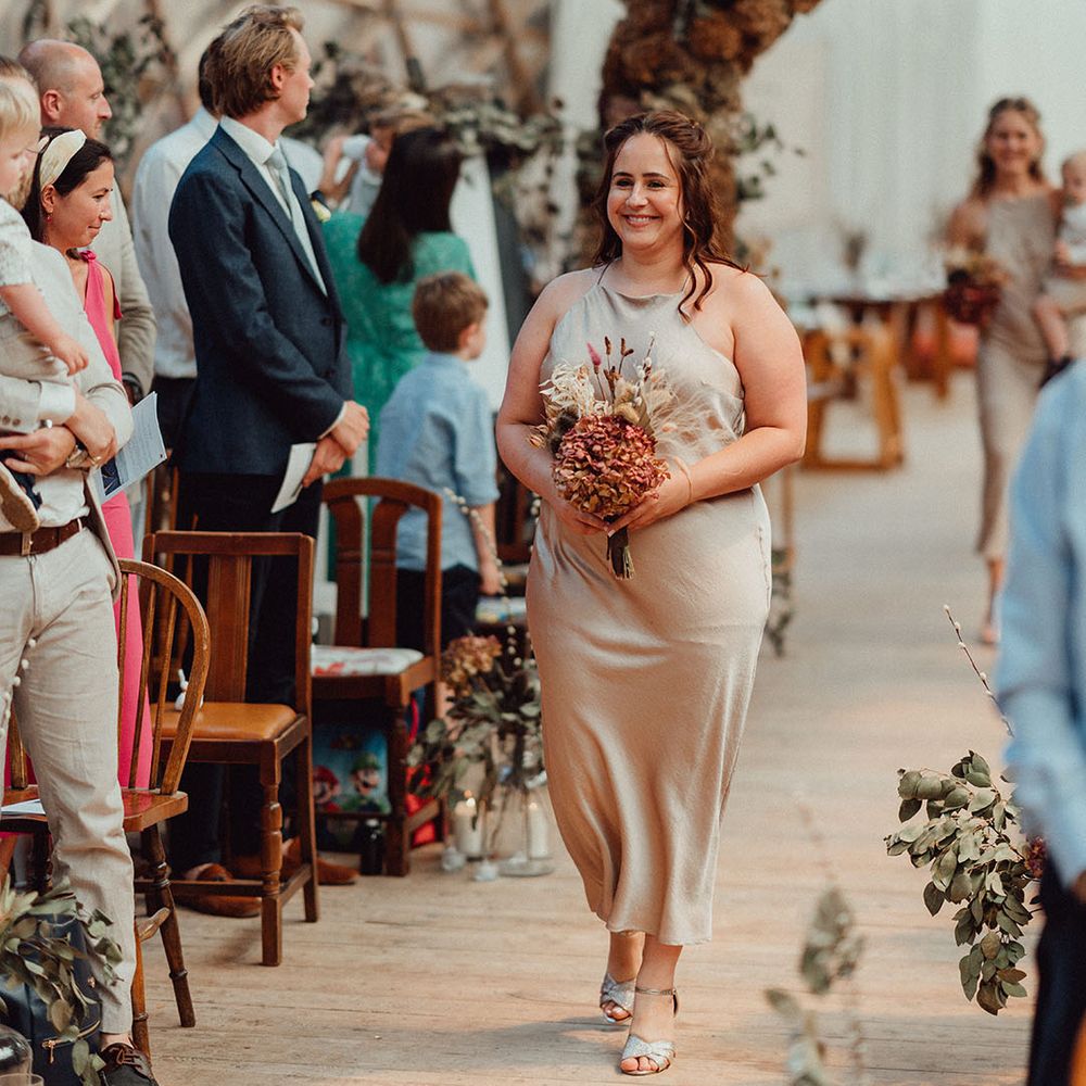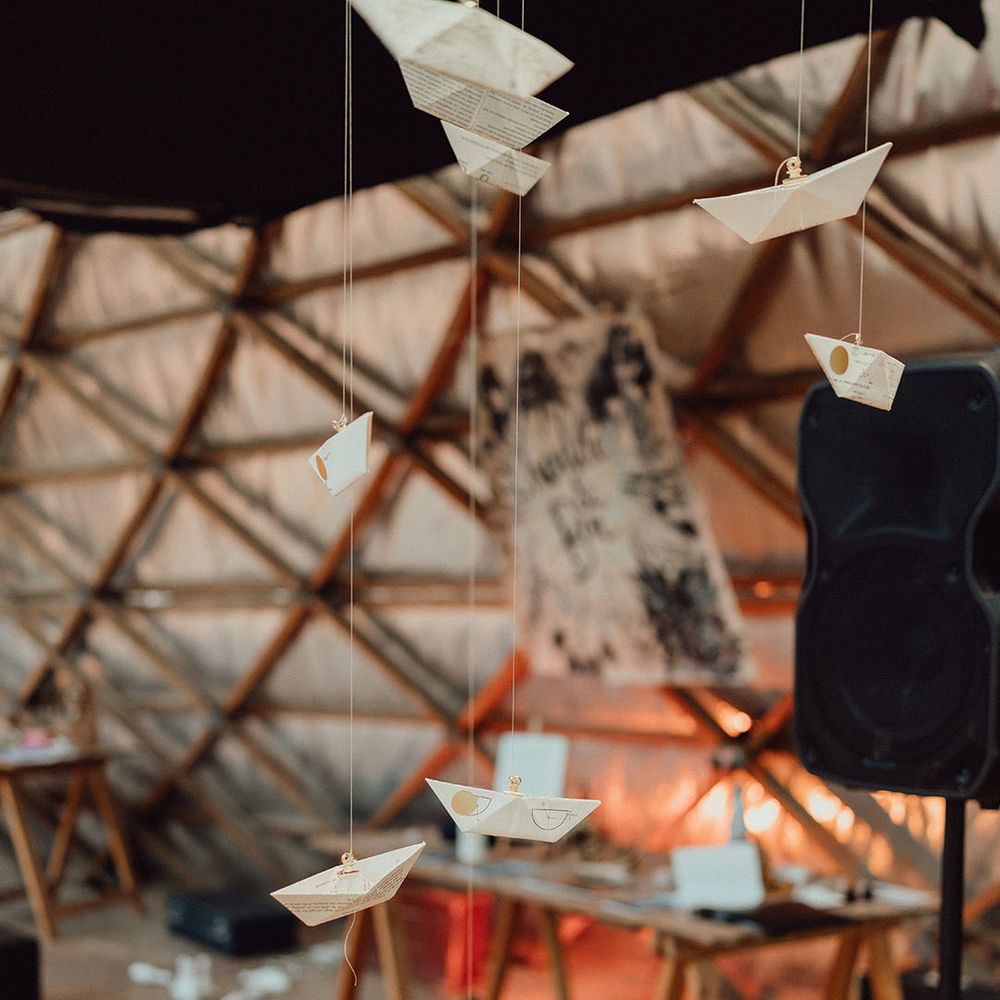 Our favourite moment has to be when the light started to go down and you could hear all the fun and laughter. The golden hour sun poured in and people were dancing, drinking and discovering little bits of the wedding that we had poured ourselves into. A friend of ours hand bound and designed the guest book, and people were snapping polaroids of themselves in animal masks that we had left for the kids. There was just such a sense of fun about it all.