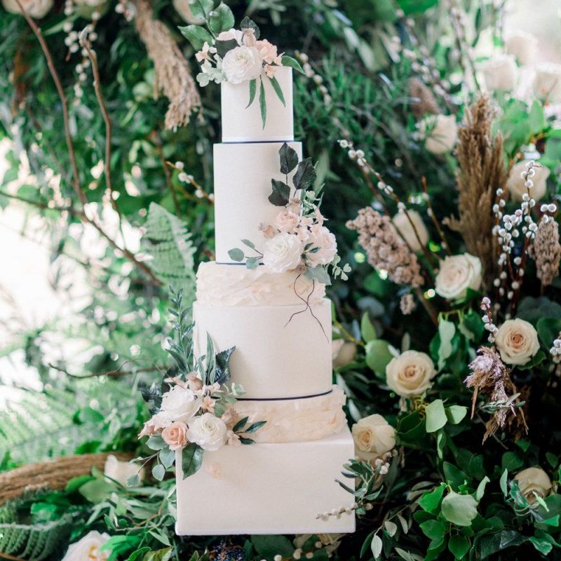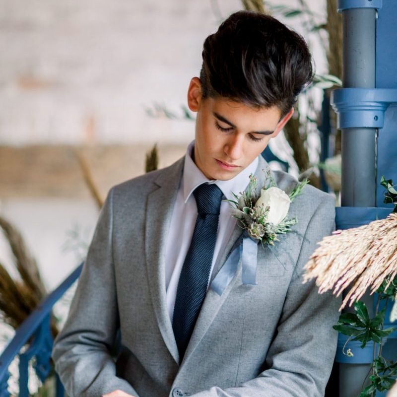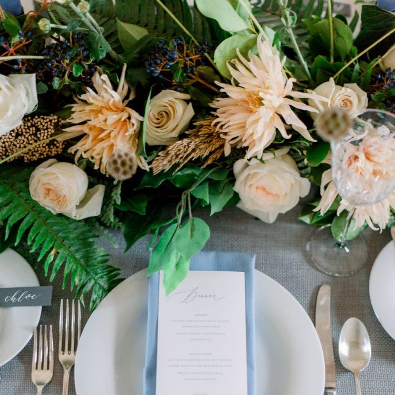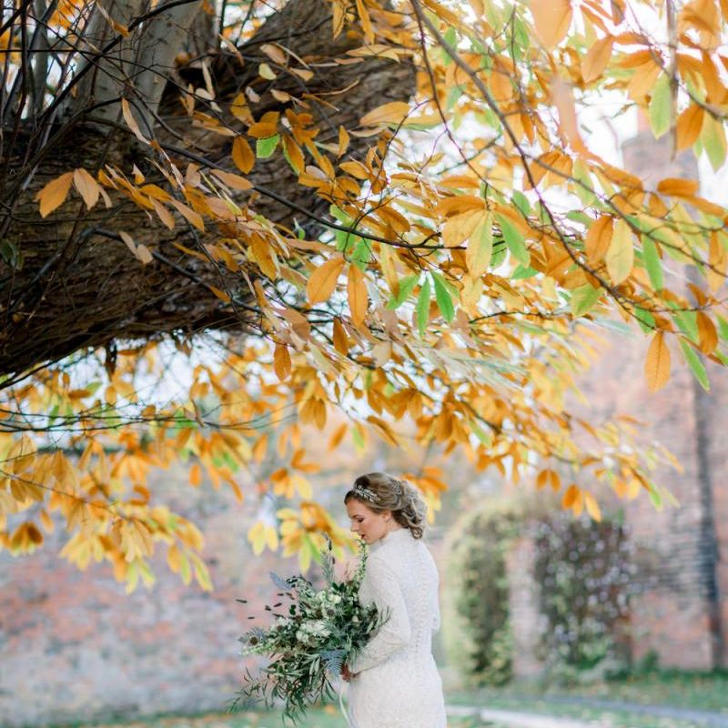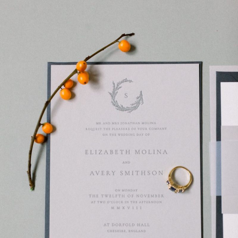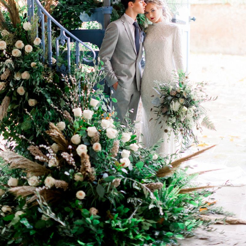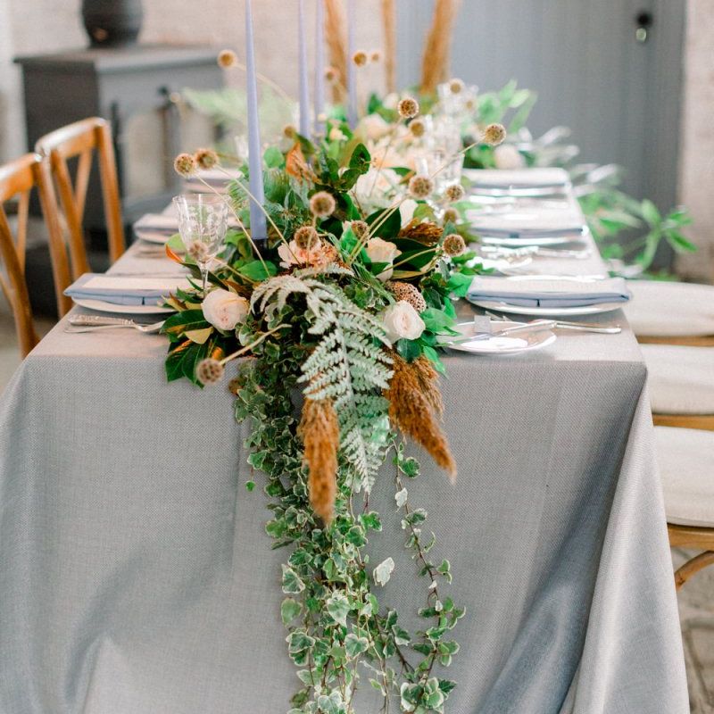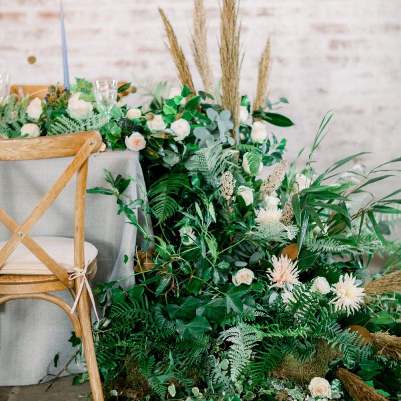 A group of talented wedding creatives headed for a beautiful styled shoot at the Cheshire wedding venue Dorfold Hall, a firm favourite among couples and suppliers alike. Capturing the magic and beauty that Winter has to offer was a major priority, and inspiration was taken from the beautiful shade of pale blue used on the Coach House doors and spiral staircase. This formed the basis for the cool colour palette, blues, greens, whites and pops of pale peach were used in the flowers, table set up and cake.
