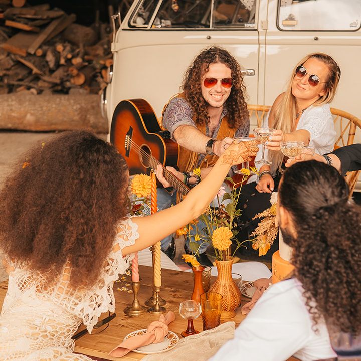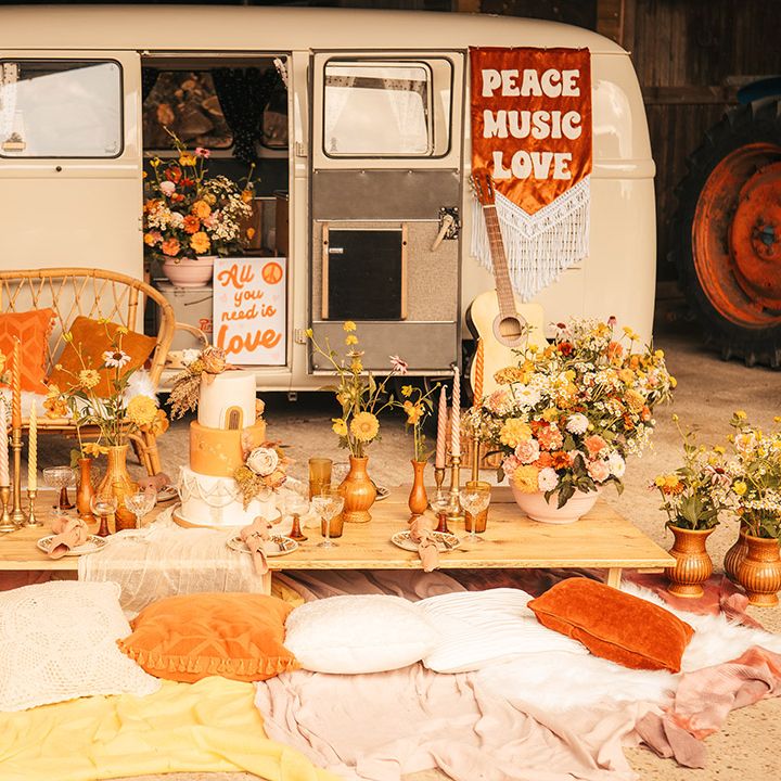 I studied a lot of the original Woodstock photos for inspiration and decided on three key scenes. We put each scene together with sustainability and authenticity in mind.
