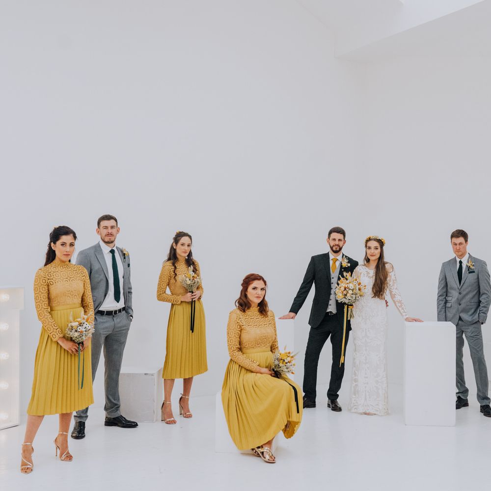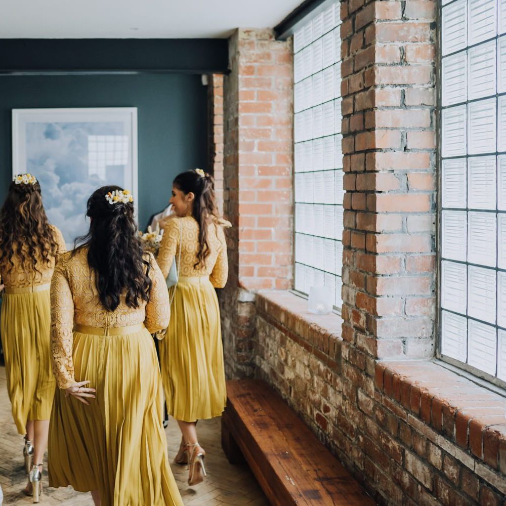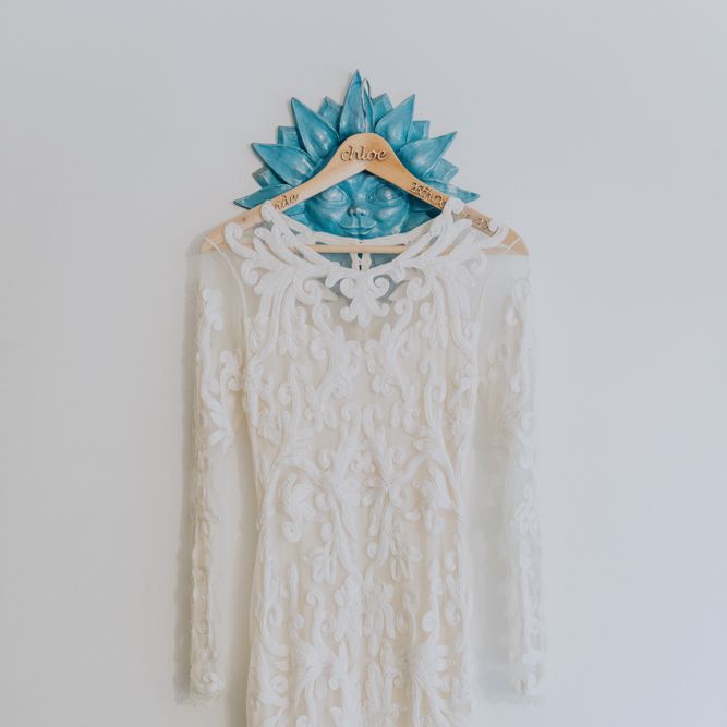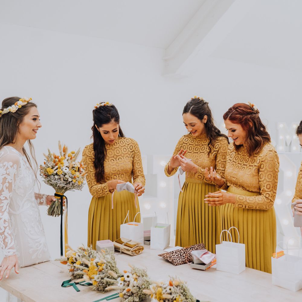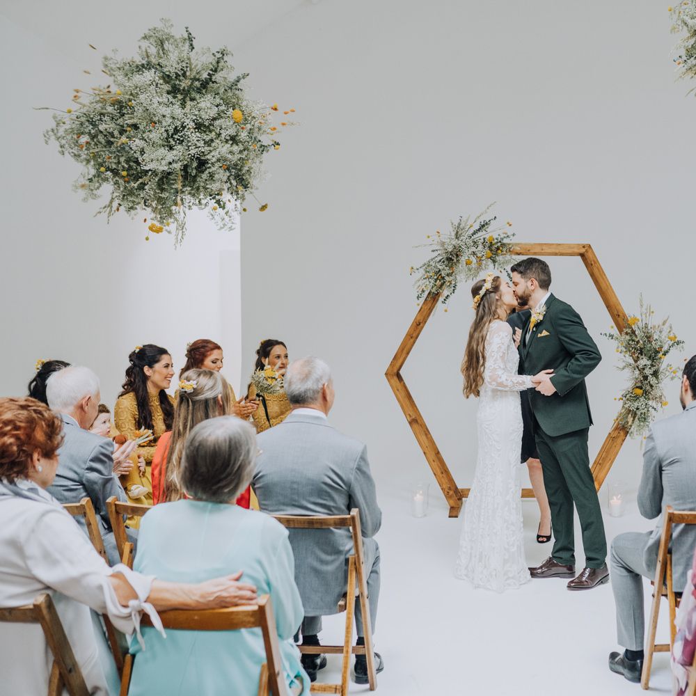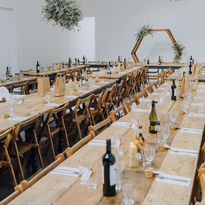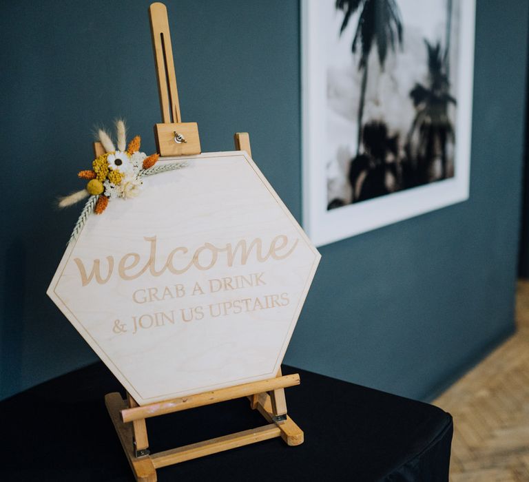 We wanted to create a personal, autumnal themed, eco-conscious wedding day. The honeybee theme naturally crept in as Chloe is a beekeeper and it really matched the earthy, organic aesthetic. Honey bottled in recycled jars as favours, doubled up as guest place-names thanks to a talented bridesmaids' calligraphy skills! We chose to stay local so that as many friends and family as possible could attend to celebrate and party with us. The DIY approach was something we were really looking forward to, as we are both very creative and practical people. We are also lucky enough to have an abundance of family & friends who wanted to chip in and help us, in any way possible.