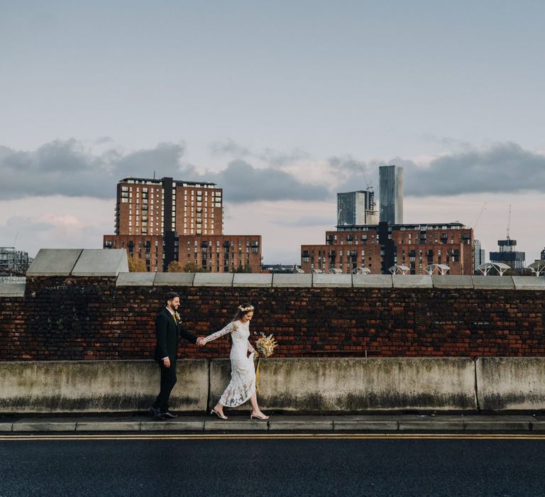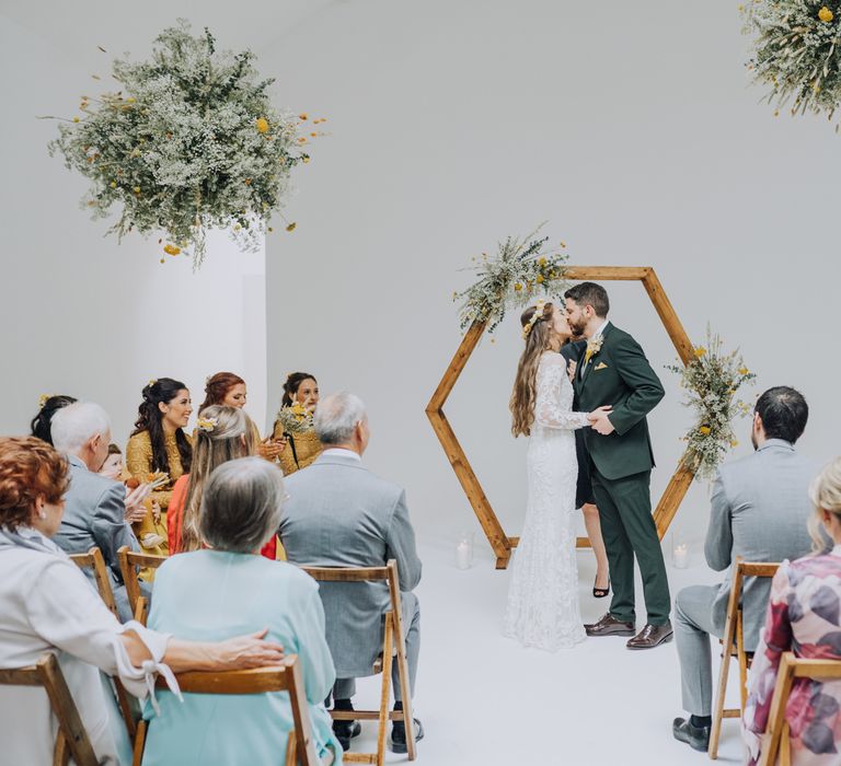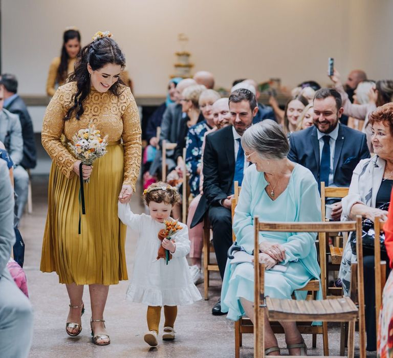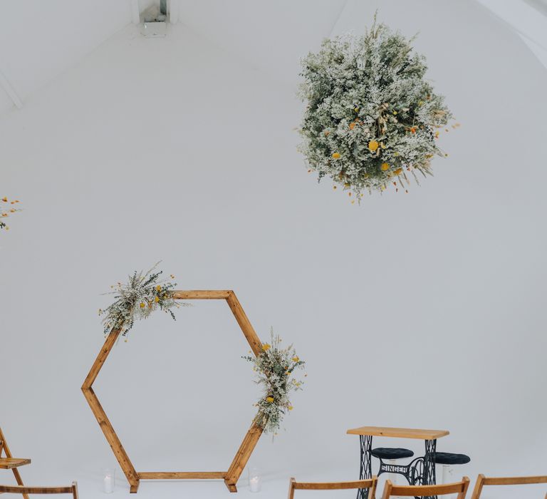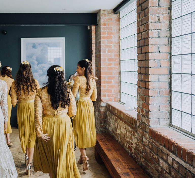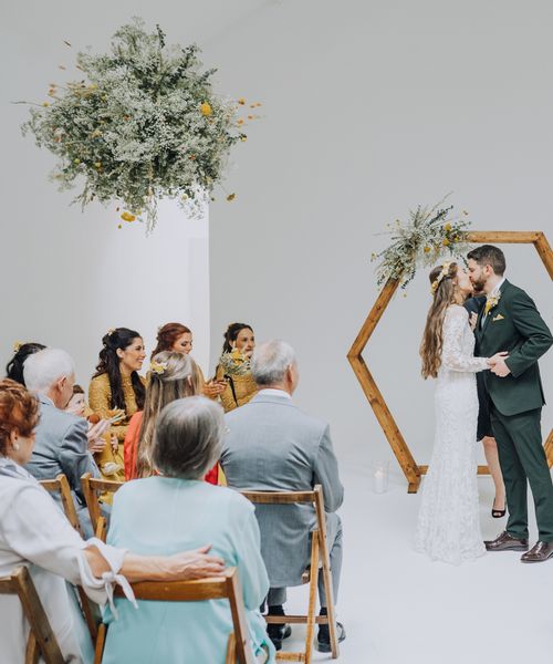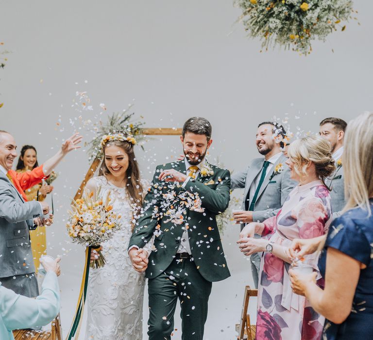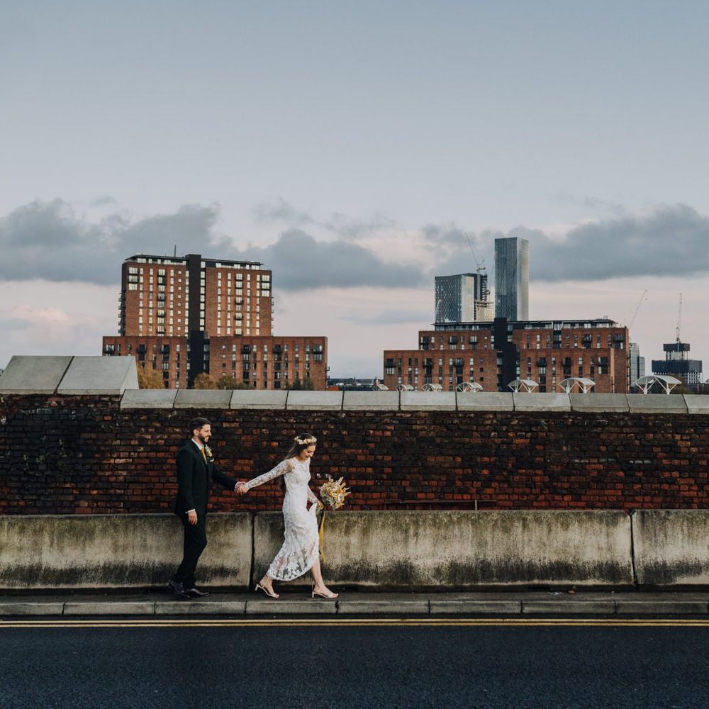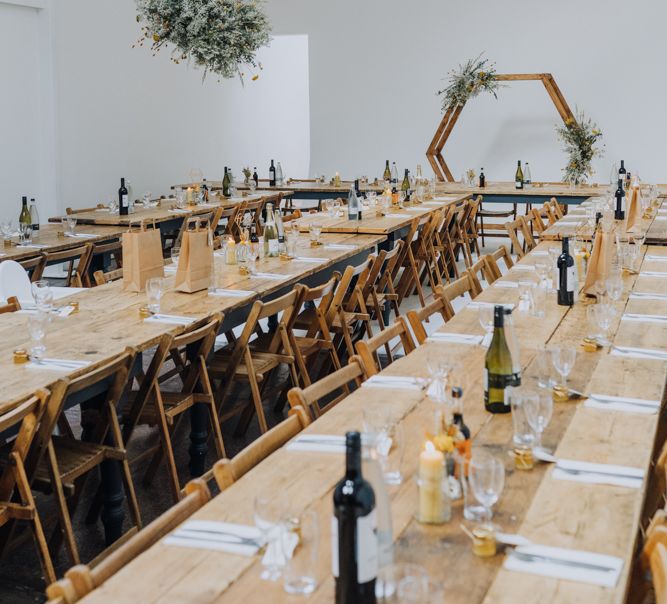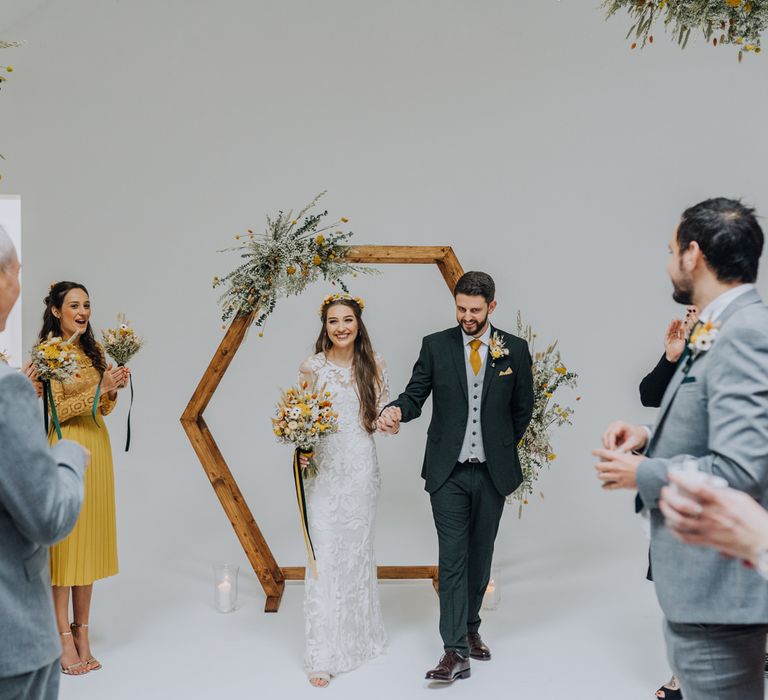 We wanted to create a personal, autumnal themed, eco-conscious wedding day. The honeybee theme naturally crept in as Chloe is a beekeeper and it really matched the earthy, organic aesthetic. Honey bottled in recycled jars as favours, doubled up as guest place-names thanks to a talented bridesmaids' calligraphy skills! We chose to stay local so that as many friends and family as possible could attend to celebrate and party with us. The DIY approach was something we were really looking forward to, as we are both very creative and practical people. We are also lucky enough to have an abundance of family & friends who wanted to chip in and help us, in any way possible.