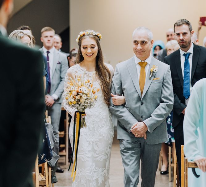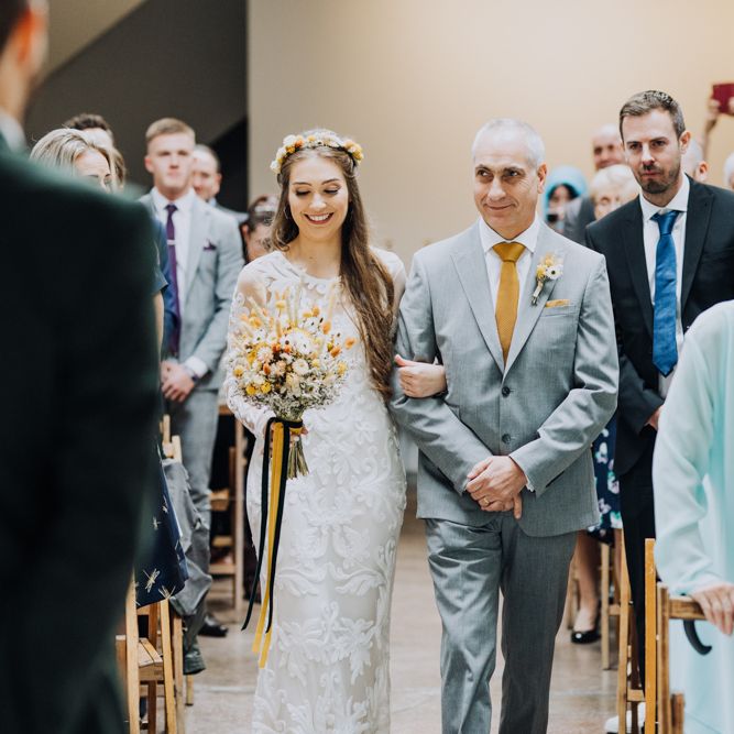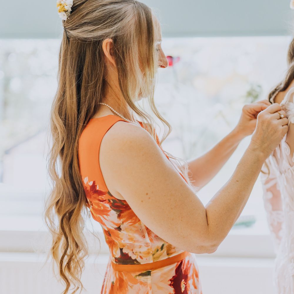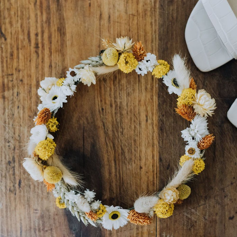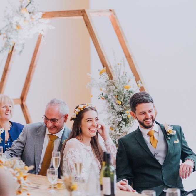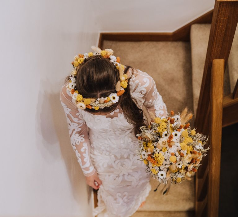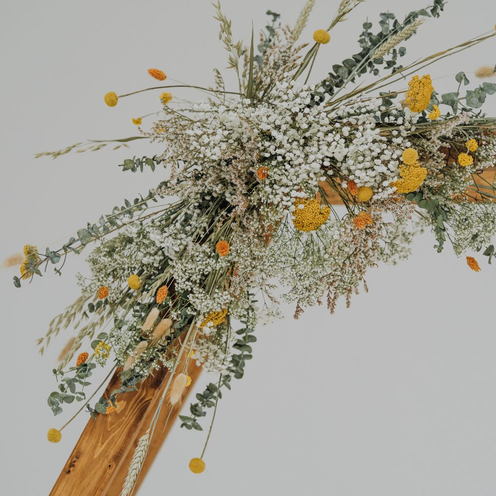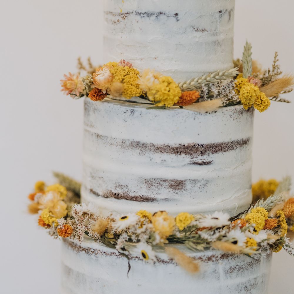 All the preparation and hard work coming together to make our perfect day. What made our wedding unique was how much we took on ourselves. You can plan all the individual little touches, but it’s only on the day when you see it all come together, it gives you the biggest sense of achievement. We probably broke every rule in the floristry book (florists look away now!) but we set out to make 7 bouquets, a bridal crown, 6 hair pieces, 2 flower girl crowns, 7 buttonholes, 2 lapel corsages, 4 cake wreaths and 12 table decoration jars. Using dried flowers enabled us to prepare these in the months prior to the wedding, although it meant a lot of late nights after work!