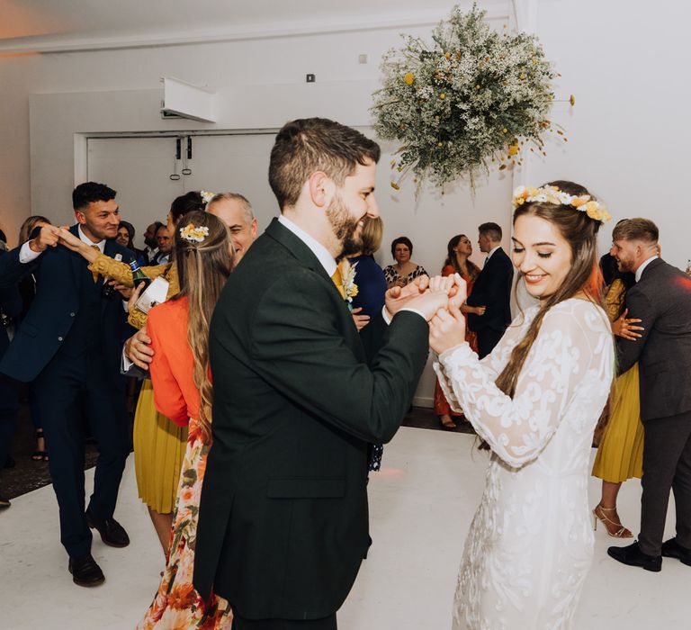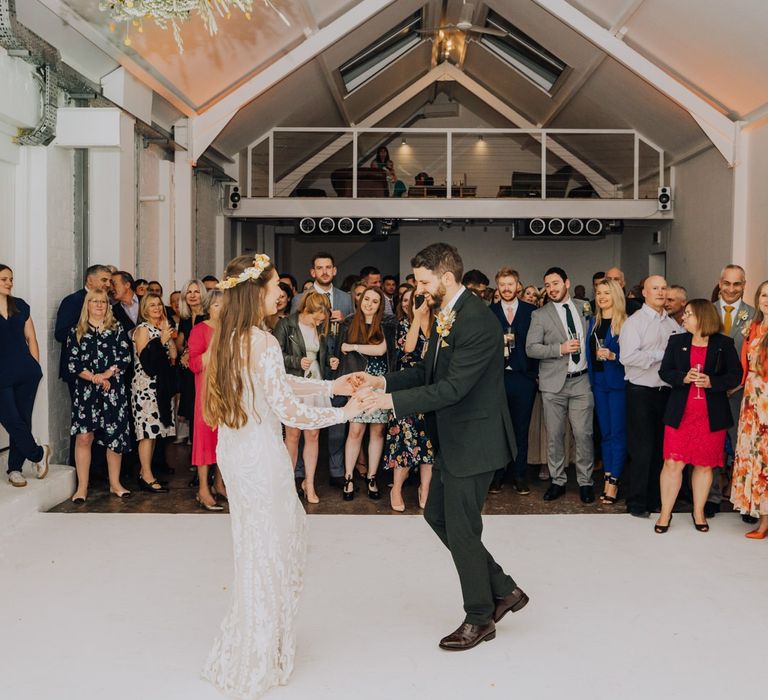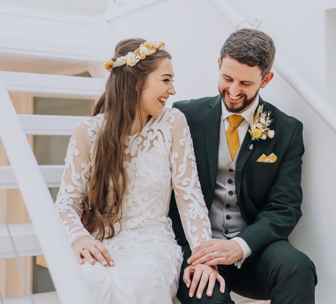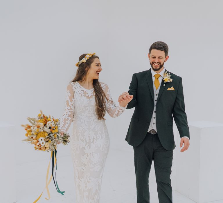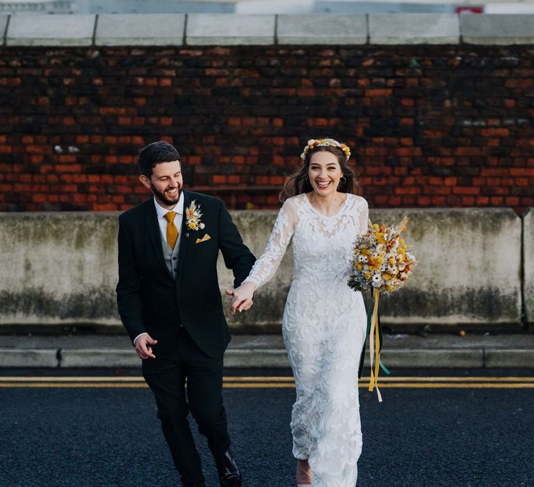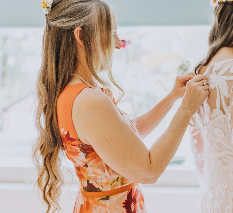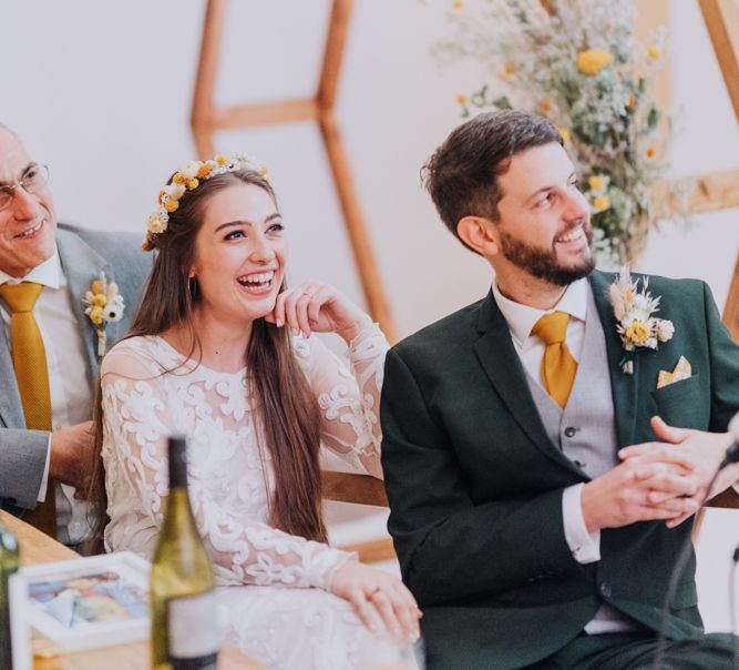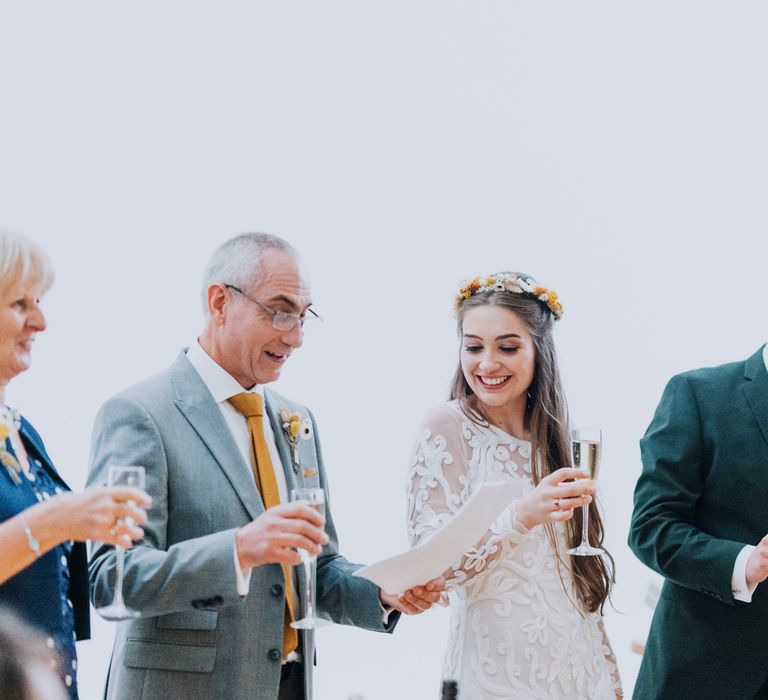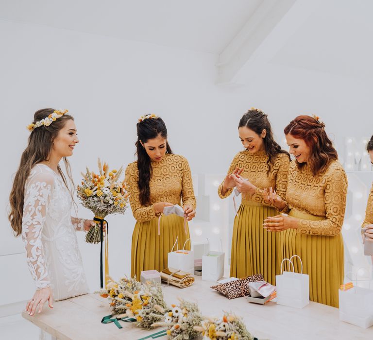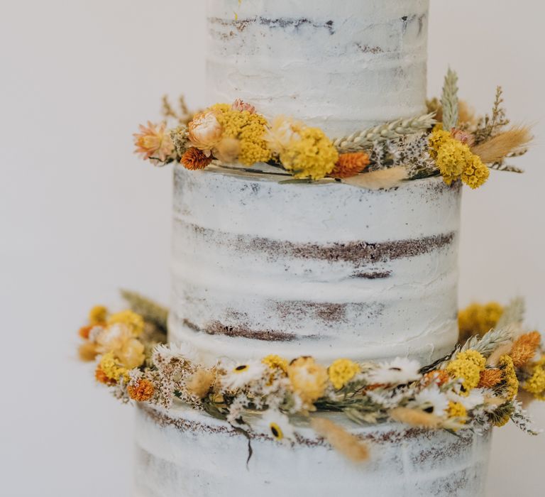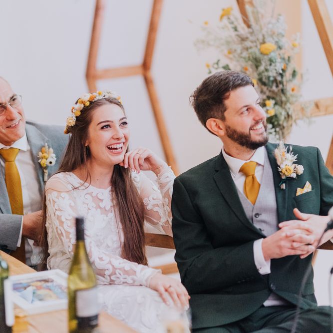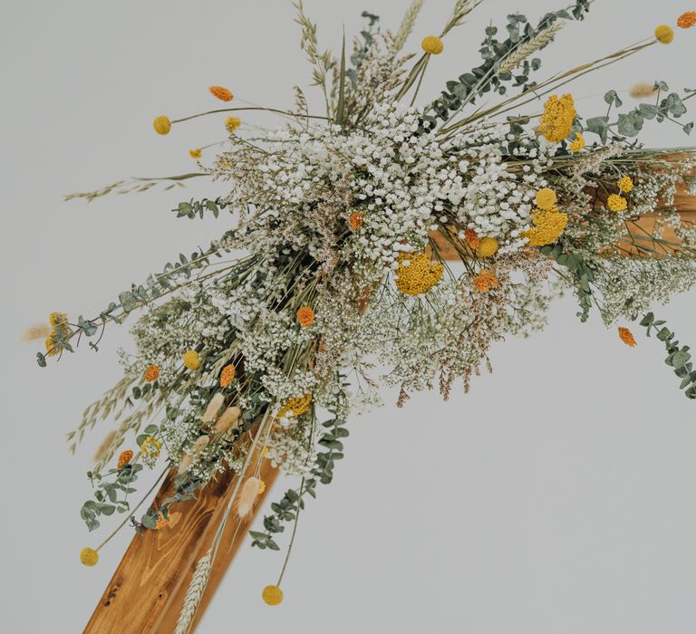 All the preparation and hard work coming together to make our perfect day. What made our wedding unique was how much we took on ourselves. You can plan all the individual little touches, but it’s only on the day when you see it all come together, it gives you the biggest sense of achievement. We probably broke every rule in the floristry book (florists look away now!) but we set out to make 7 bouquets, a bridal crown, 6 hair pieces, 2 flower girl crowns, 7 buttonholes, 2 lapel corsages, 4 cake wreaths and 12 table decoration jars. Using dried flowers enabled us to prepare these in the months prior to the wedding, although it meant a lot of late nights after work!