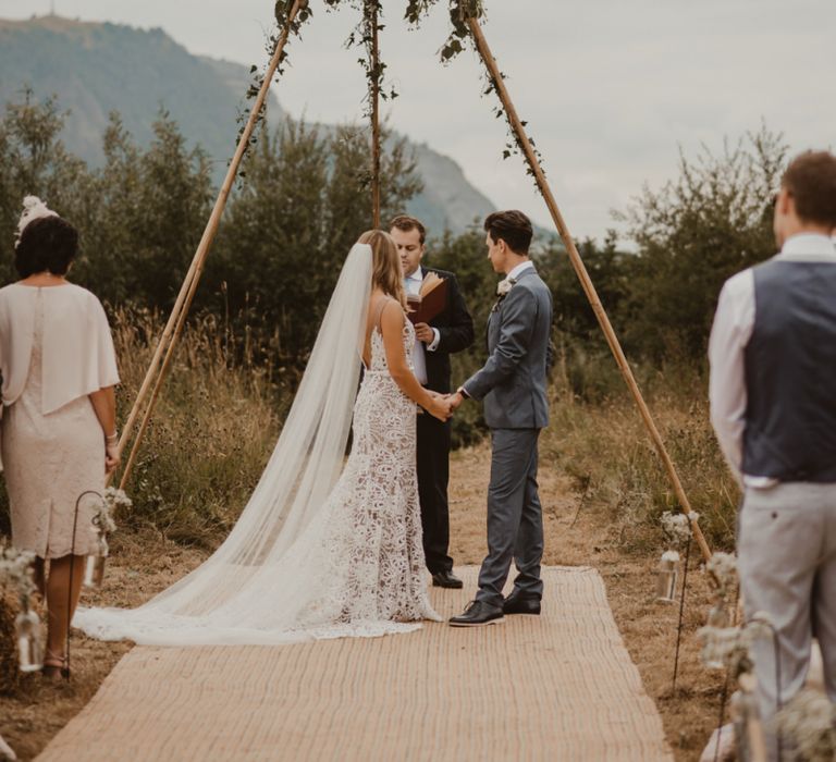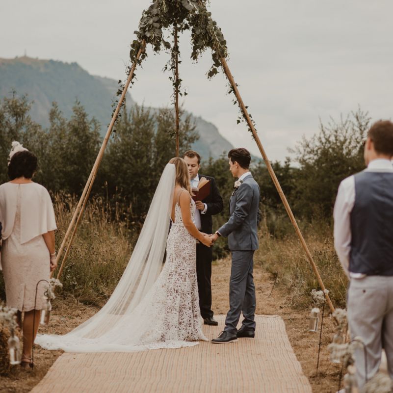 We were living abroad at the time of our wedding so had a big decision to make: hold the wedding in Asia with its guaranteed sun, or head back home to the more unpredictable Welsh weather. The influencing factor in the end was Seb’s family home, Sychpwll, a venue that holds a limited number of weddings and events each year. It’s a big site, full of wildlife and fantastic views, and we were free to design everything exactly as we wanted and choose the suppliers that we liked the look of. We also wanted to have a BBQ and party the next day, so having the space for people to stay on site was ideal for us.