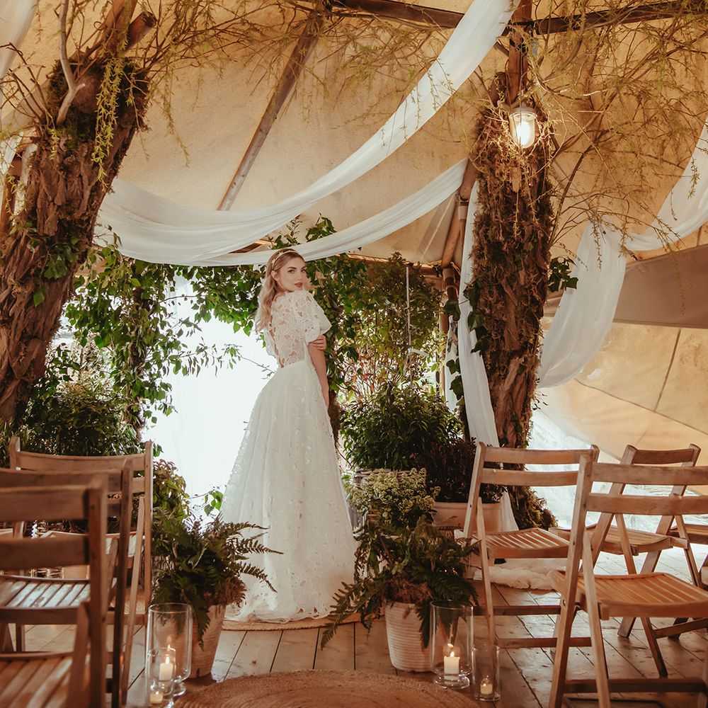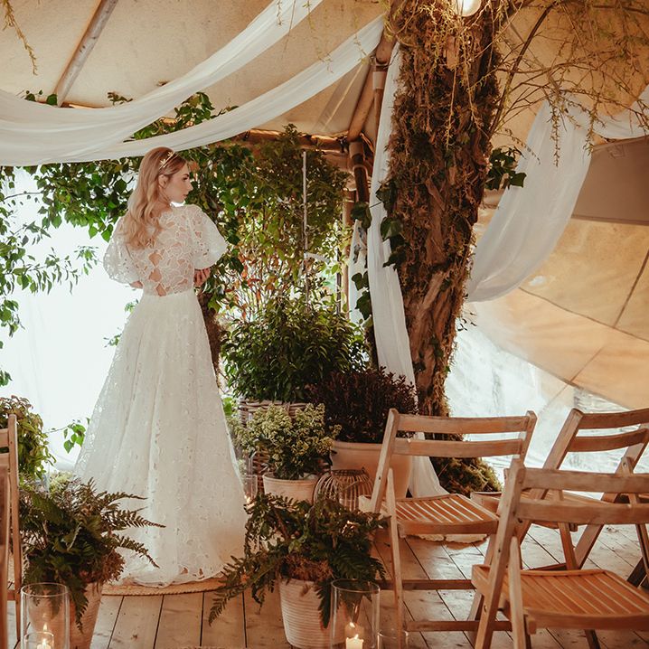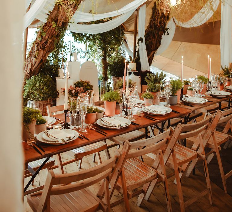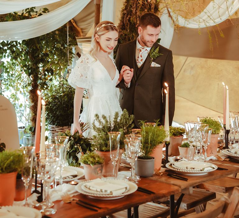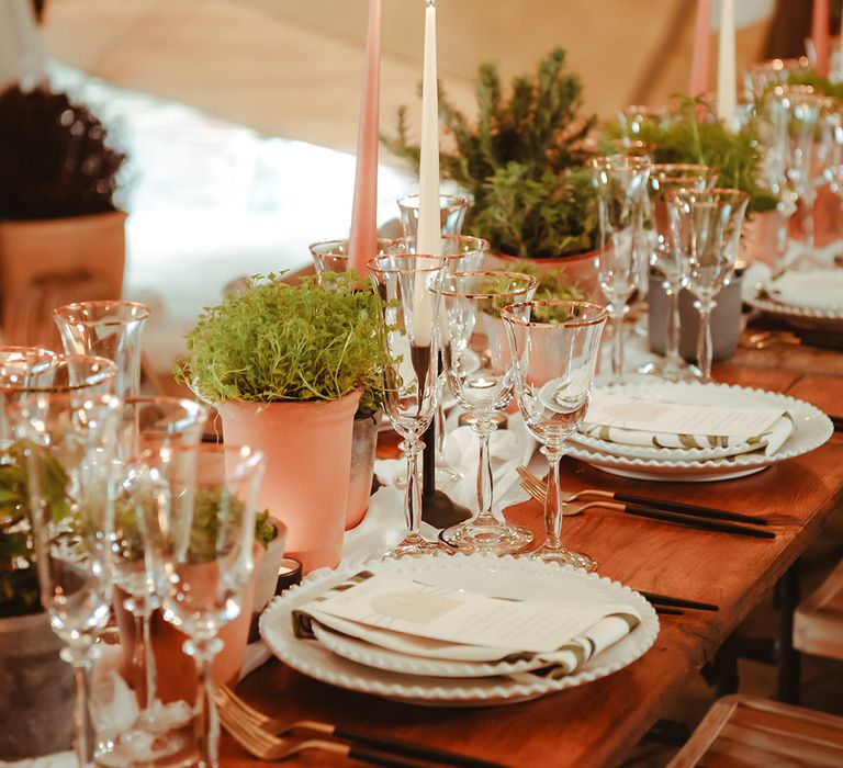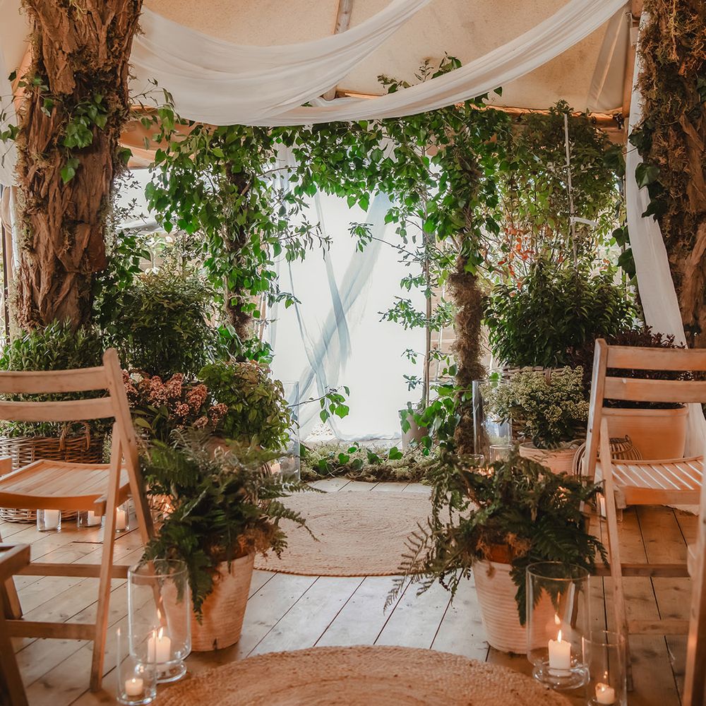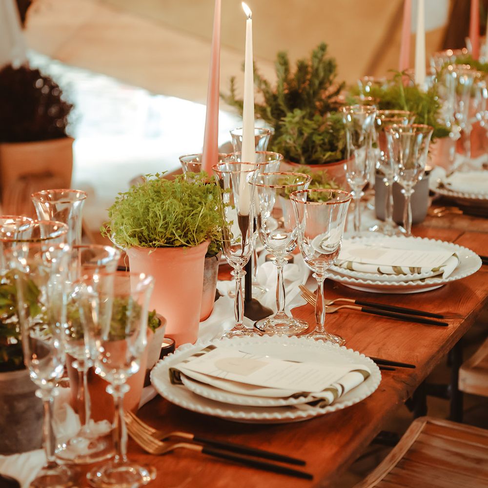 The plants and planters were all returned to their original homes outside the tipi, and in the polytunnels, like we'd never been there. All crockery, cutlery, glassware, candle holders, plinths, draping etc were all hire items, returned to their owners to be washed and used again. Plus, all suppliers involved in this shoot were locally based, to reduce fuel consumption.