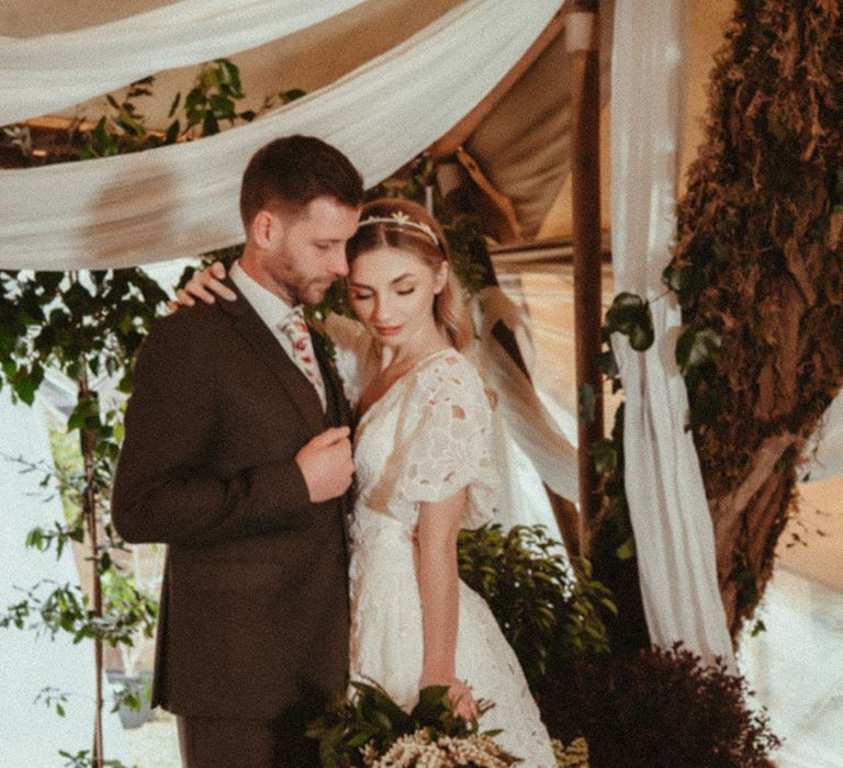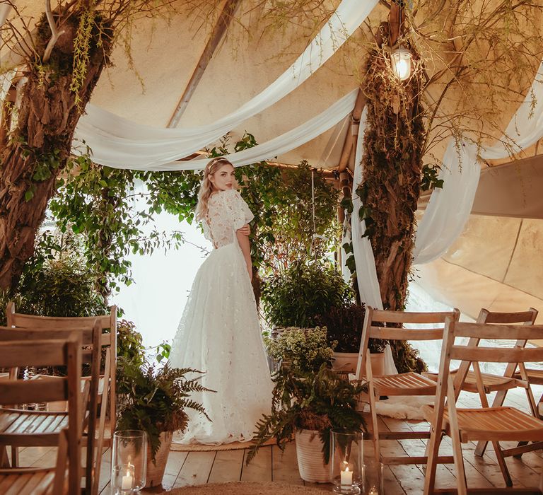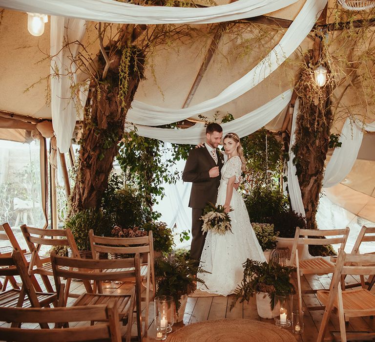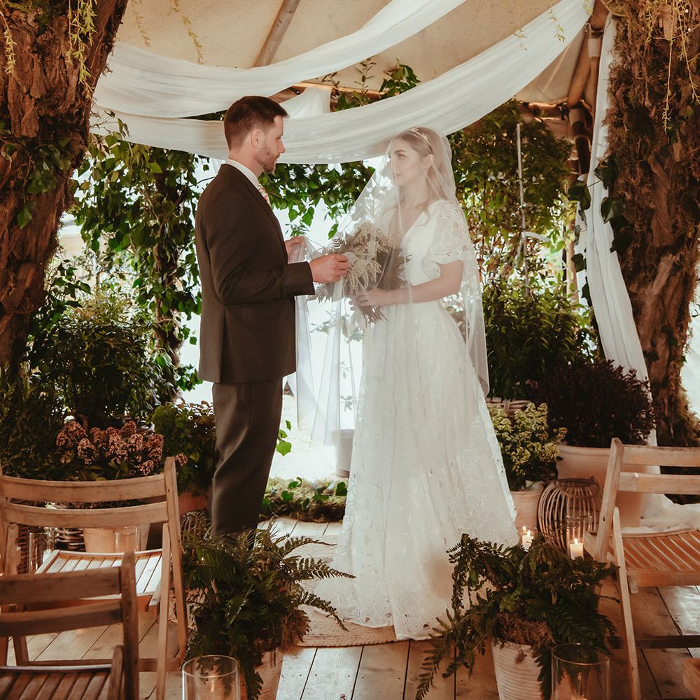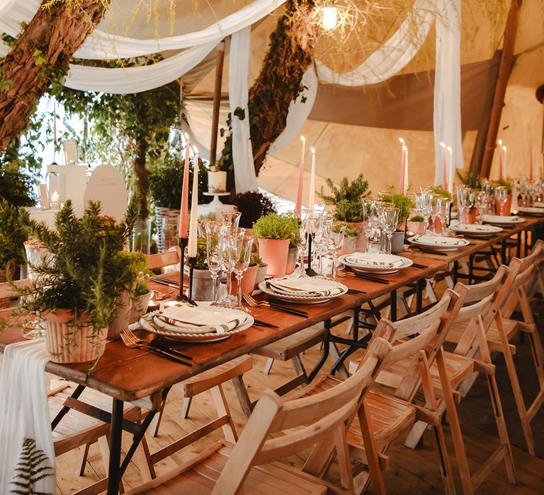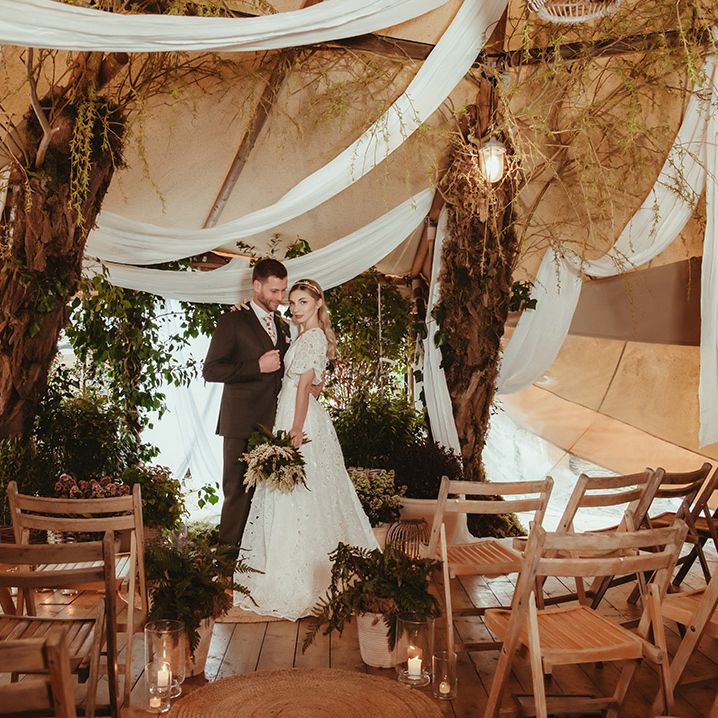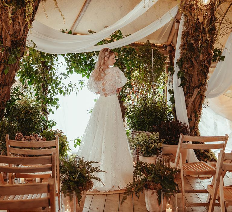 The plants and planters were all returned to their original homes outside the tipi, and in the polytunnels, like we'd never been there. All crockery, cutlery, glassware, candle holders, plinths, draping etc were all hire items, returned to their owners to be washed and used again. Plus, all suppliers involved in this shoot were locally based, to reduce fuel consumption.