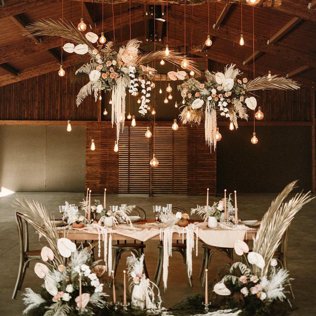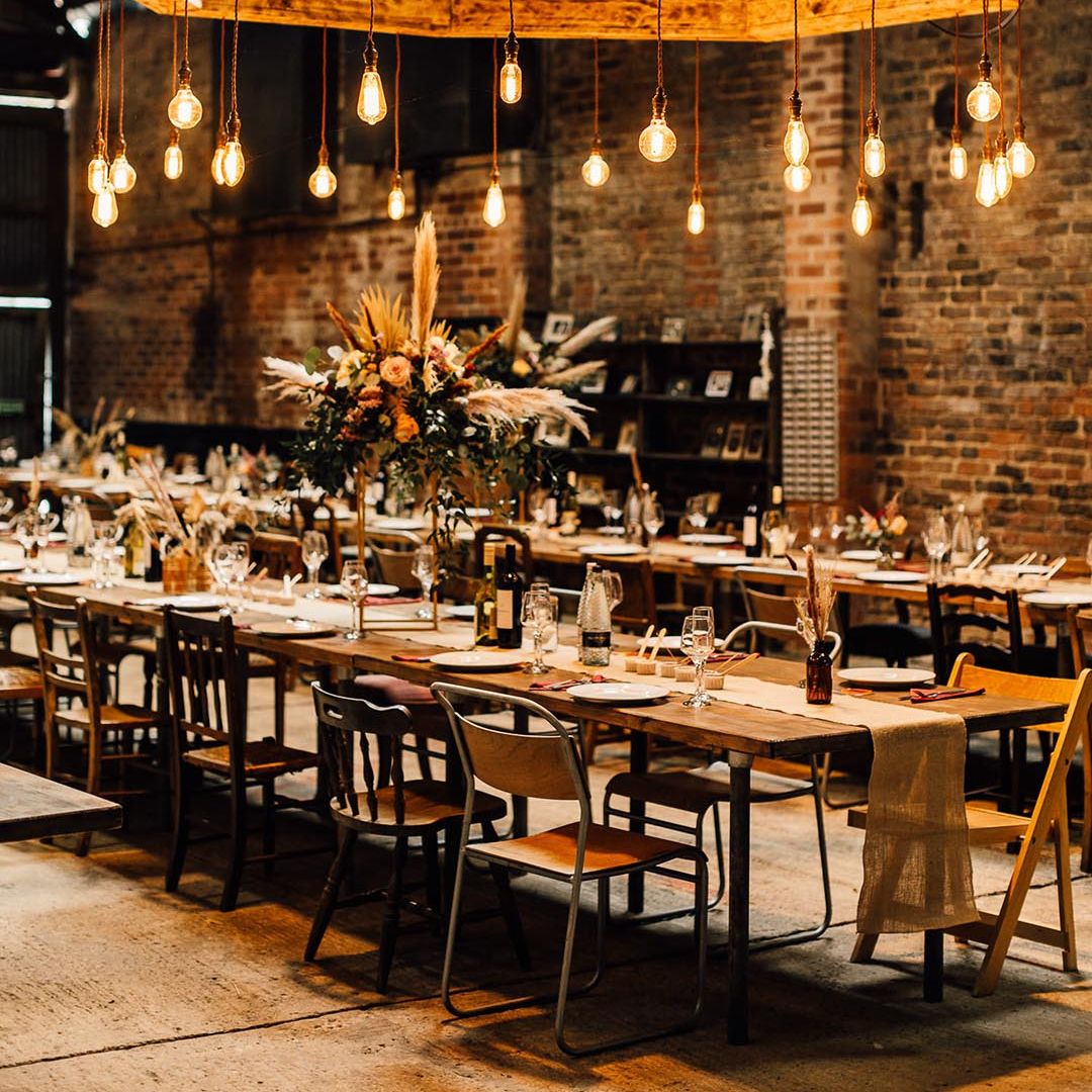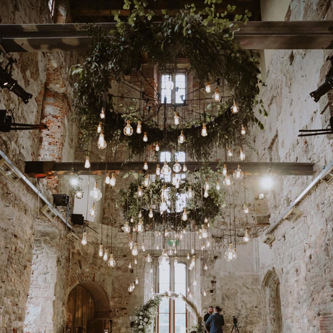 Edison Bulb Floral Installation at Kingsthorpe Lodge Barn