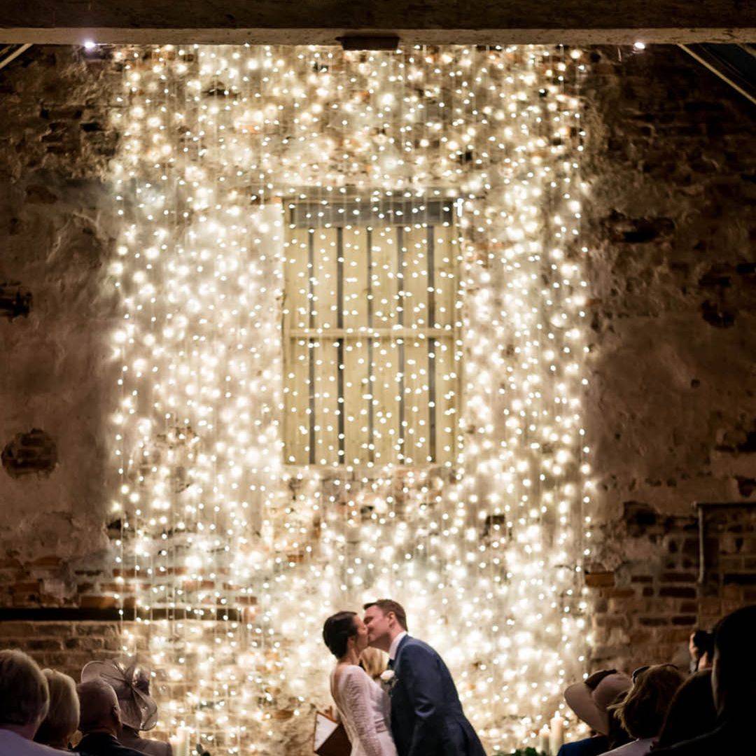 Festoon Light Canopy and Indoor Trees for Humanist Wedding in St Andrews
