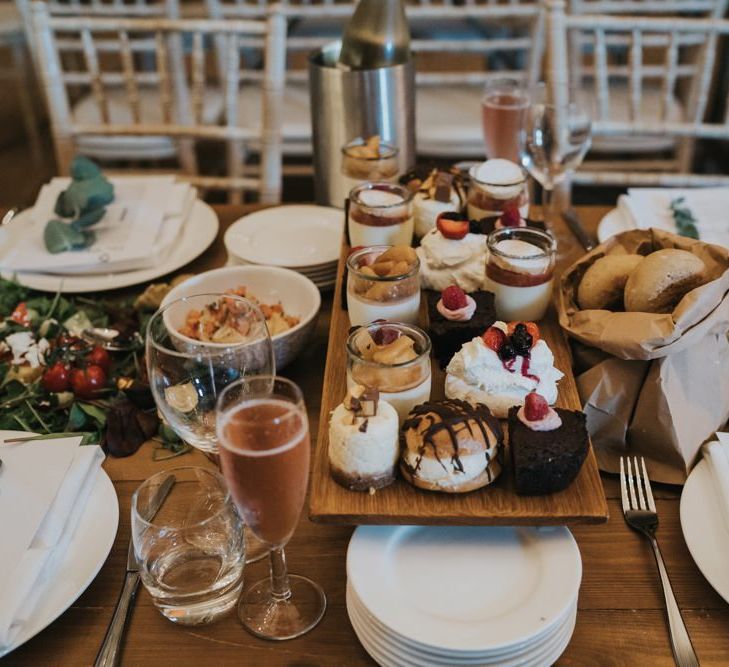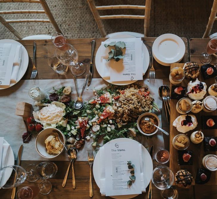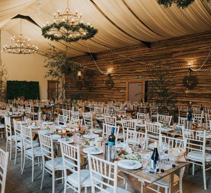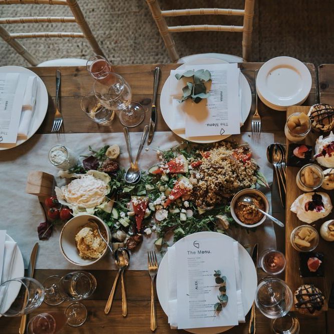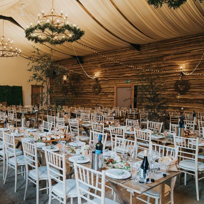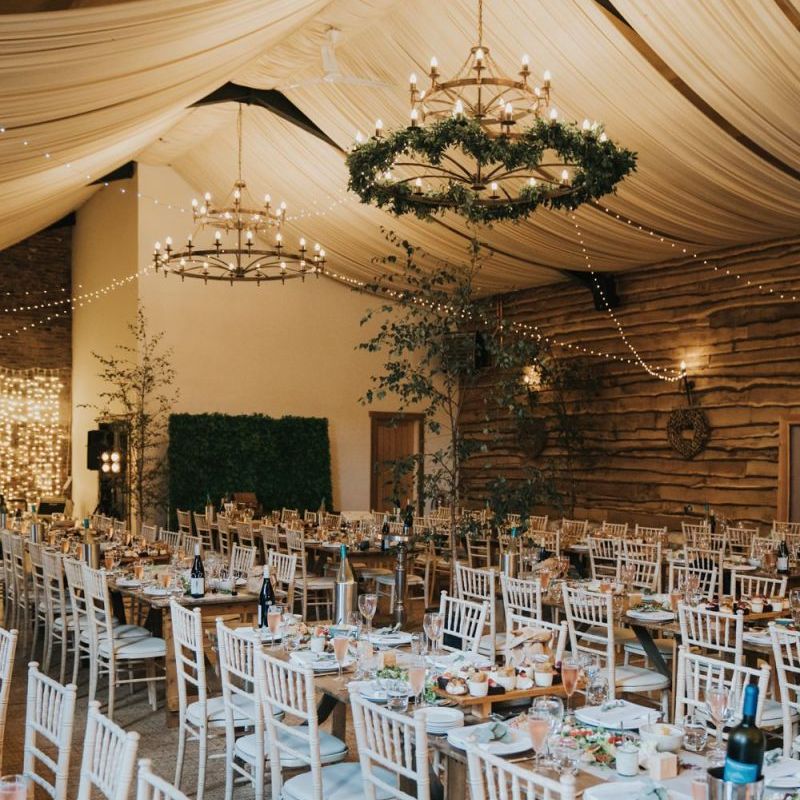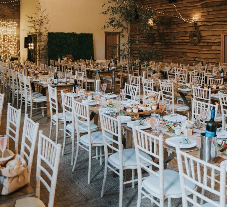 We wanted it to feel like a weekend away for everyone, including us, rather than a formal wedding. We brought the outside into the venue with the gorgeous silver birch trees, foliage on the tables and lights, we spilled into the Courtyard for afternoon tea on bamboo plates, our amazing musician played for everyone outside until the barn was opened up to reveal the tables which had been set up as an indoor picnic.