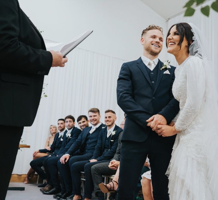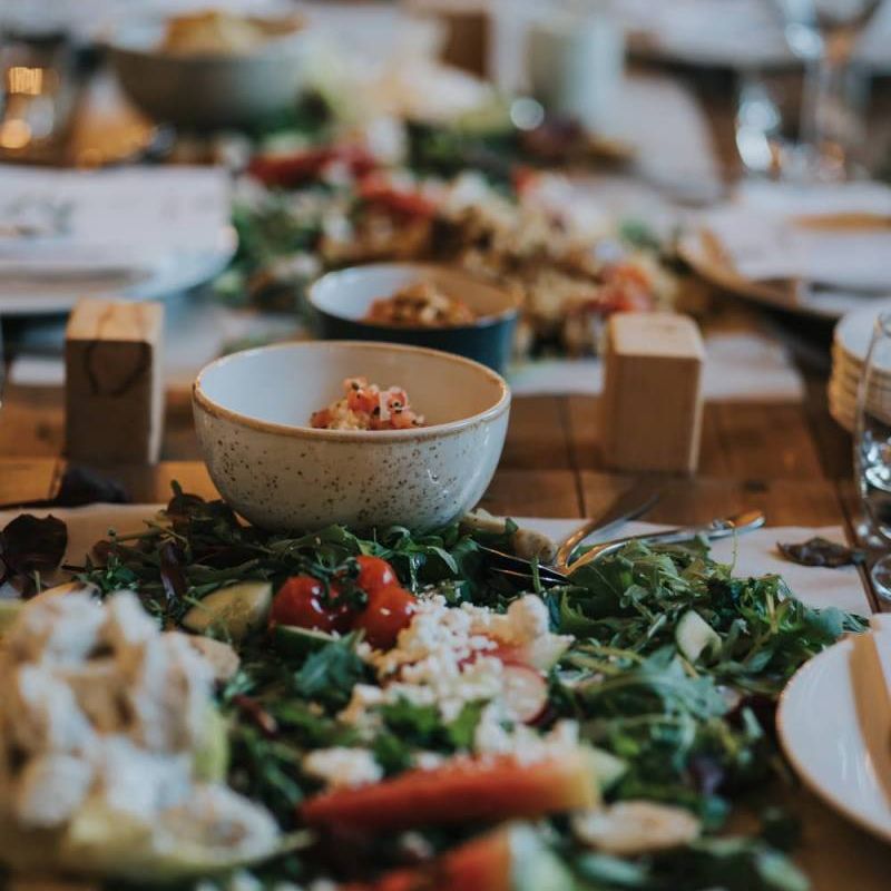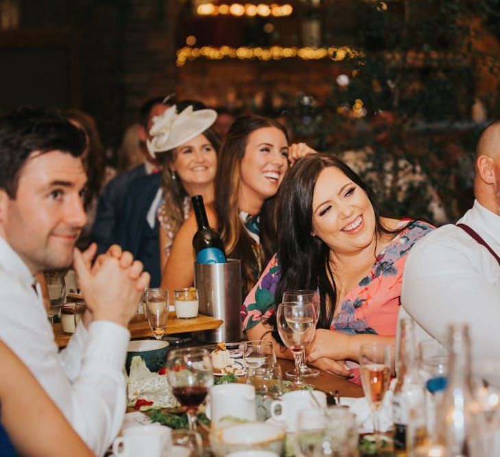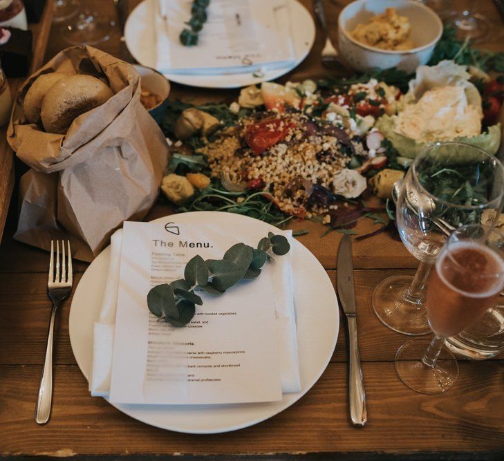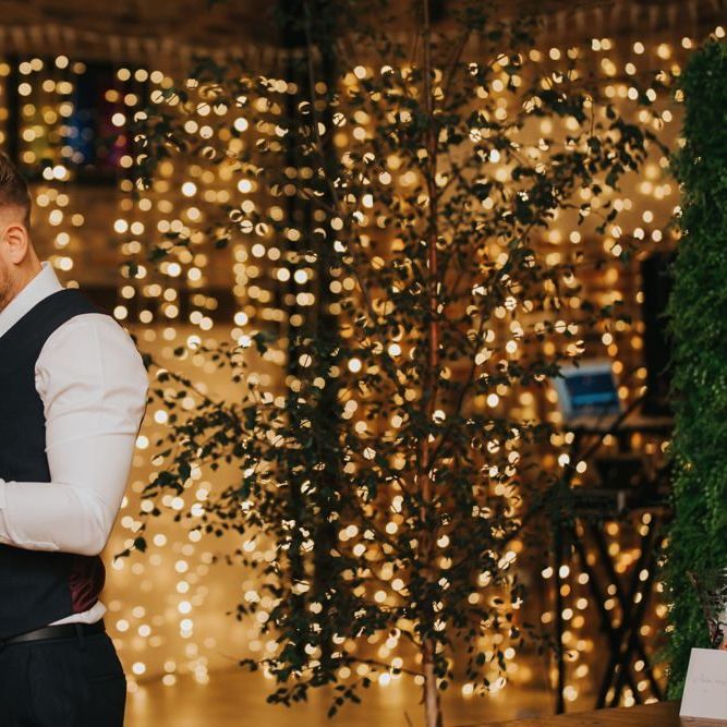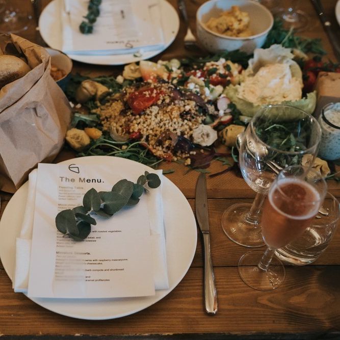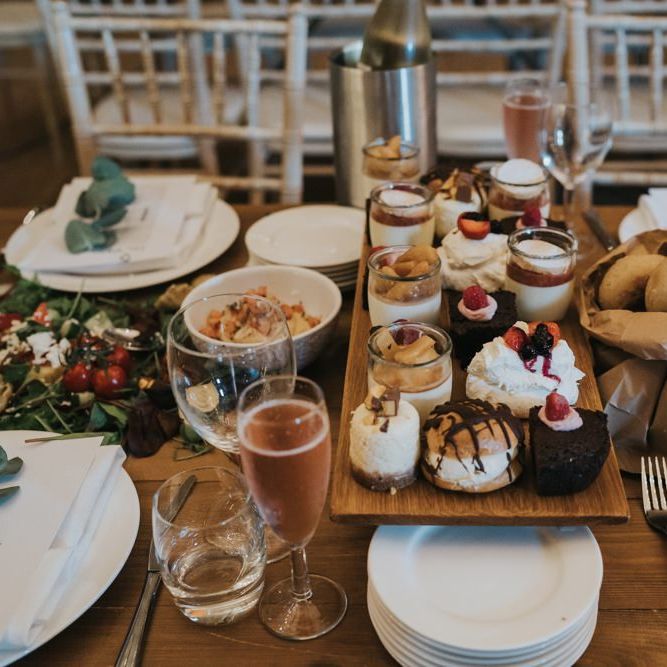 We wanted it to feel like a weekend away for everyone, including us, rather than a formal wedding. We brought the outside into the venue with the gorgeous silver birch trees, foliage on the tables and lights, we spilled into the Courtyard for afternoon tea on bamboo plates, our amazing musician played for everyone outside until the barn was opened up to reveal the tables which had been set up as an indoor picnic.