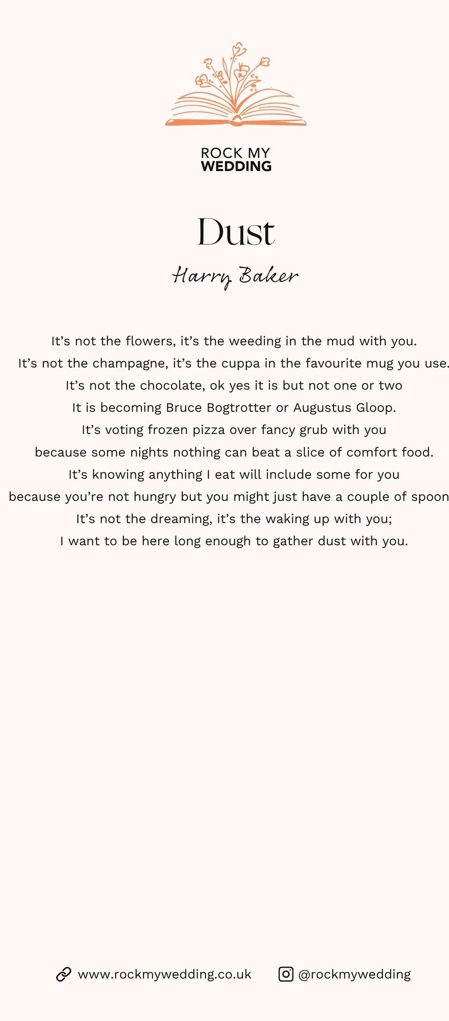 If Dust by Harry Baker is the wedding reading for you, download a PDF version of this wedding reading below!