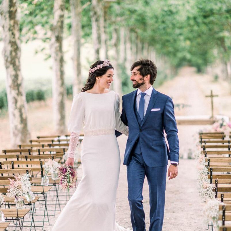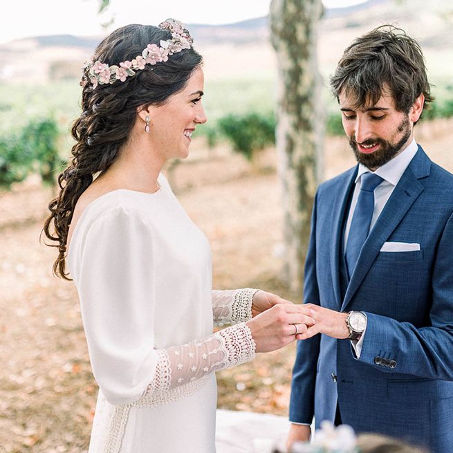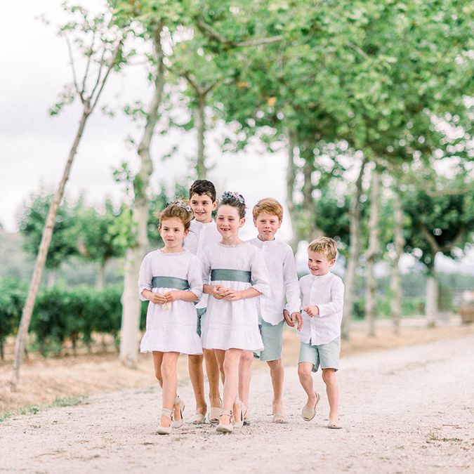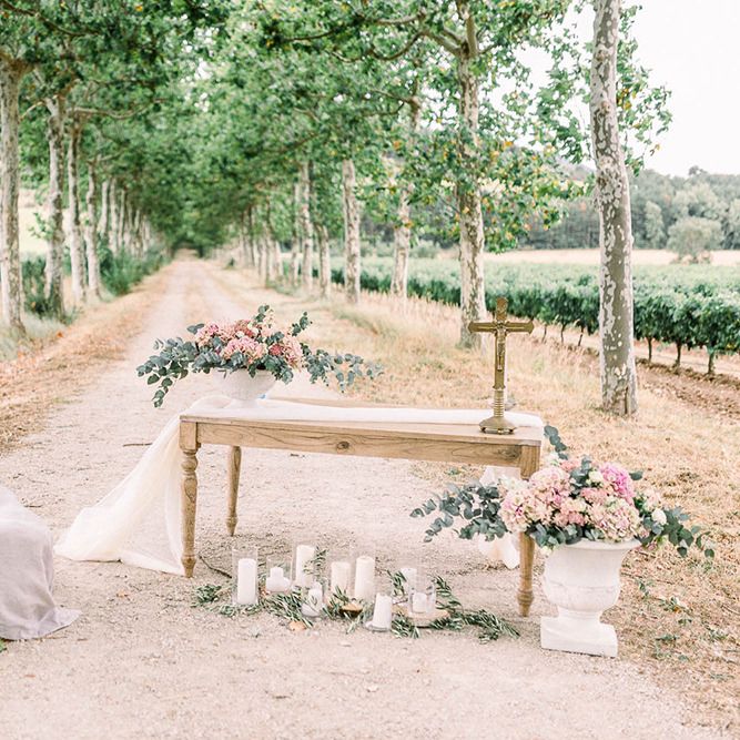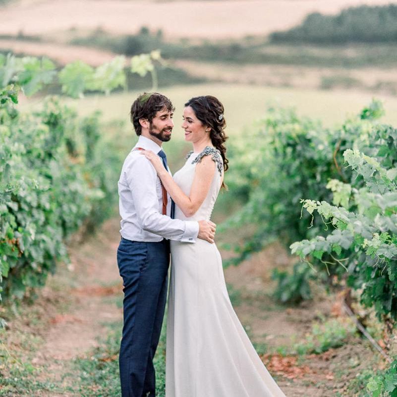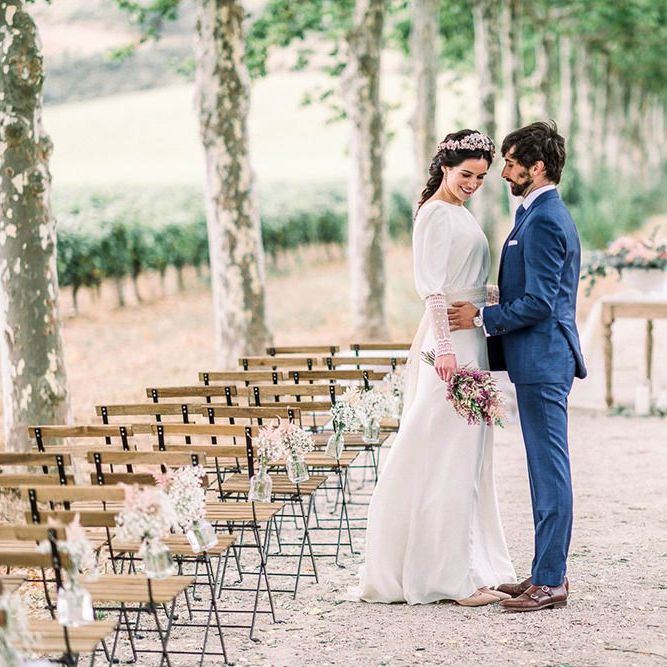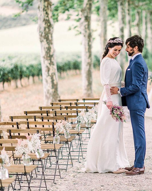 We describe our day as unforgettable, emotional and fun. It was an outdoor celebration, on a road surrounded by trees and vineyards. We wanted a family atmosphere, with romantic decoration in white, green and pink colours. Subtle details so that the views and beautiful surroundings did not lose prominence.
