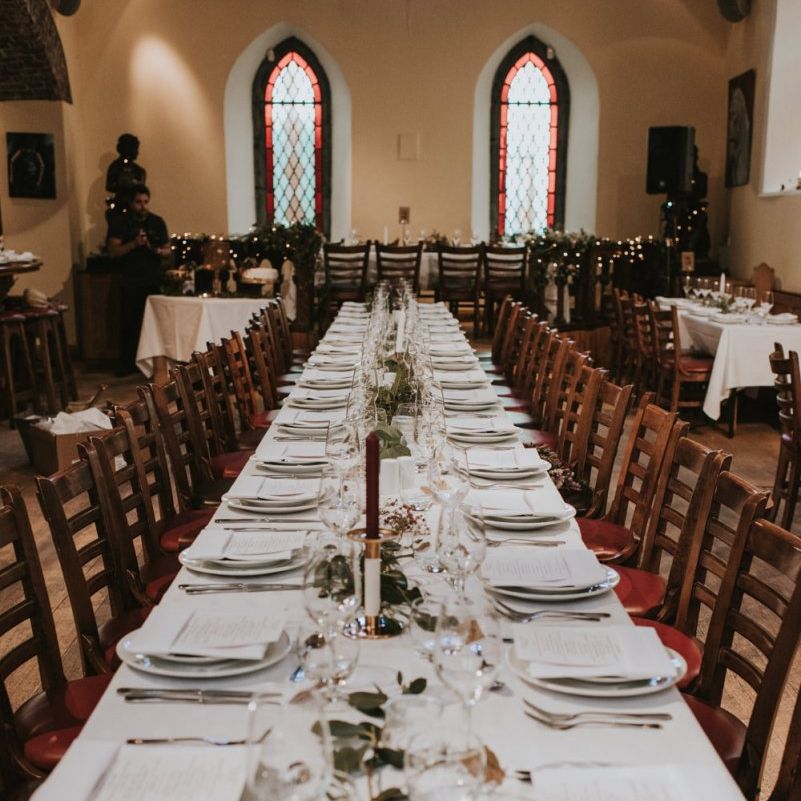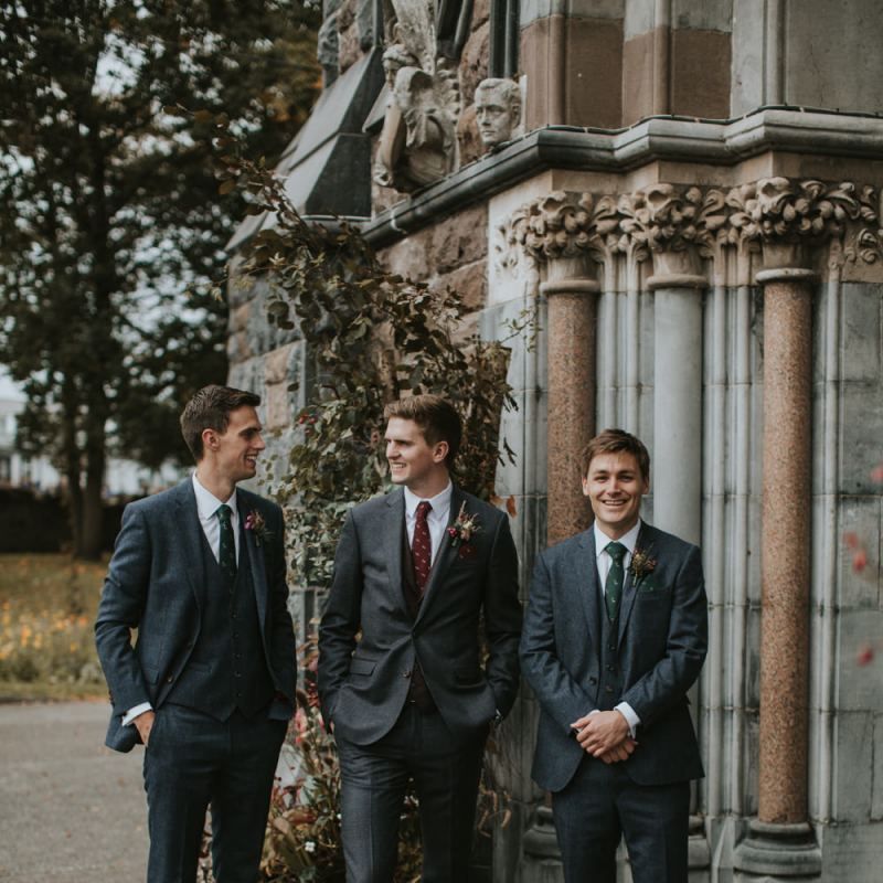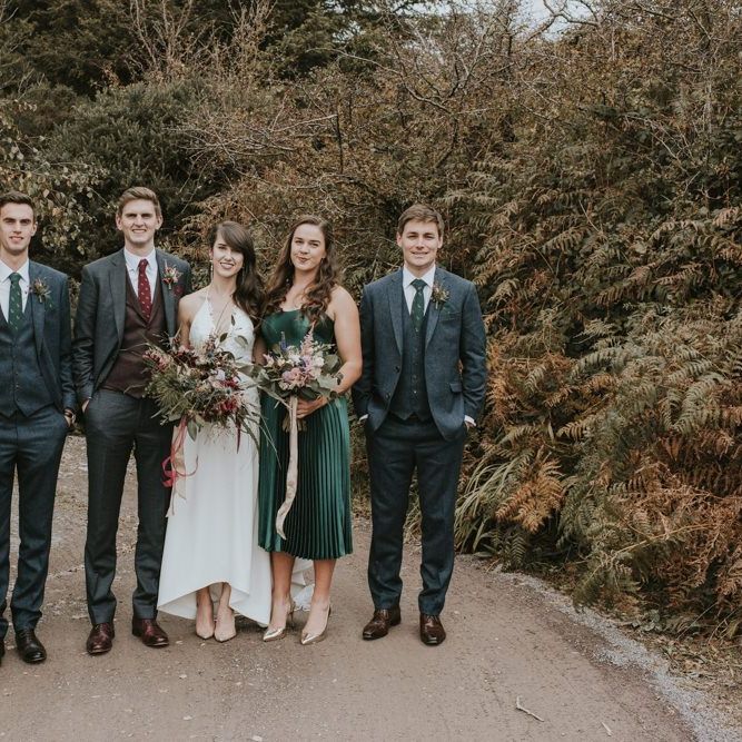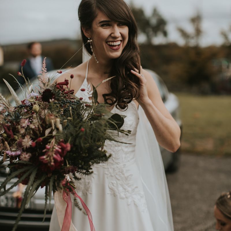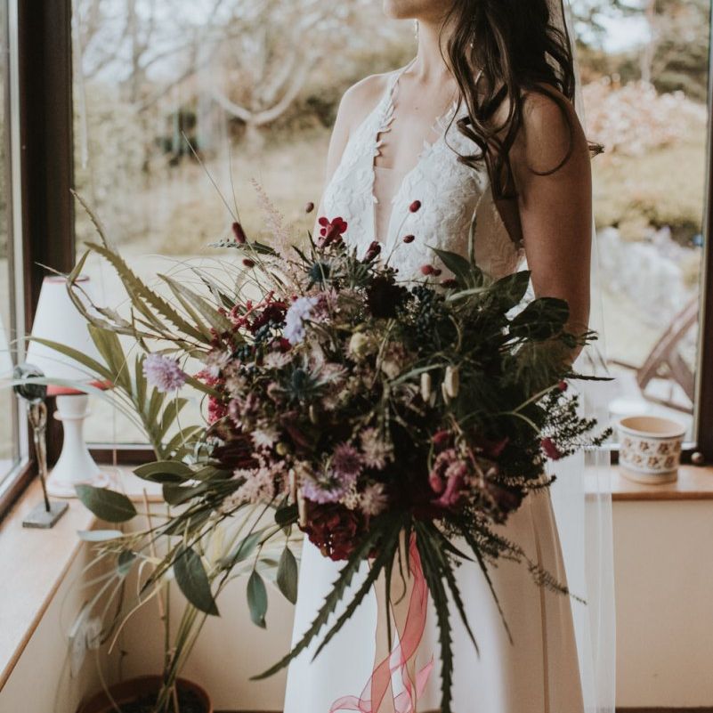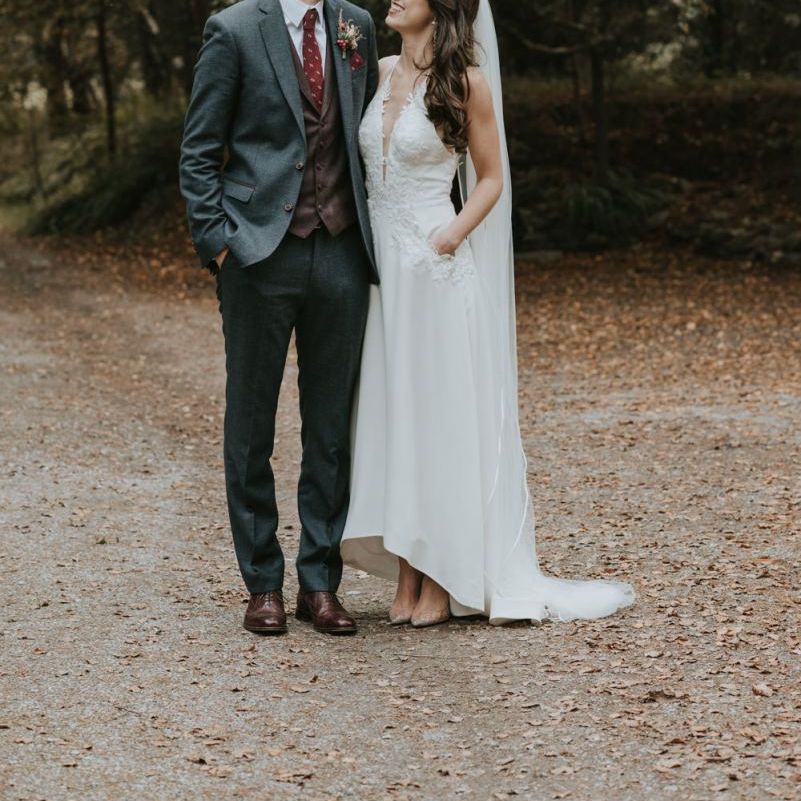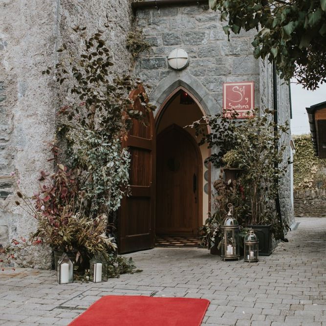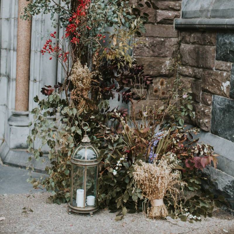 Relaxed & fun (tapas for dinner followed by a singing waiter & then a swing band). The wedding was in October in far south-west Ireland so we embraced that vibe: loads of foliage (photos in my family home's wild garden), & twinkling lights. We went for rich colours: flowers, bridal party outfits, make-up & decor (no pastels); deep greens, browns, gold and berries (the florist was AMAZING and got the vibe 100%). We didn't want things too perfect or "matchy" (bridal party chose their own shoes/accessories/makeup; loose wild look to the flowers & decor).